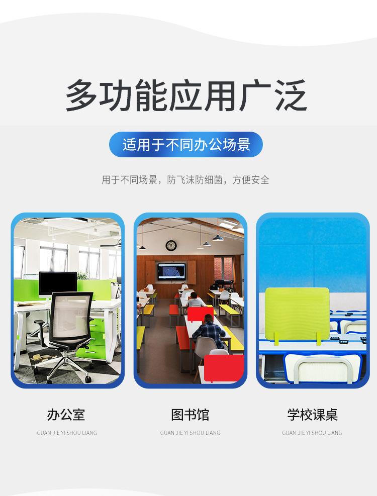 사무실 책상 베젤 학생 책상 시험 칸막이 물방울 방지 스크린 보드 칸막이 가구 액세서리 스크린 클립