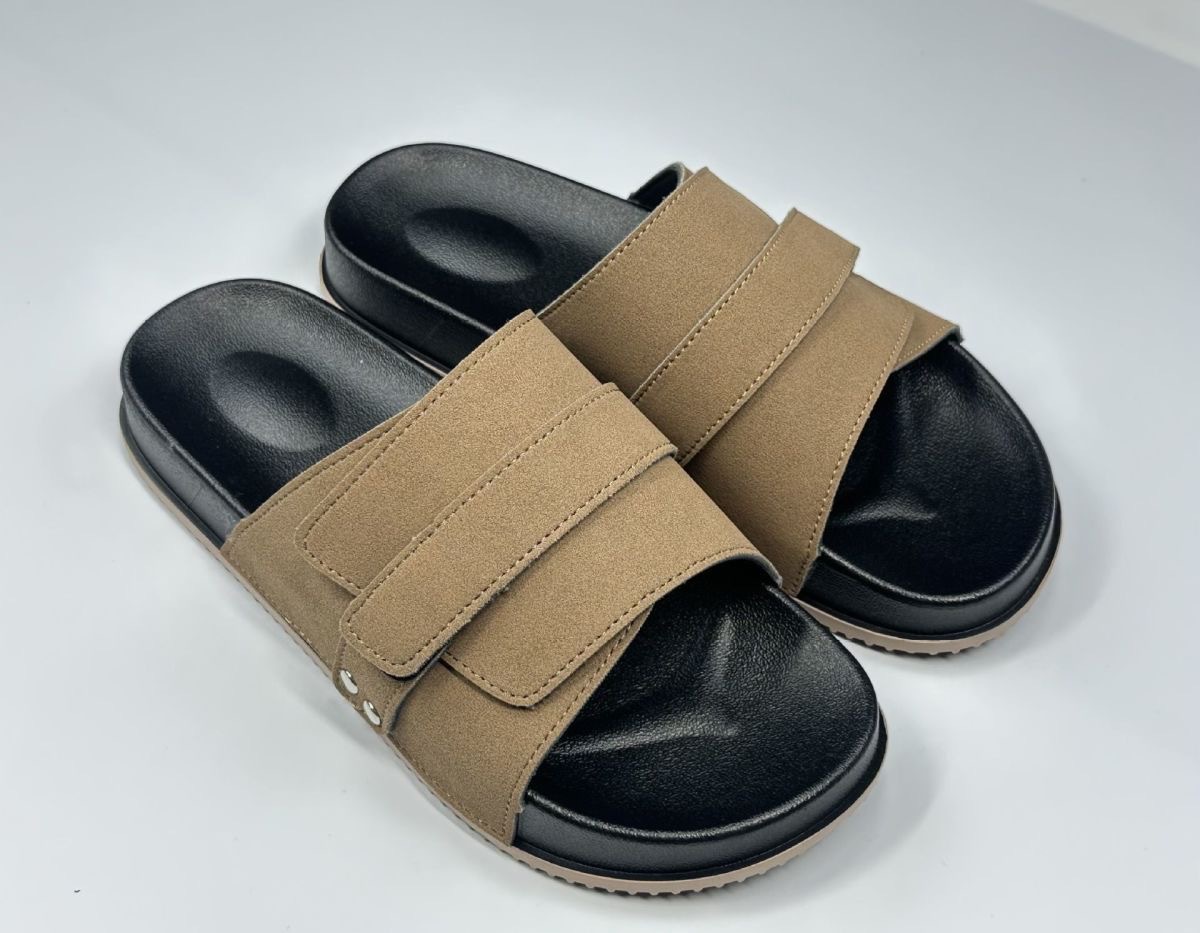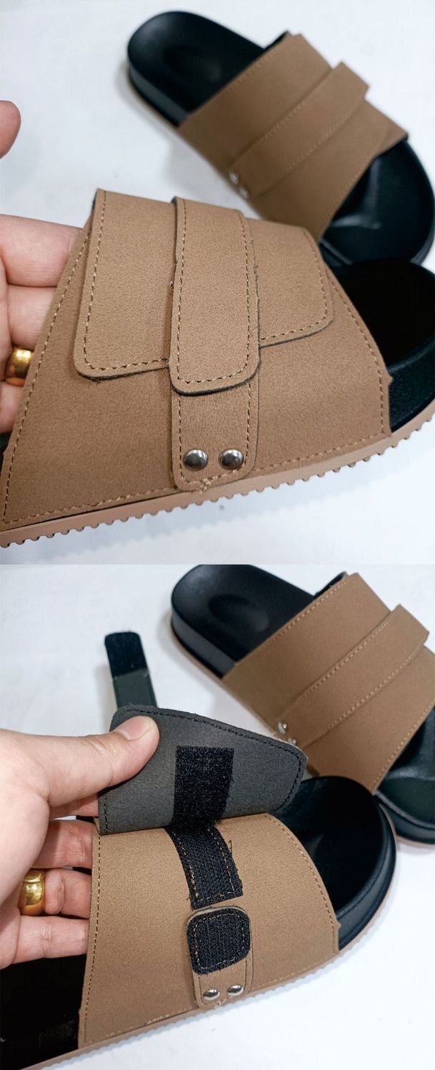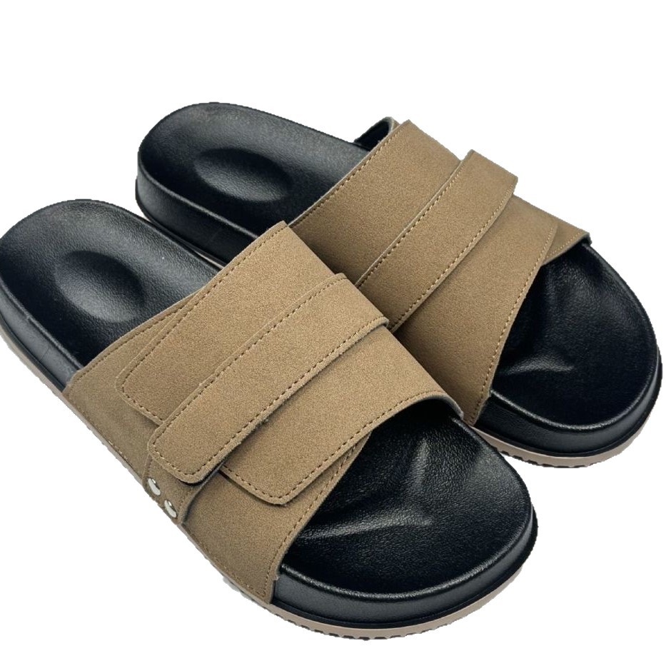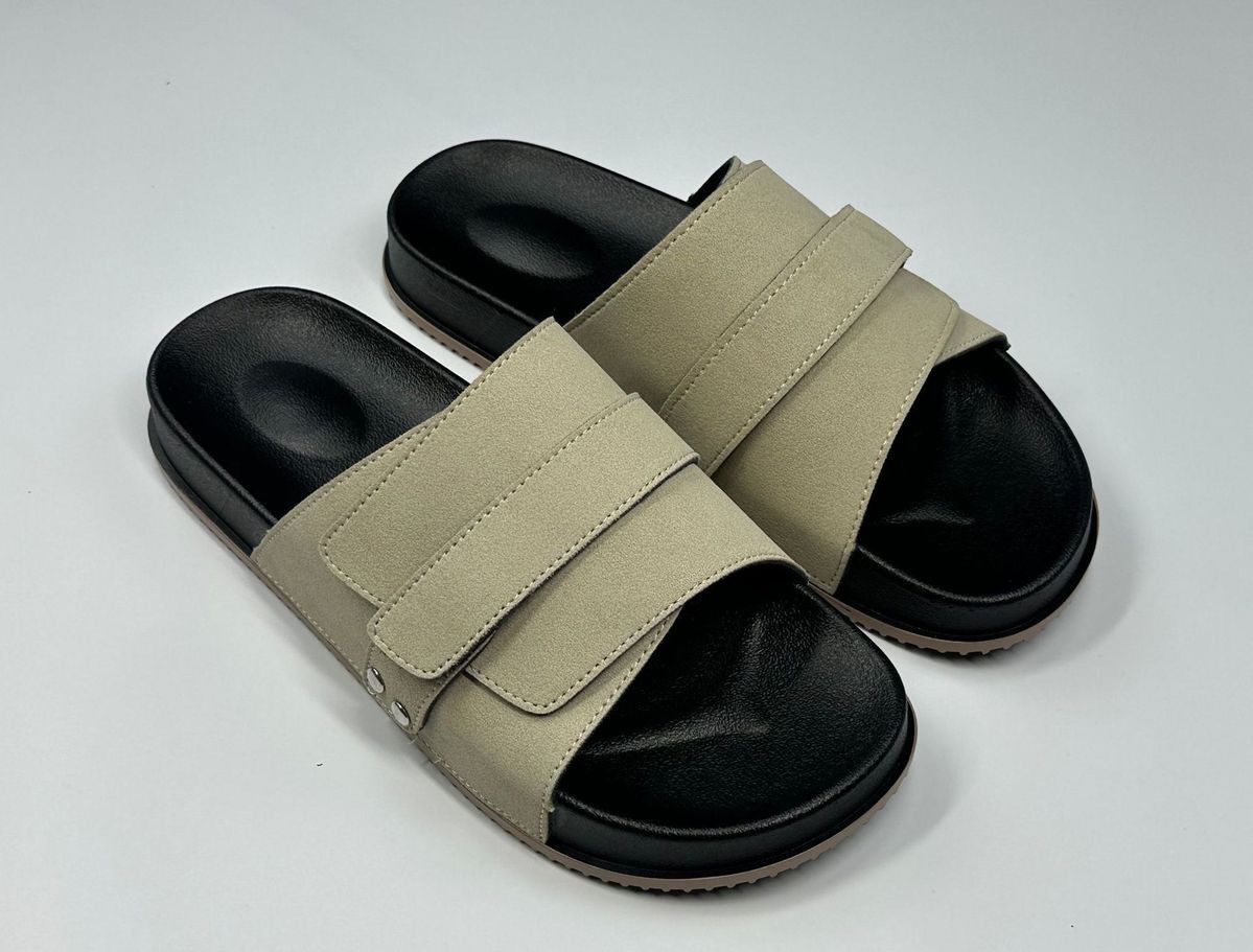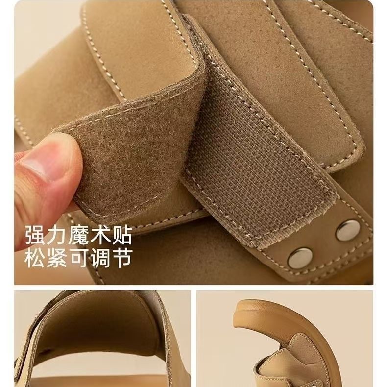 가죽 표면에 벨크로가 있는 남성용 여름 샌들, 캐주얼하고 다용도로 활용 가능한 크로스보더 홈웨어 및 외출용 남성용 슬리퍼, 맥퀸 스타일의 흰색 신발