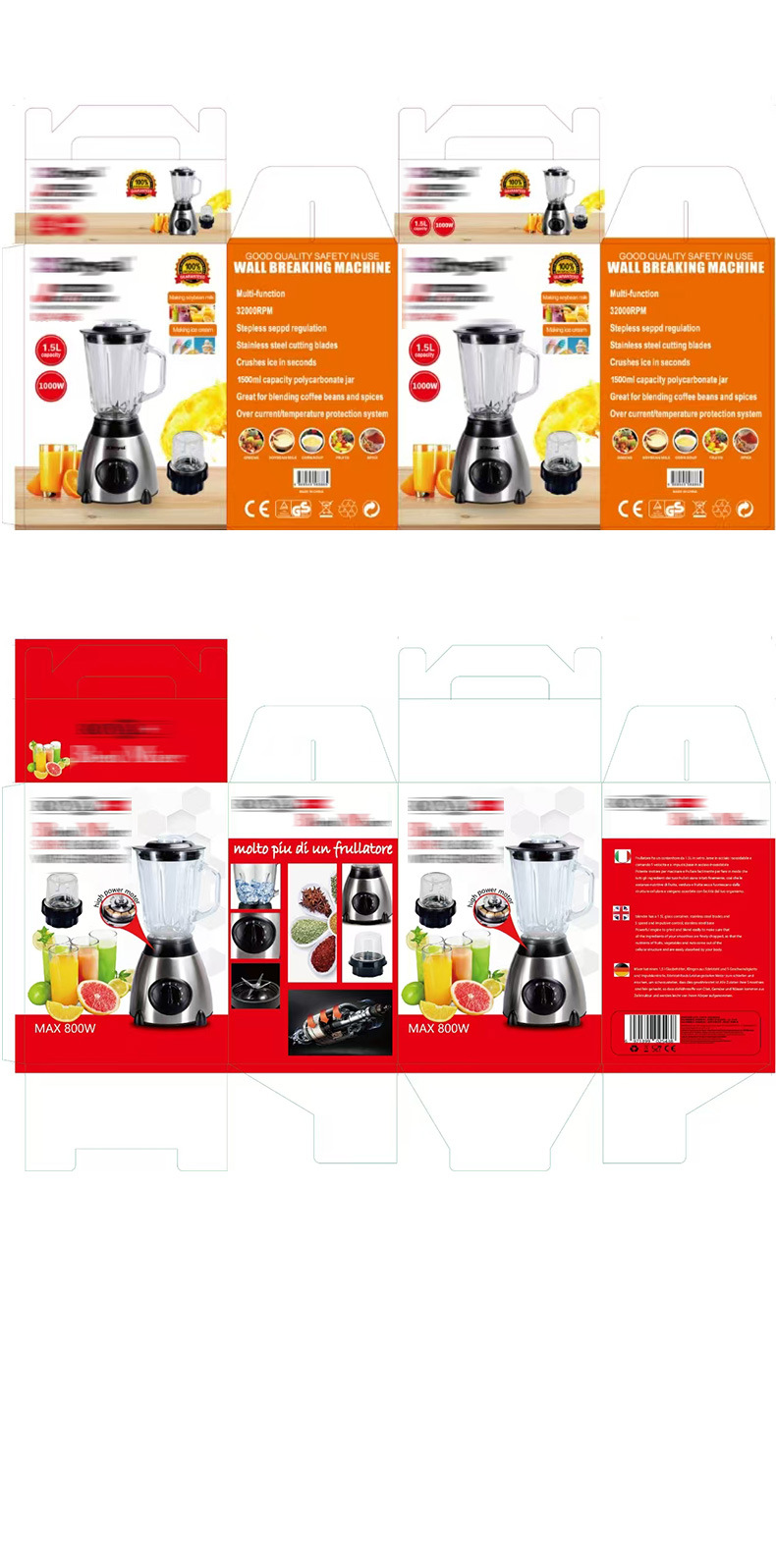가정용 다기능 블렌더 유리 식품 보충제 분쇄기 벽 파괴 기계 주스 추출기 더블 컵 스테인레스 스틸 요리 기계