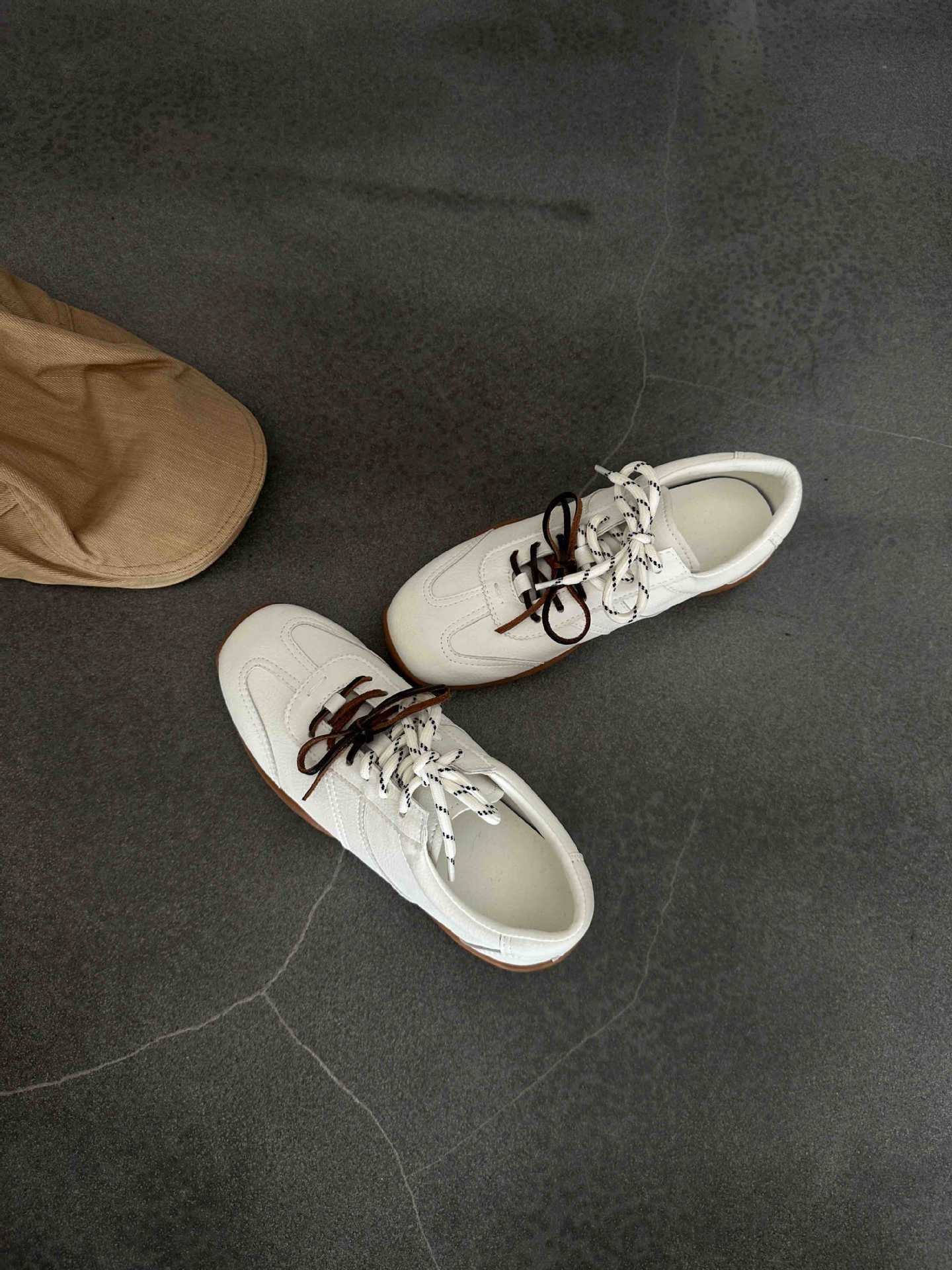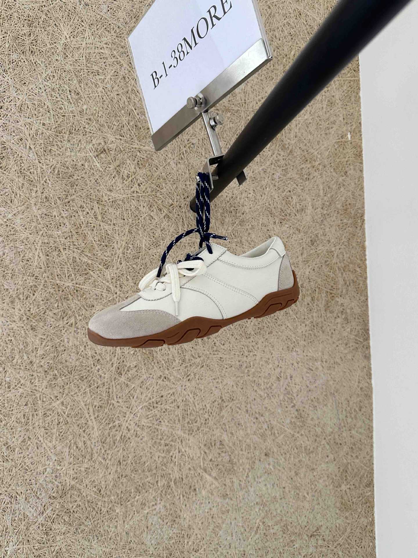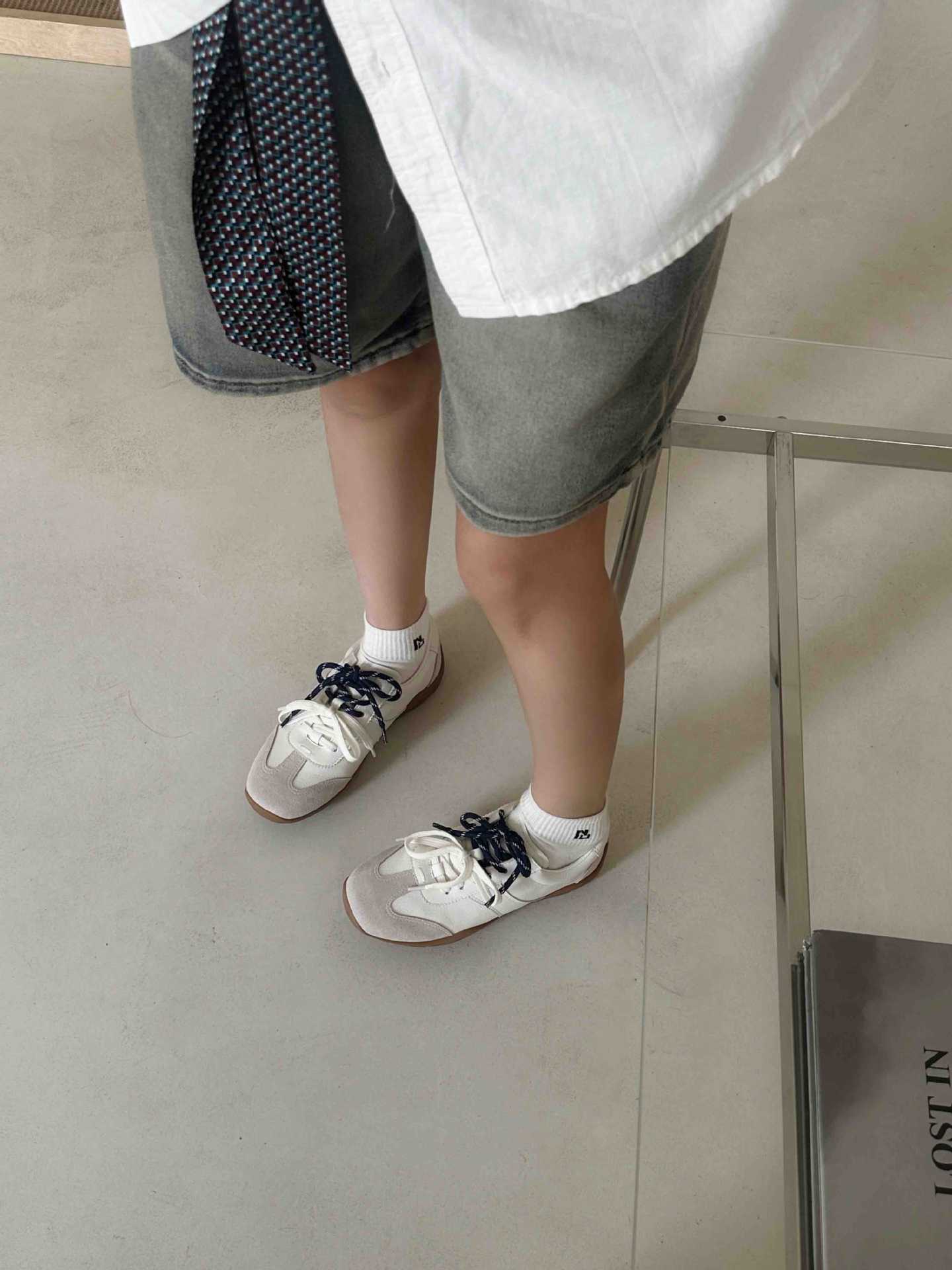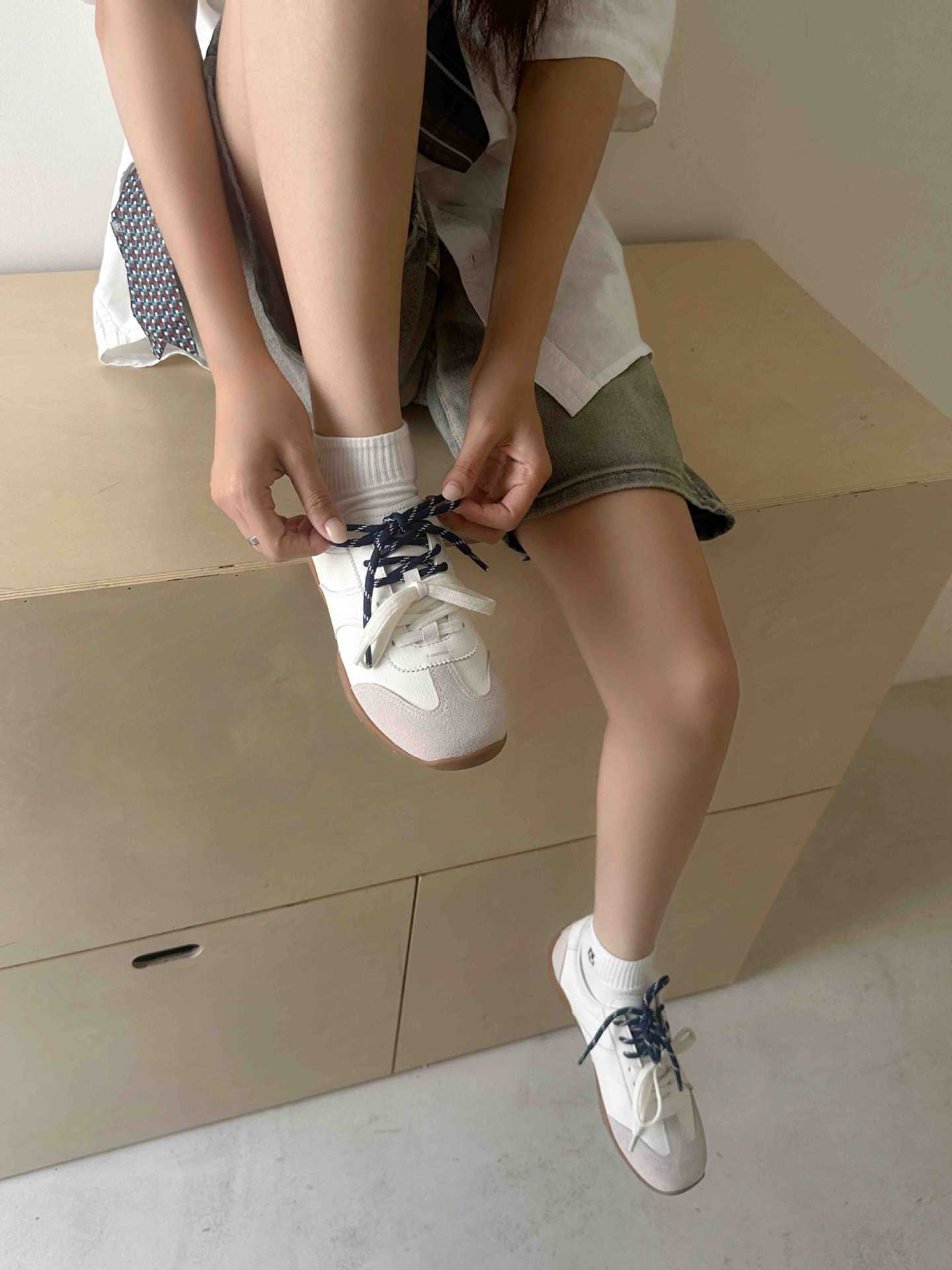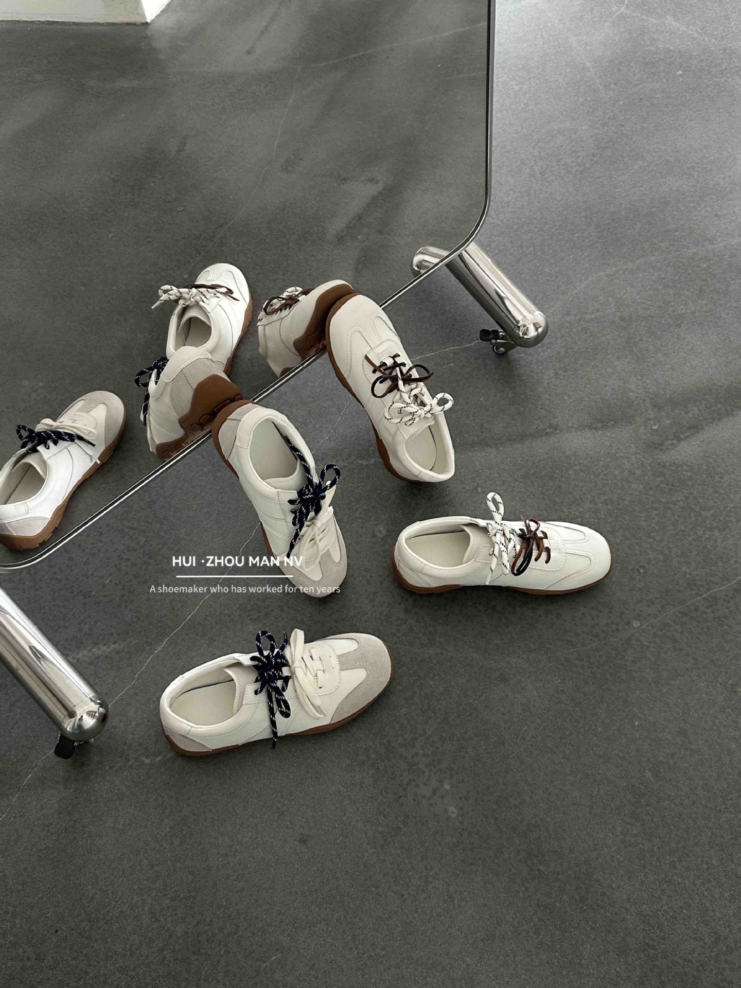 재고 있음 ~ 여성용 정품 가죽 컬러 블록 화이트 슈즈 2025 가을 신작 레트로 라운드 투 캐주얼 스니커즈 포레스트 검프 슈즈