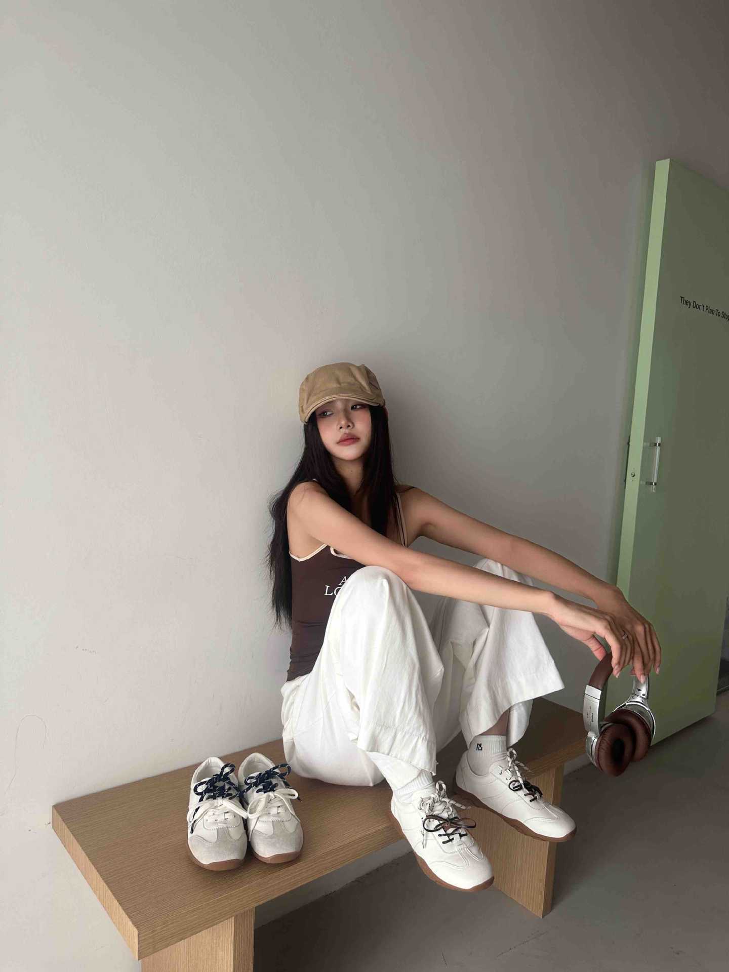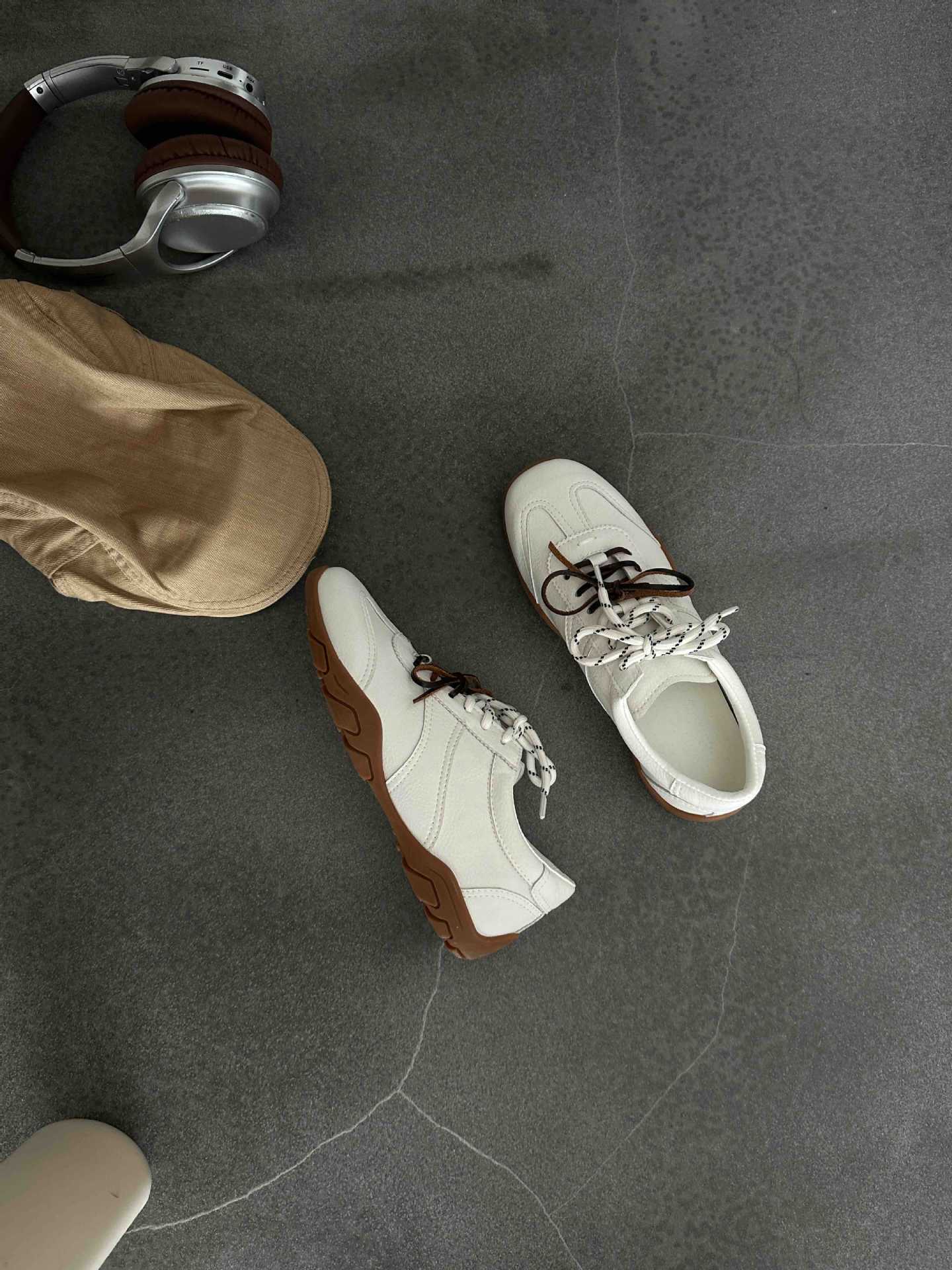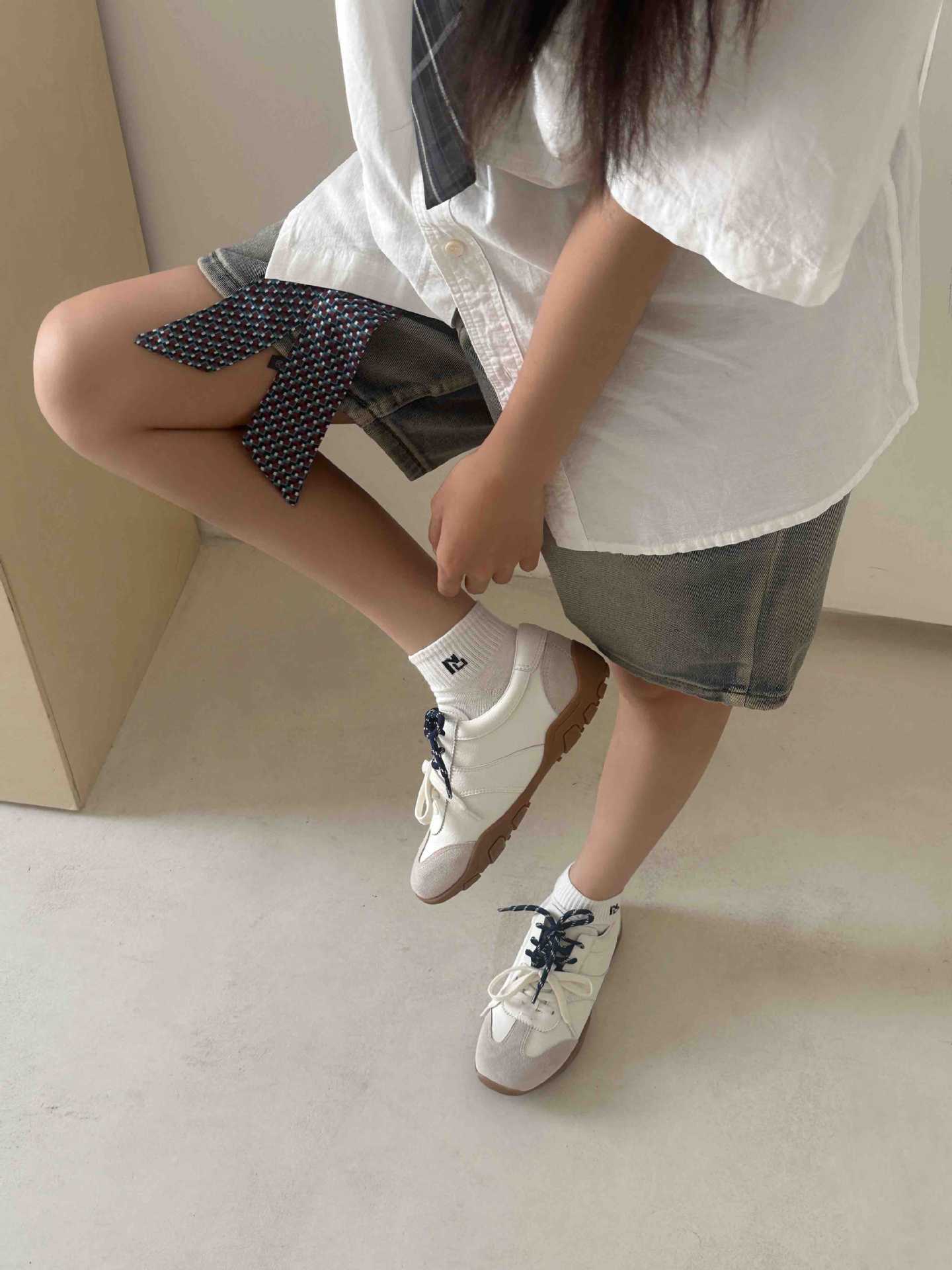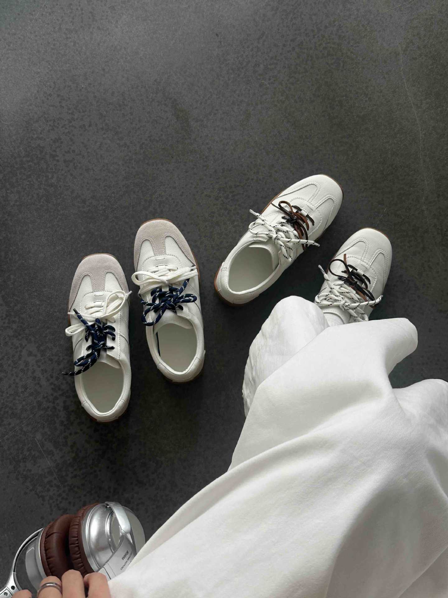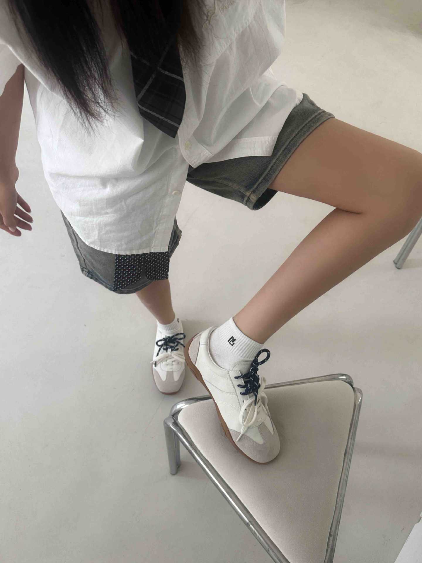 재고 있음 ~ 여성용 정품 가죽 컬러 블록 화이트 슈즈 2025 가을 신작 레트로 라운드 투 캐주얼 스니커즈 포레스트 검프 슈즈