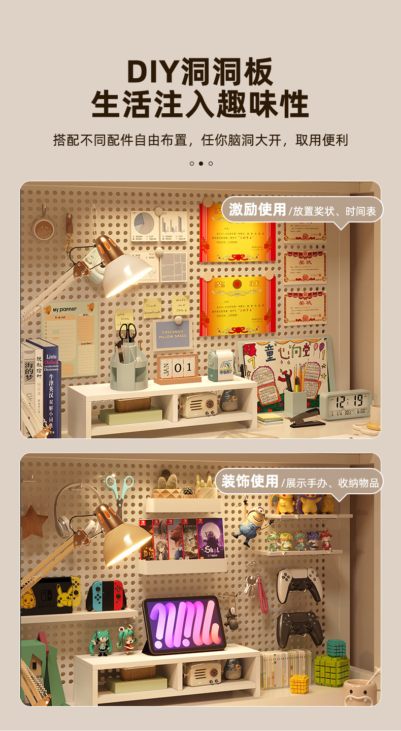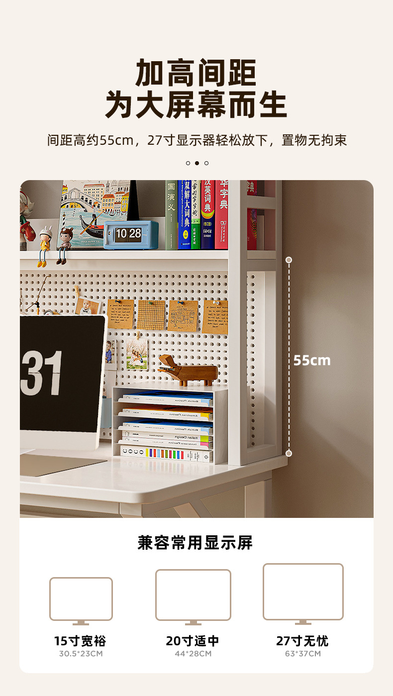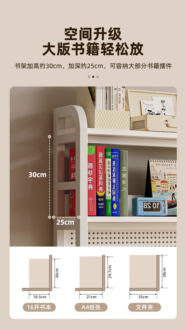 따뜻한 흰색 80*60*170 [업그레이드된 타공판 모델 - 높이 간격 증가 - 책장 확장] ☆⚑