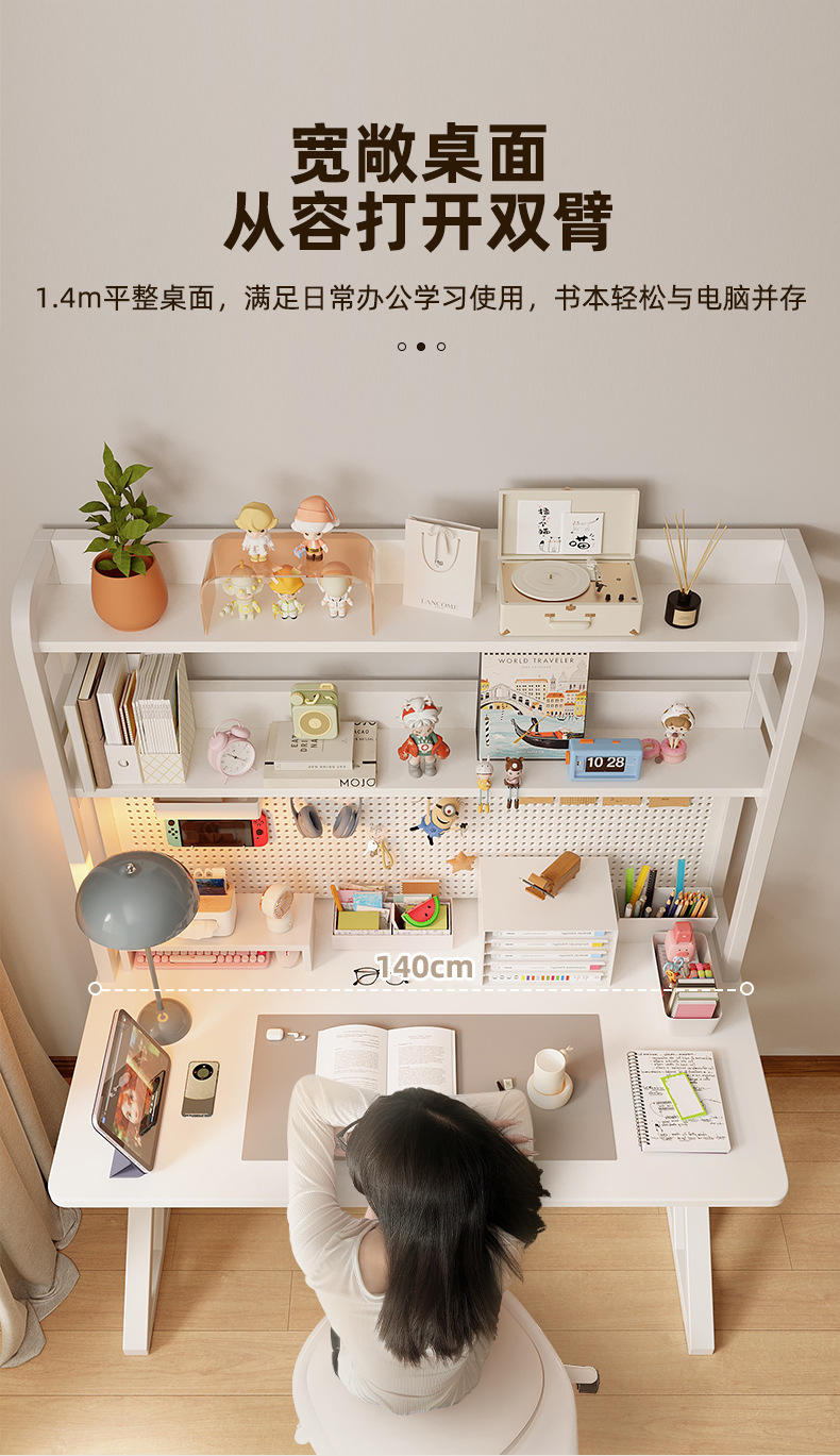 따뜻한 흰색 140*60*170 [업그레이드형 타공판 모델 - 높이 간격 확장 - 책장 폭 확장] ☆⚑