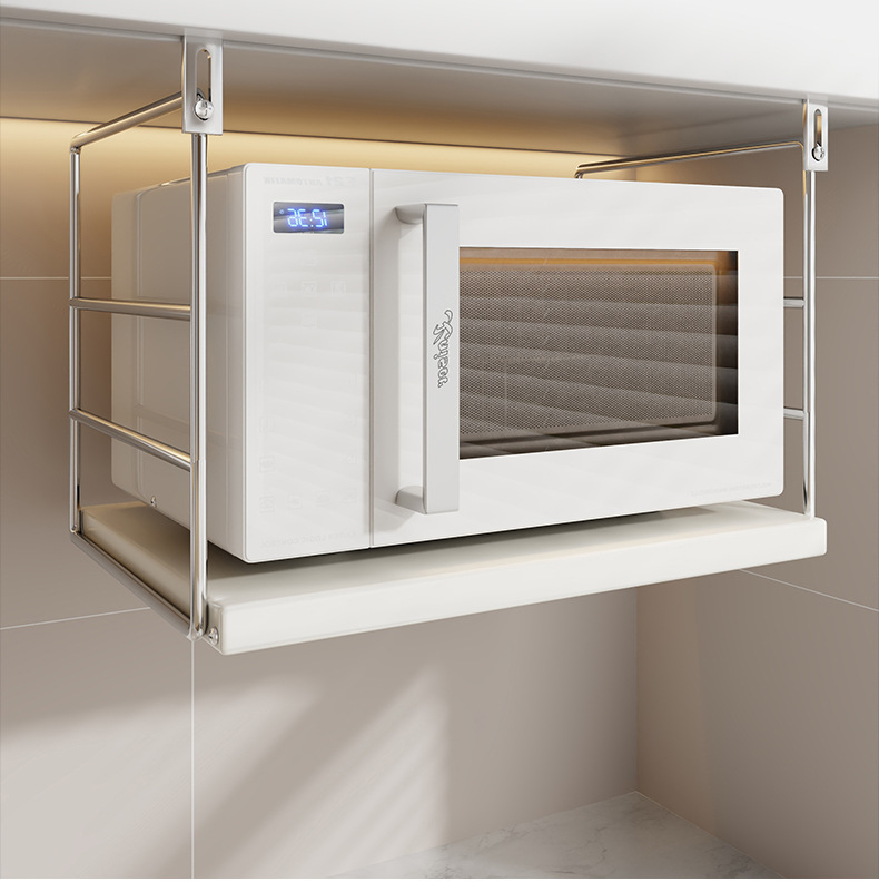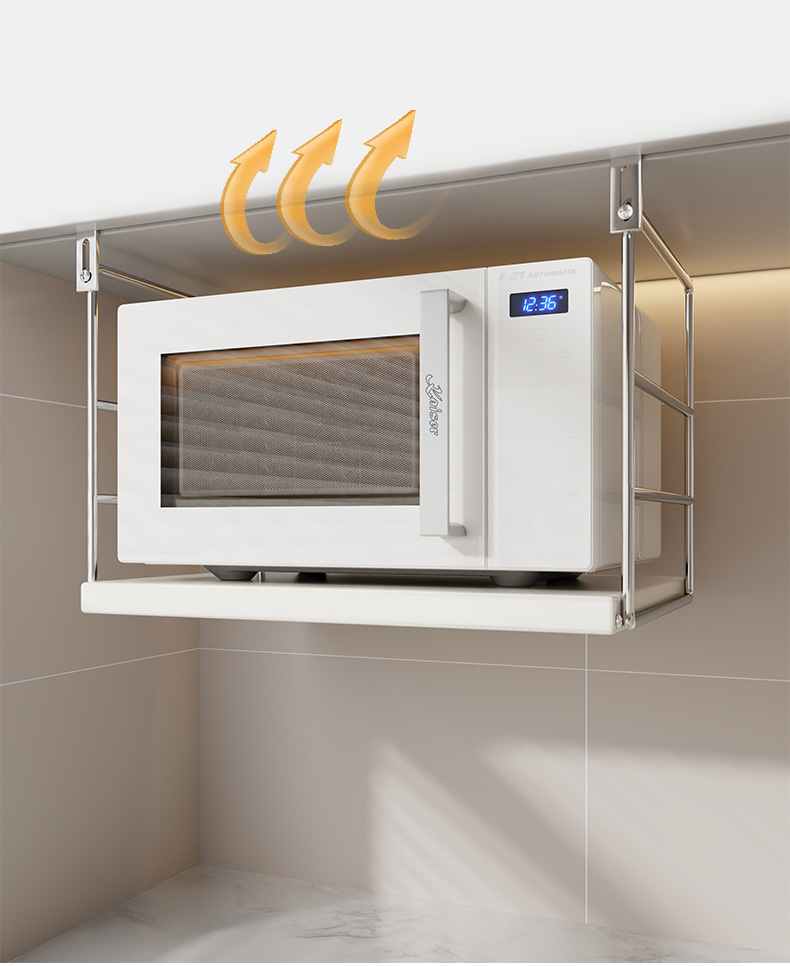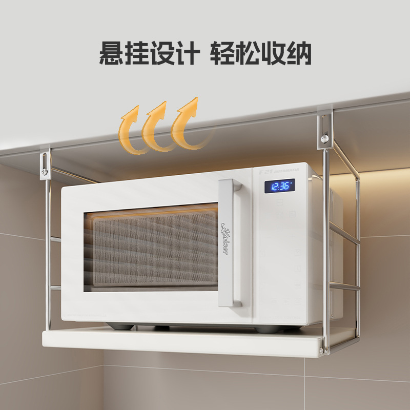 주방 전자레인지 수납 선반, 오븐 에어프라이어용 펀치 없는 걸이형 브래킷, 다기능 수납 선반