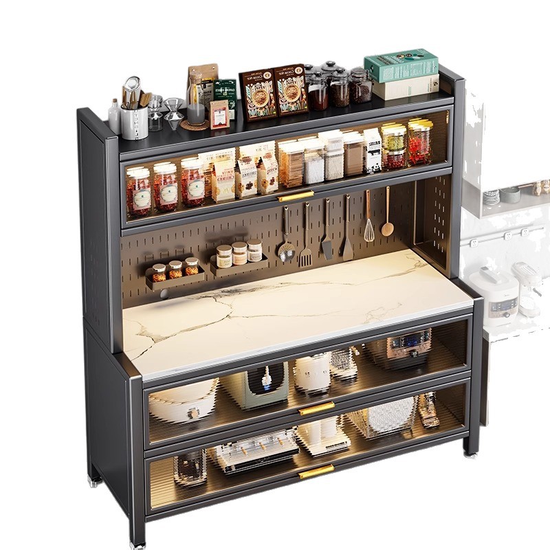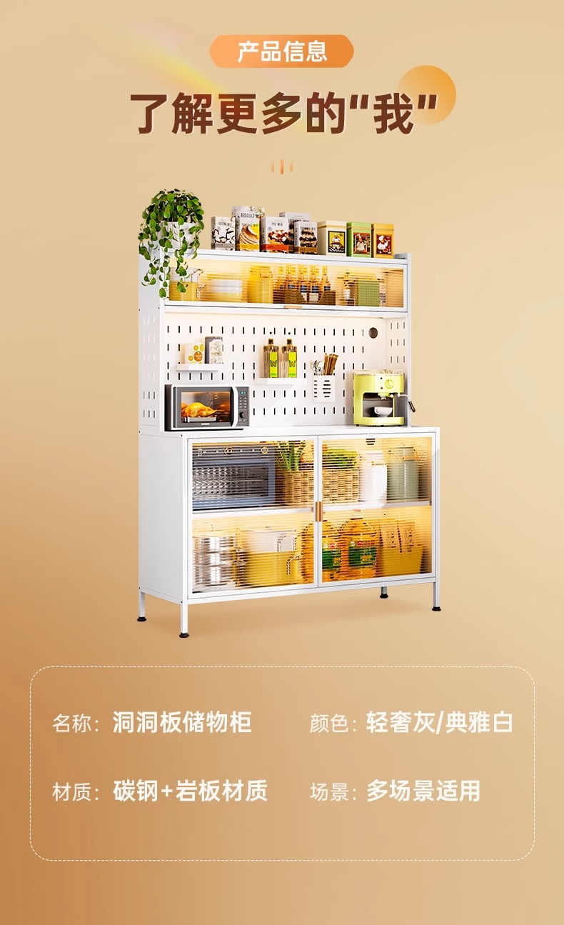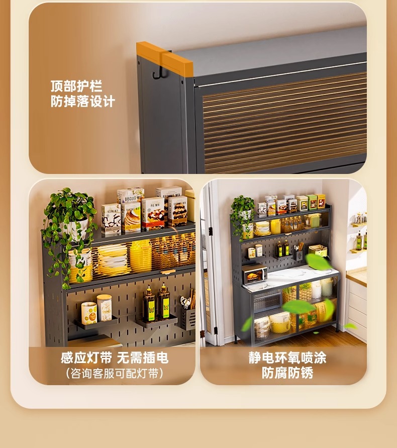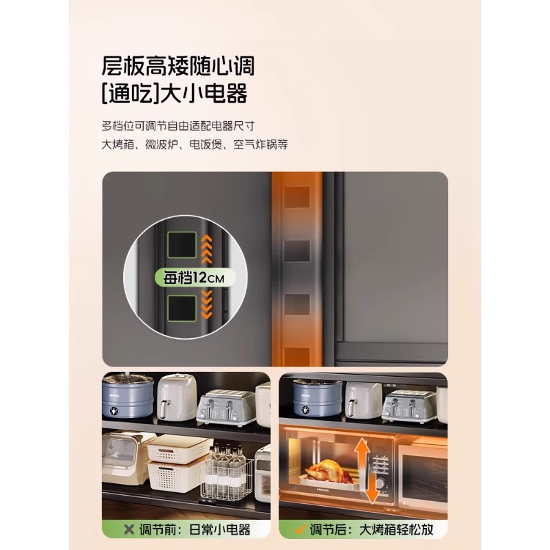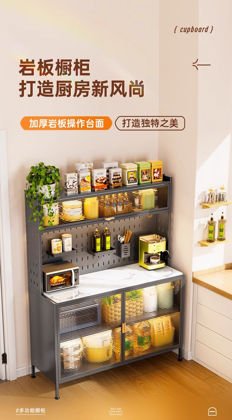 주방 수납 선반, 바닥에서 천장까지 이어지는 다층 캐비닛, 전자레인지 선반, 찬장, 다기능 수납 석판 식탁 수납 캐비닛
