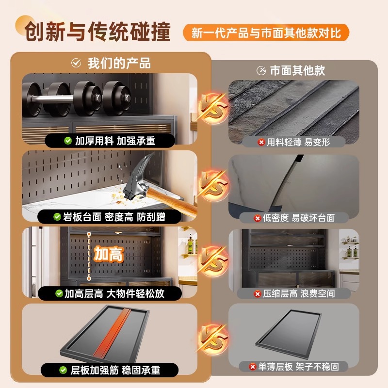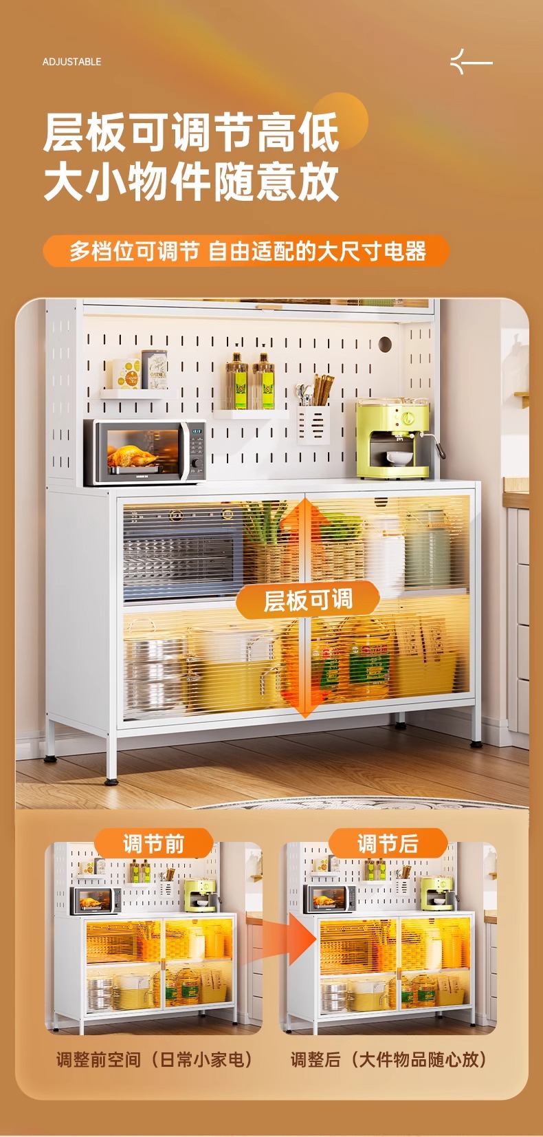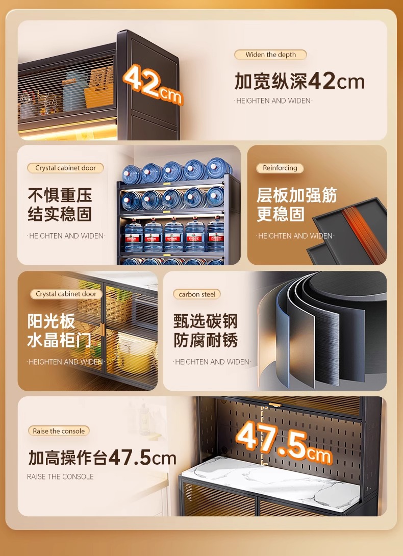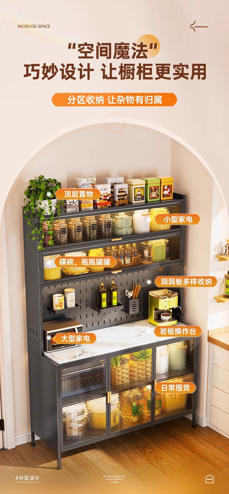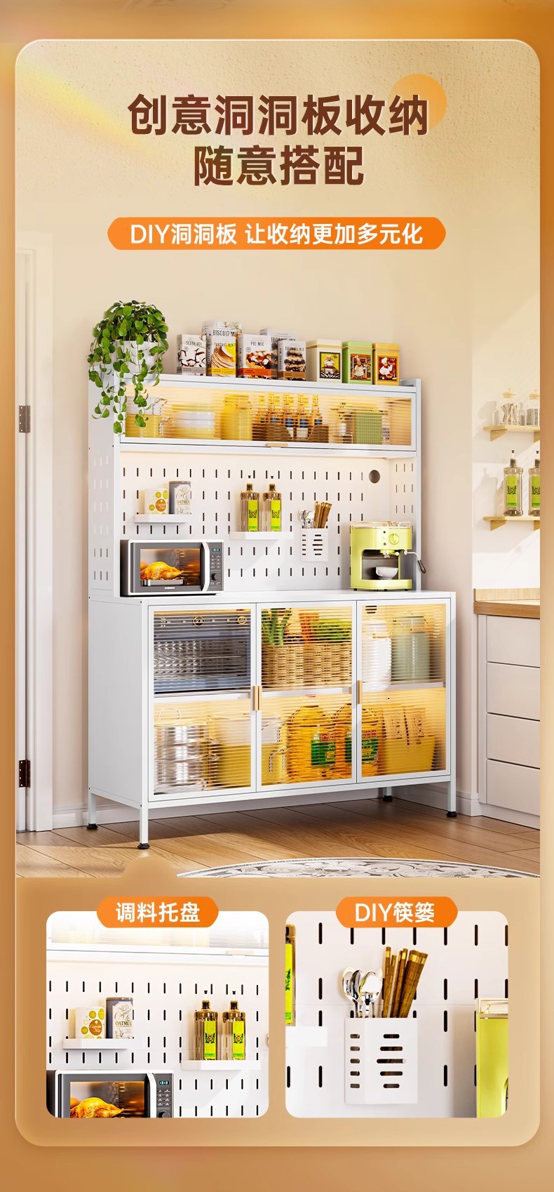 주방 수납 선반, 바닥에서 천장까지 이어지는 다층 캐비닛, 전자레인지 선반, 찬장, 다기능 수납 석판 식탁 수납 캐비닛