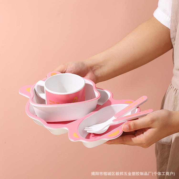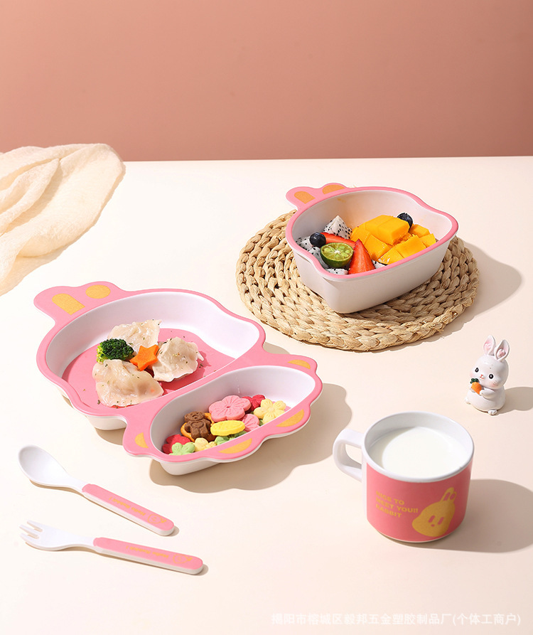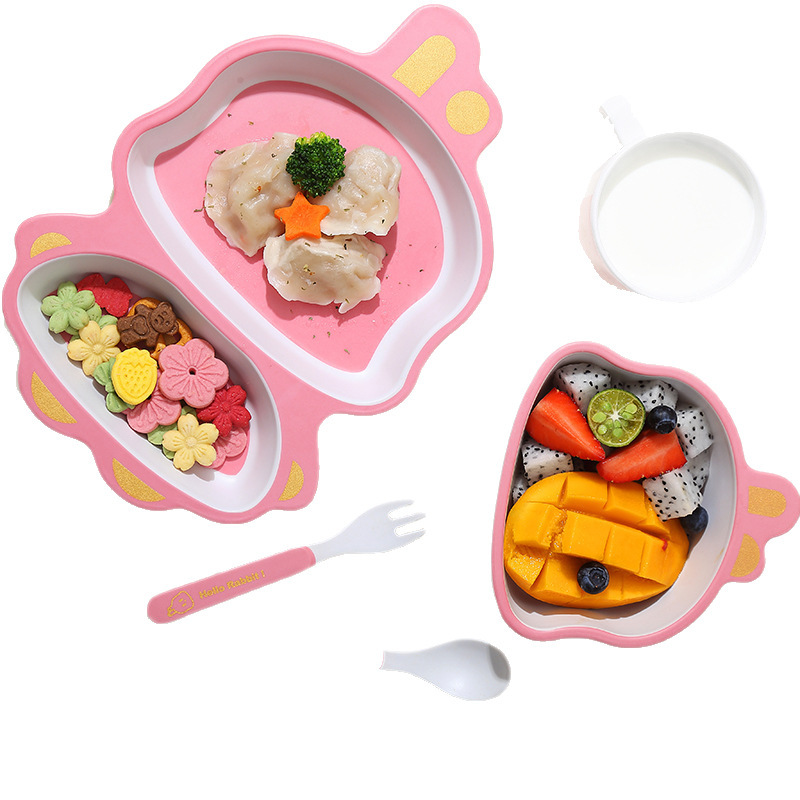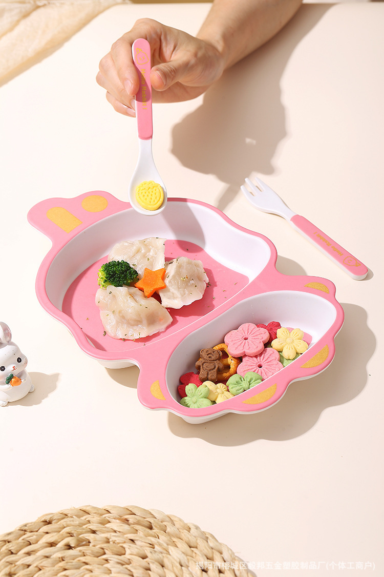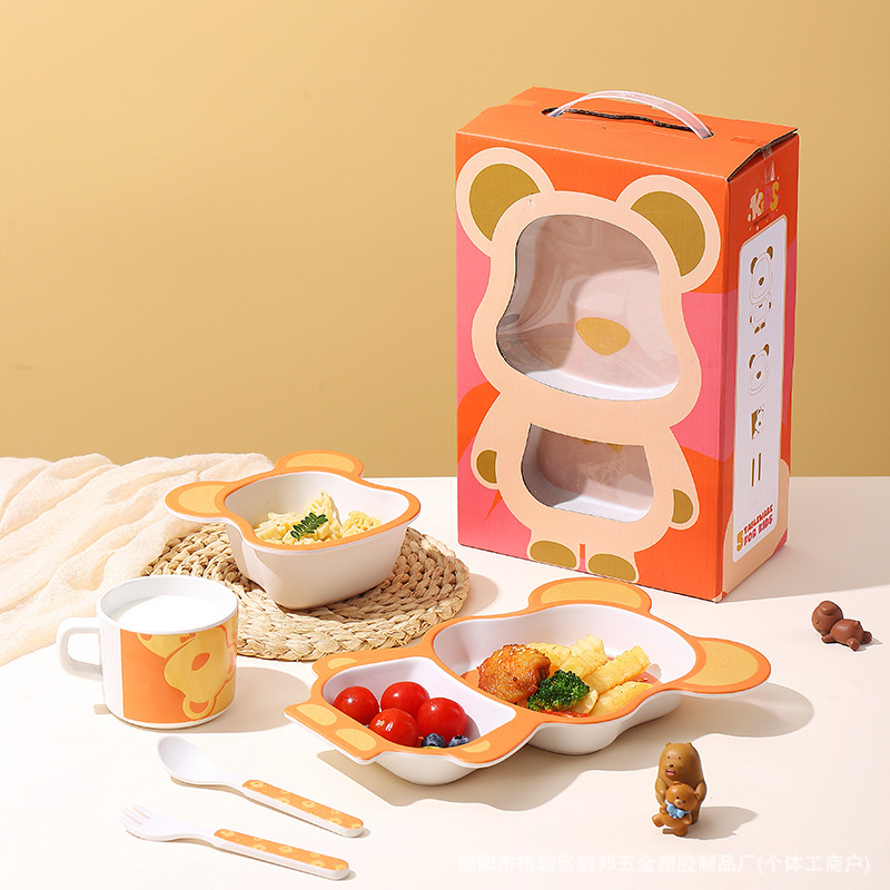 황금 곰 대나무 섬유 어린이 식기 아기 집에서 먹는 낙하 방지 분할 접시 어린이 식품 보충제 그릇과 숟가락 세트