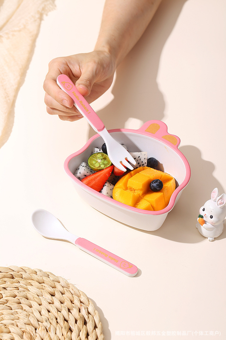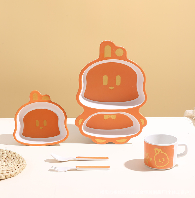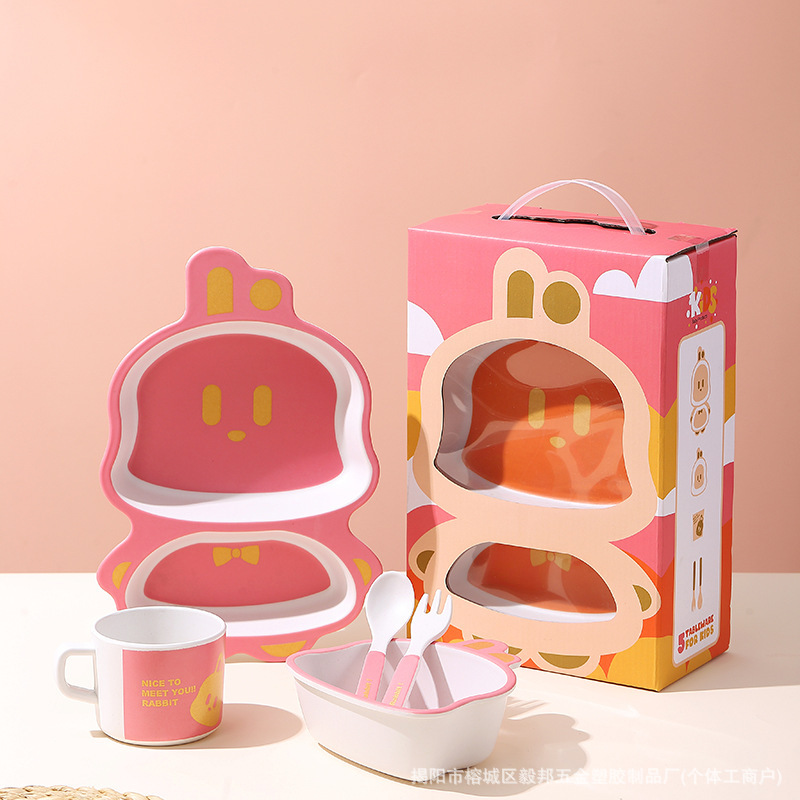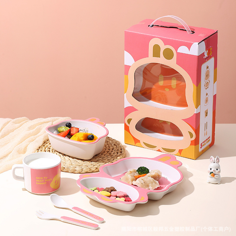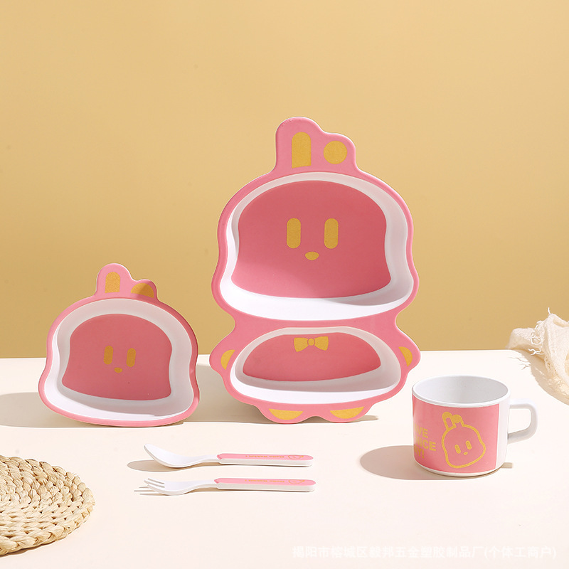 황금 곰 대나무 섬유 어린이 식기 아기 집에서 먹는 낙하 방지 분할 접시 어린이 식품 보충제 그릇과 숟가락 세트