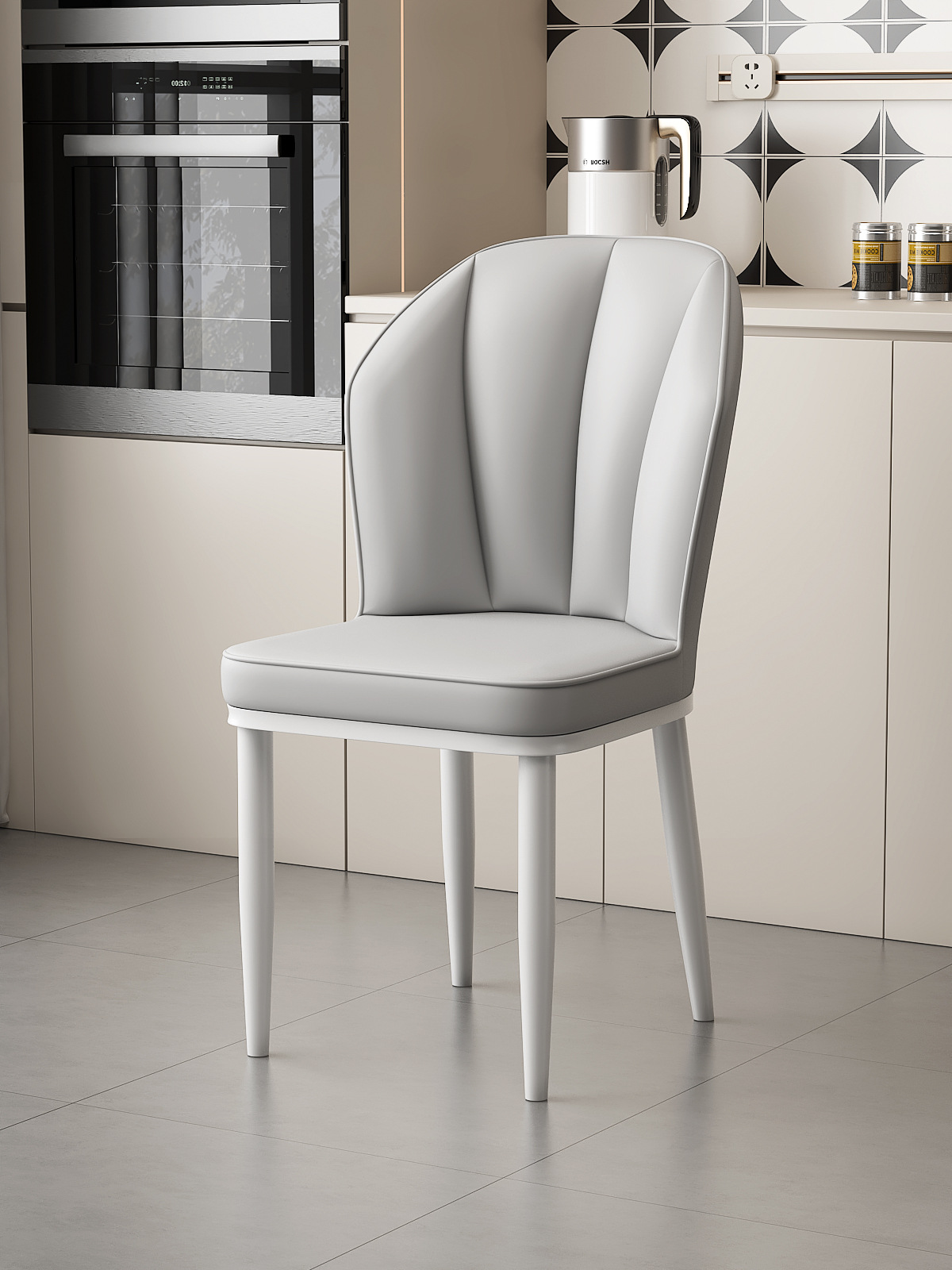 라이트 그레이-화이트 다리 [크림 스타일] 빵 의자 업그레이드 및 강화 버전