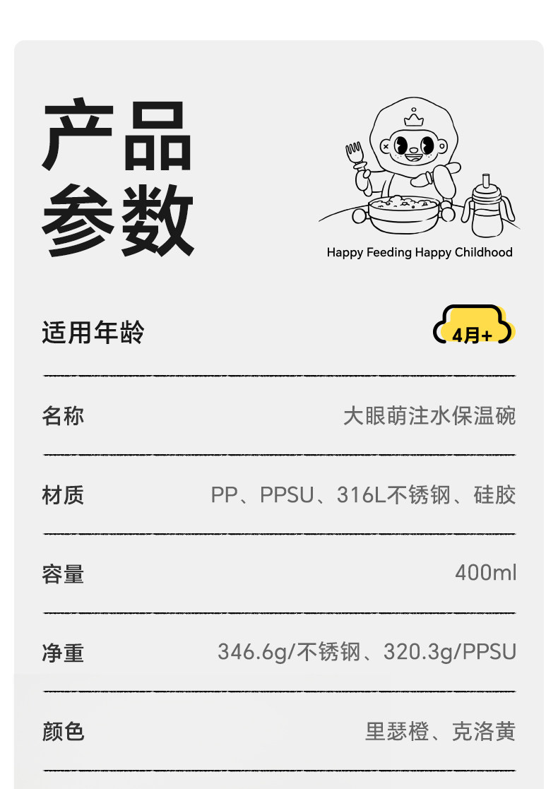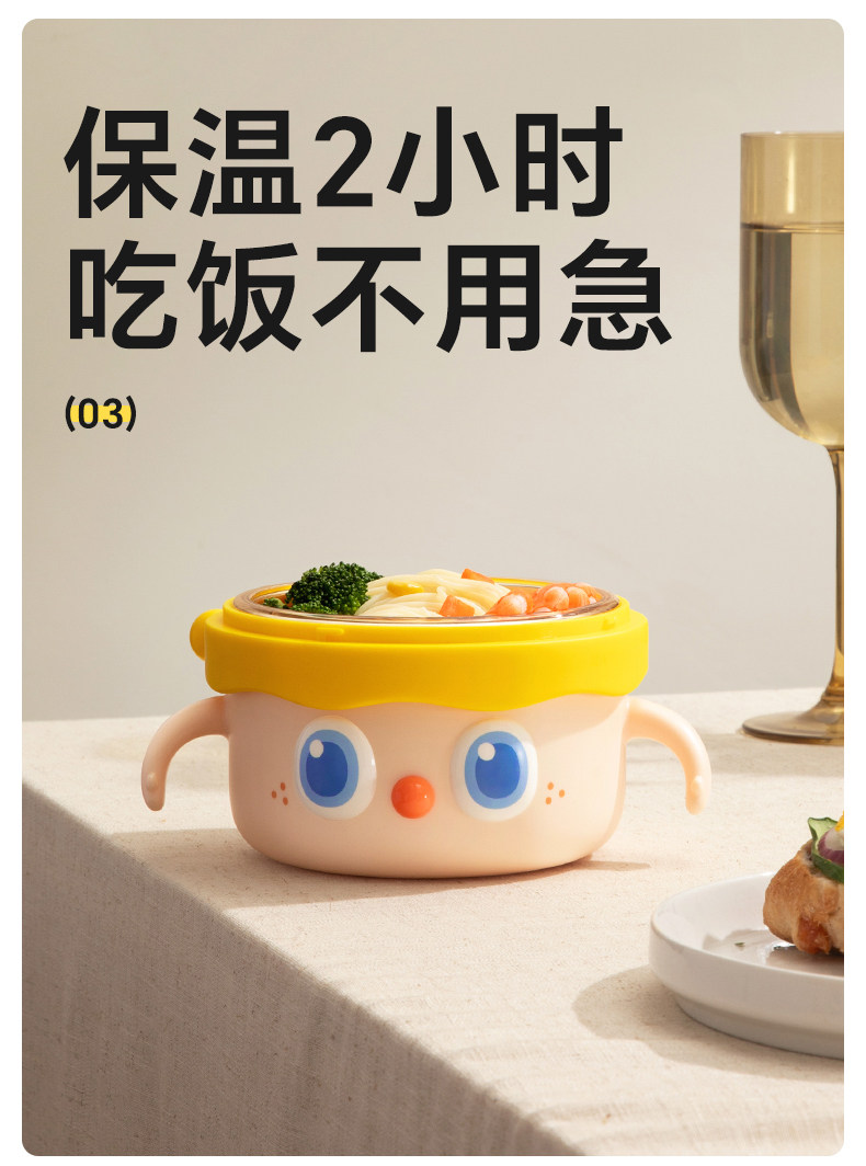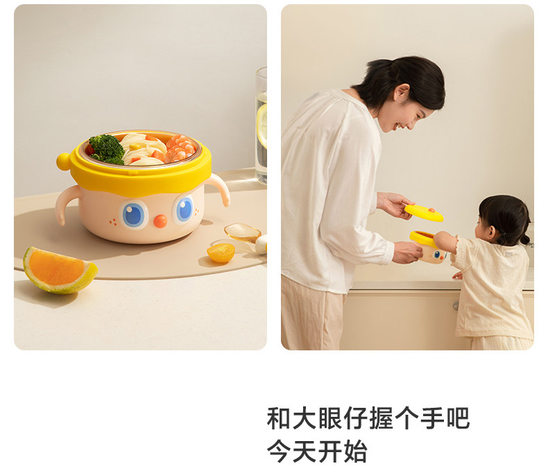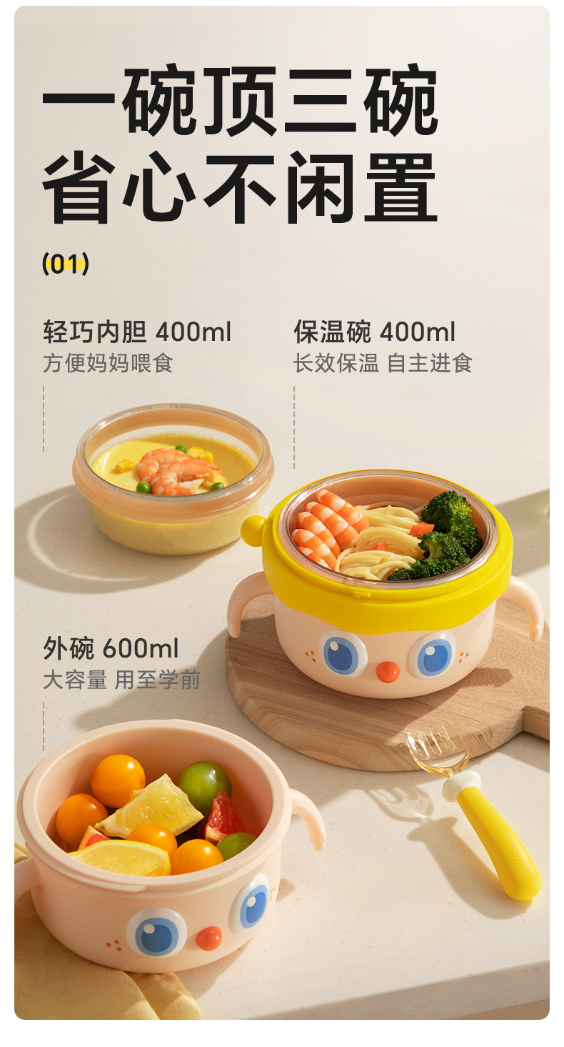 귀여운 큰 눈, 물이 가득한 보온 그릇, 이유식 보조 스케일 디너 플레이트, 부드러운 가장자리 포크와 스푼, 항온 스테인레스 스틸 보온 그릇