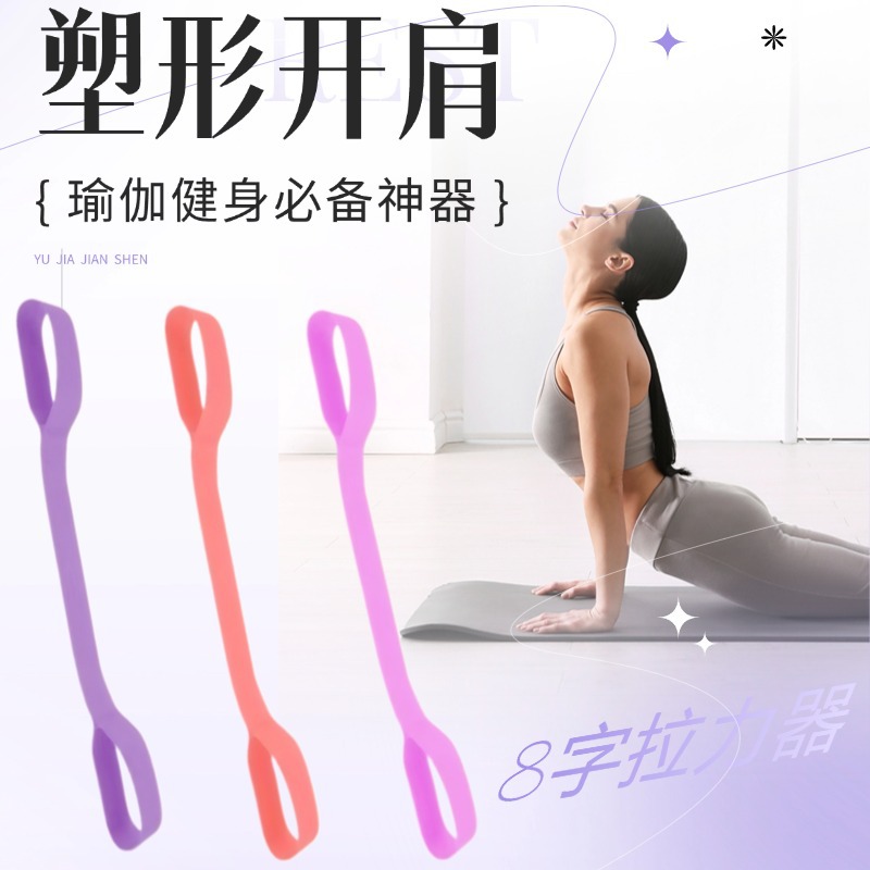 여성용 8자형 텐셔너, 오픈백 실리콘 탄성밴드, 텐션 로프, 홈 피트니스 요가 스트레칭 및 등 운동 도구