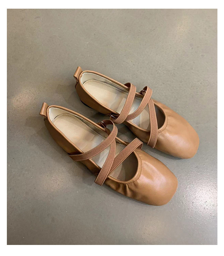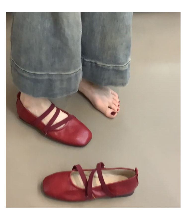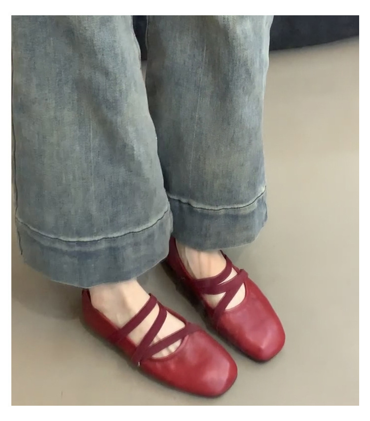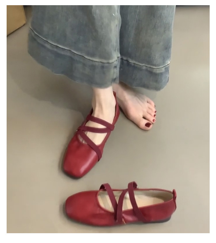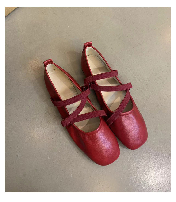 양가죽 버전 ~ 프렌치 크로스 스트랩 레드 메리제인 슈즈 플랫 슈즈 여성용 펌프스 이브닝 바람 요정 발레 슈즈