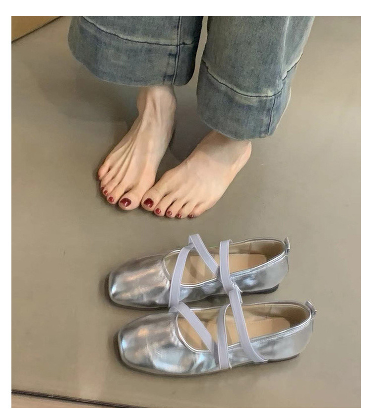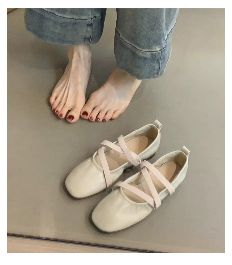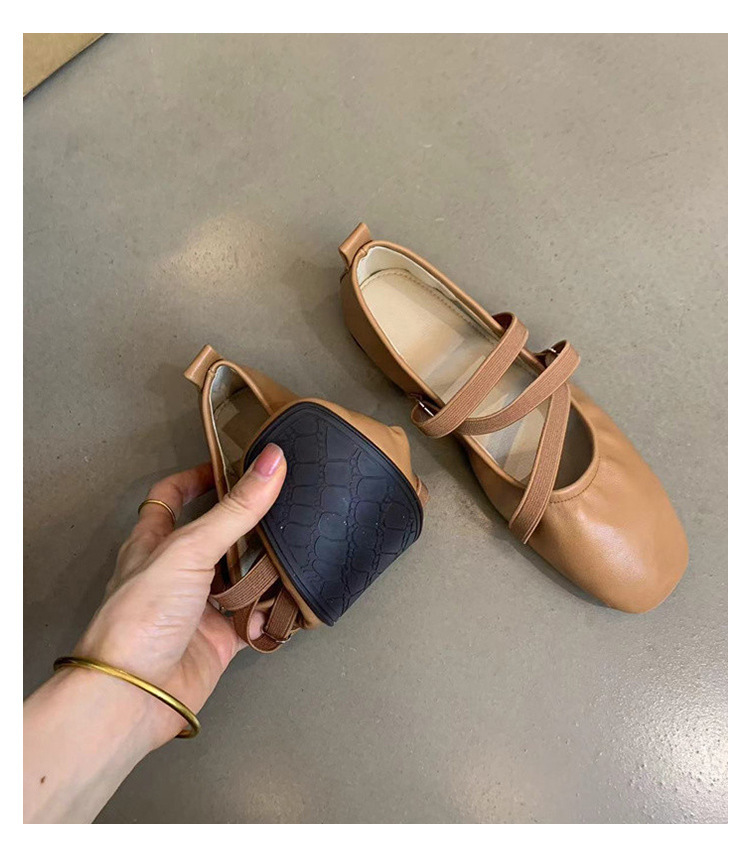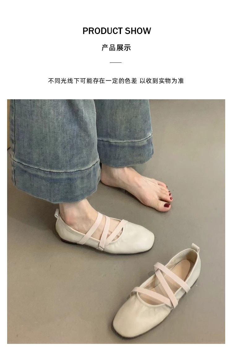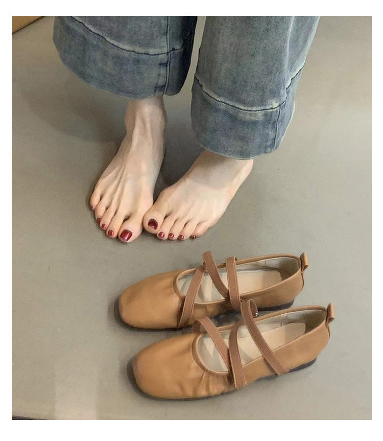 양가죽 버전 ~ 프렌치 크로스 스트랩 레드 메리제인 슈즈 플랫 슈즈 여성용 펌프스 이브닝 바람 요정 발레 슈즈