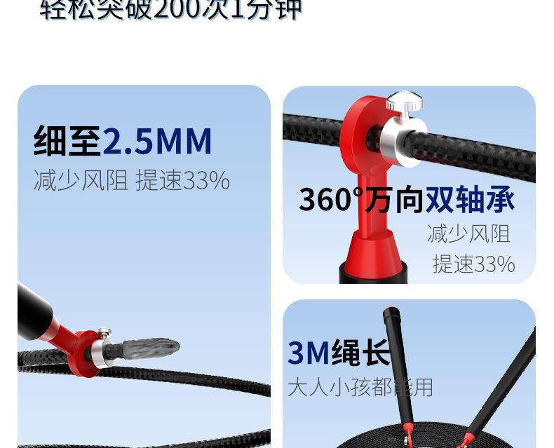 스포츠 레이싱 줄넘기, 전문 속도 경쟁, 고등학교 입시 어린이를 위한 내구성 있는 더블 로커 피트니스 초경량 고급 와이어 줄넘기
