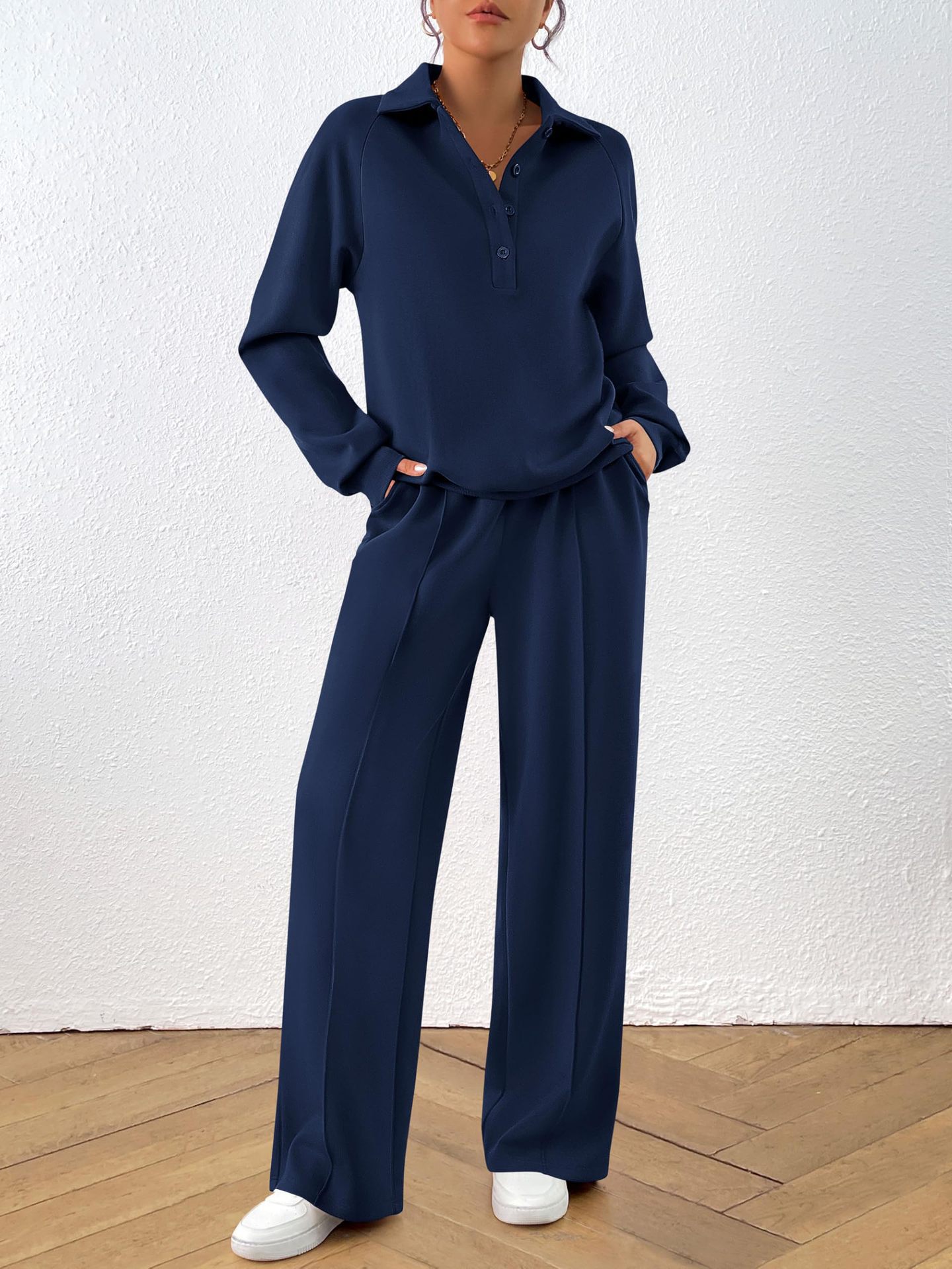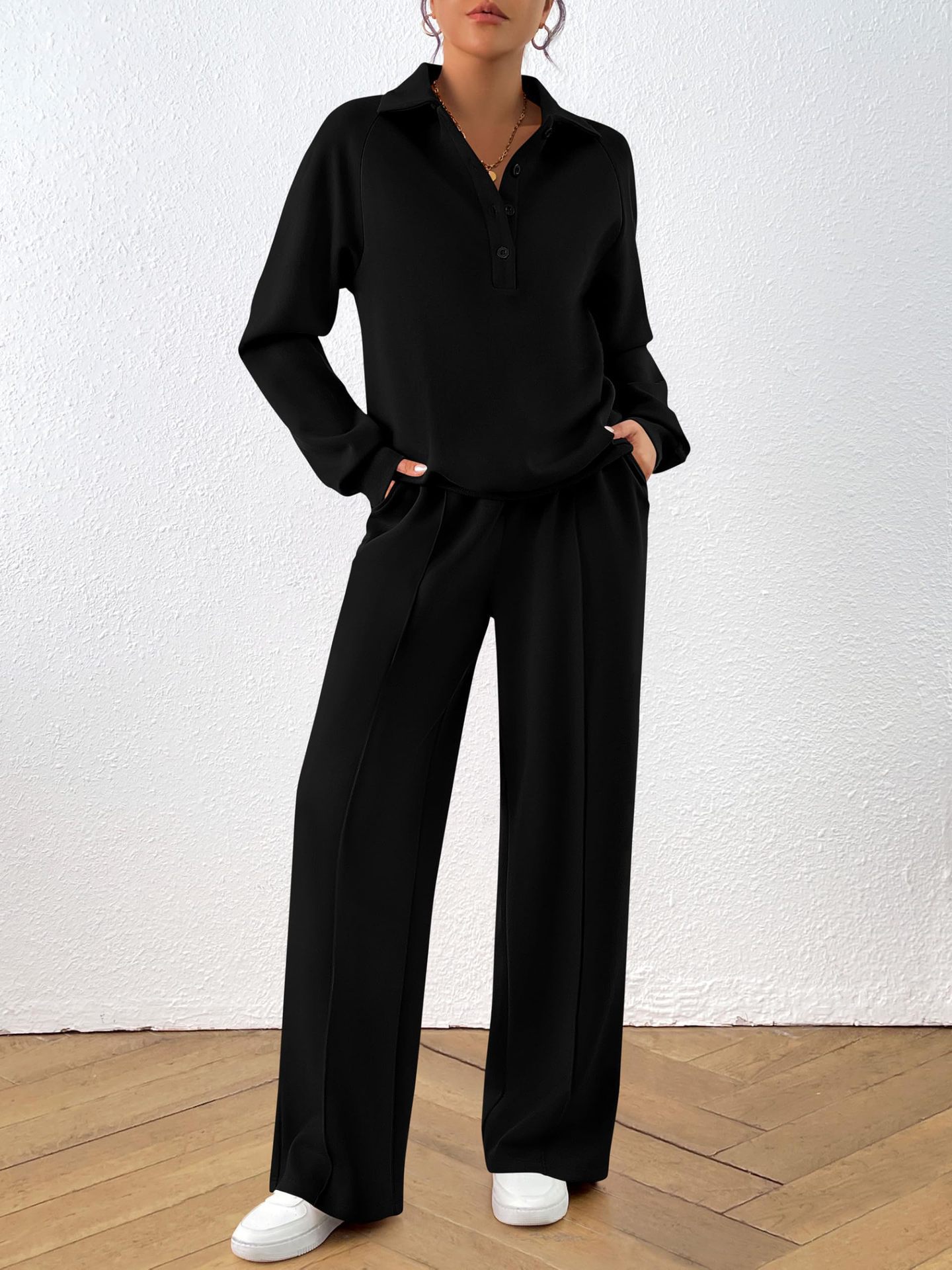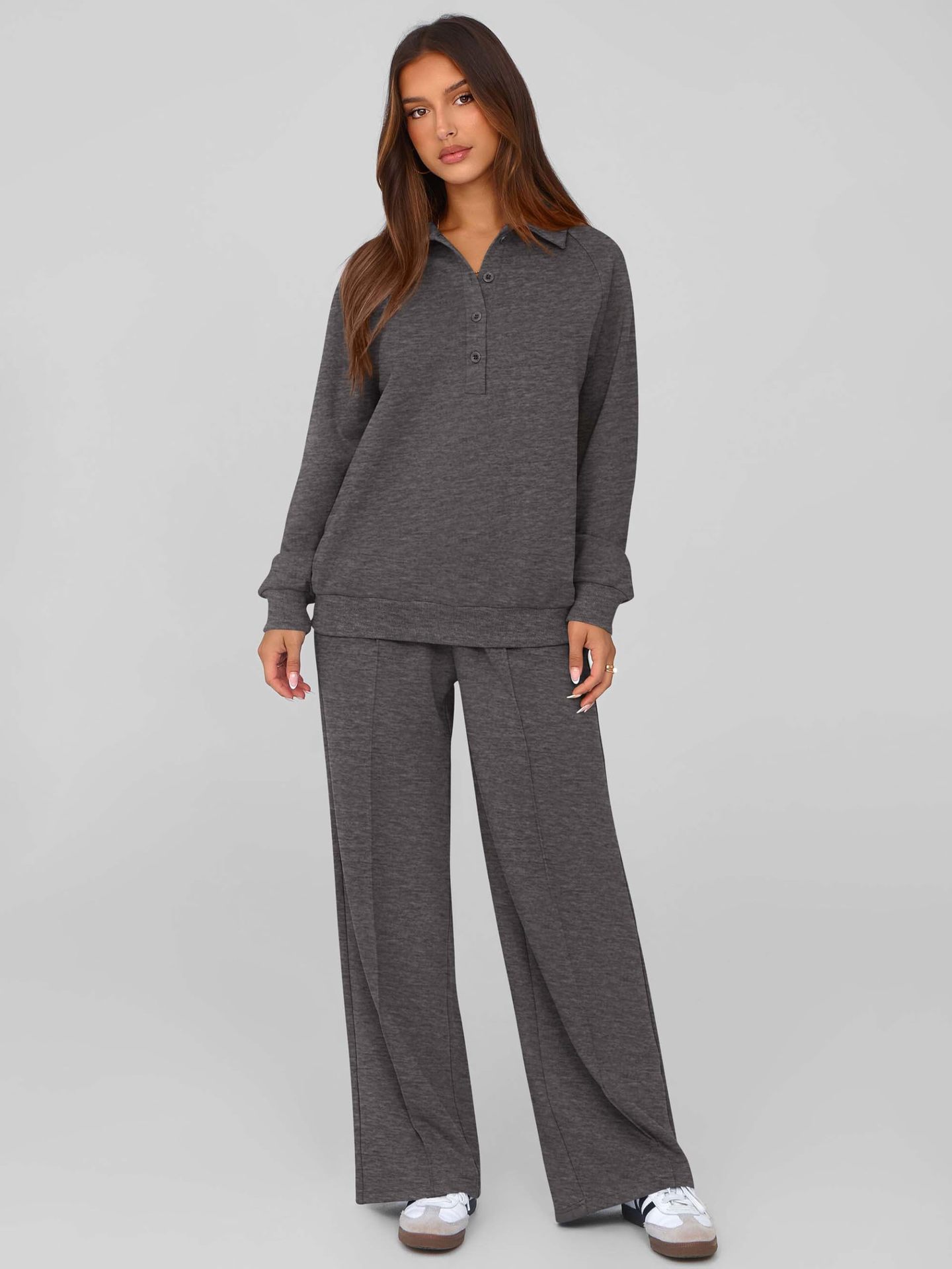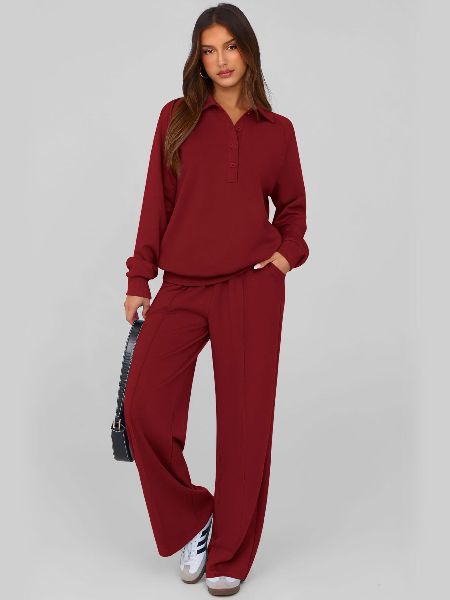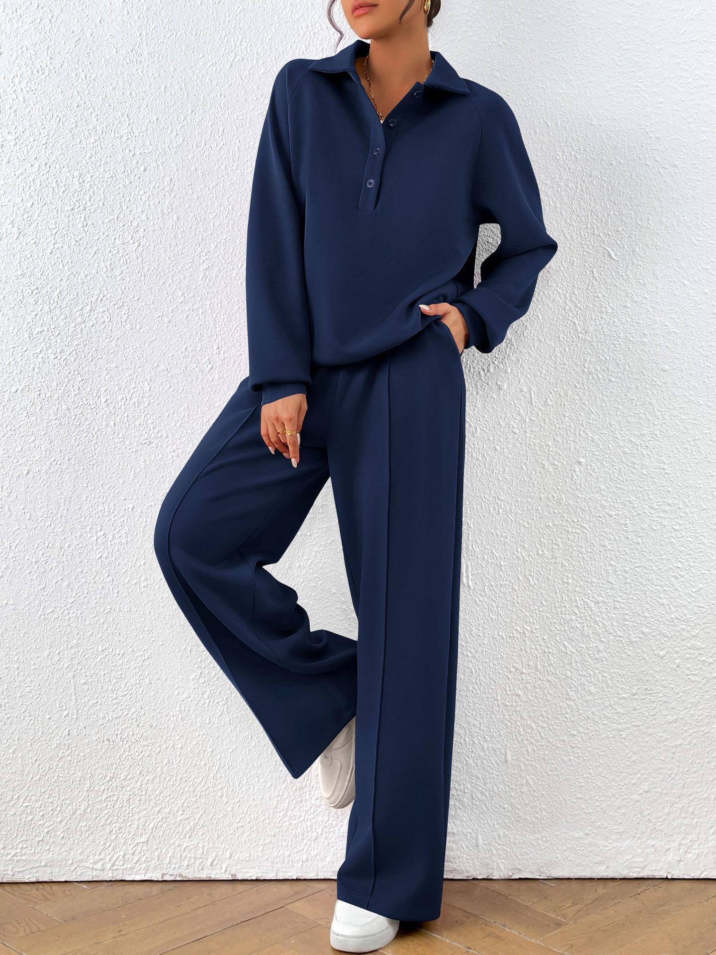 2025 Amazon 봄, 가을 새로운 캐주얼 v 넥 긴팔 루즈 탑 와이드 레그 팬츠 여성용 투피스 스포츠 슈트