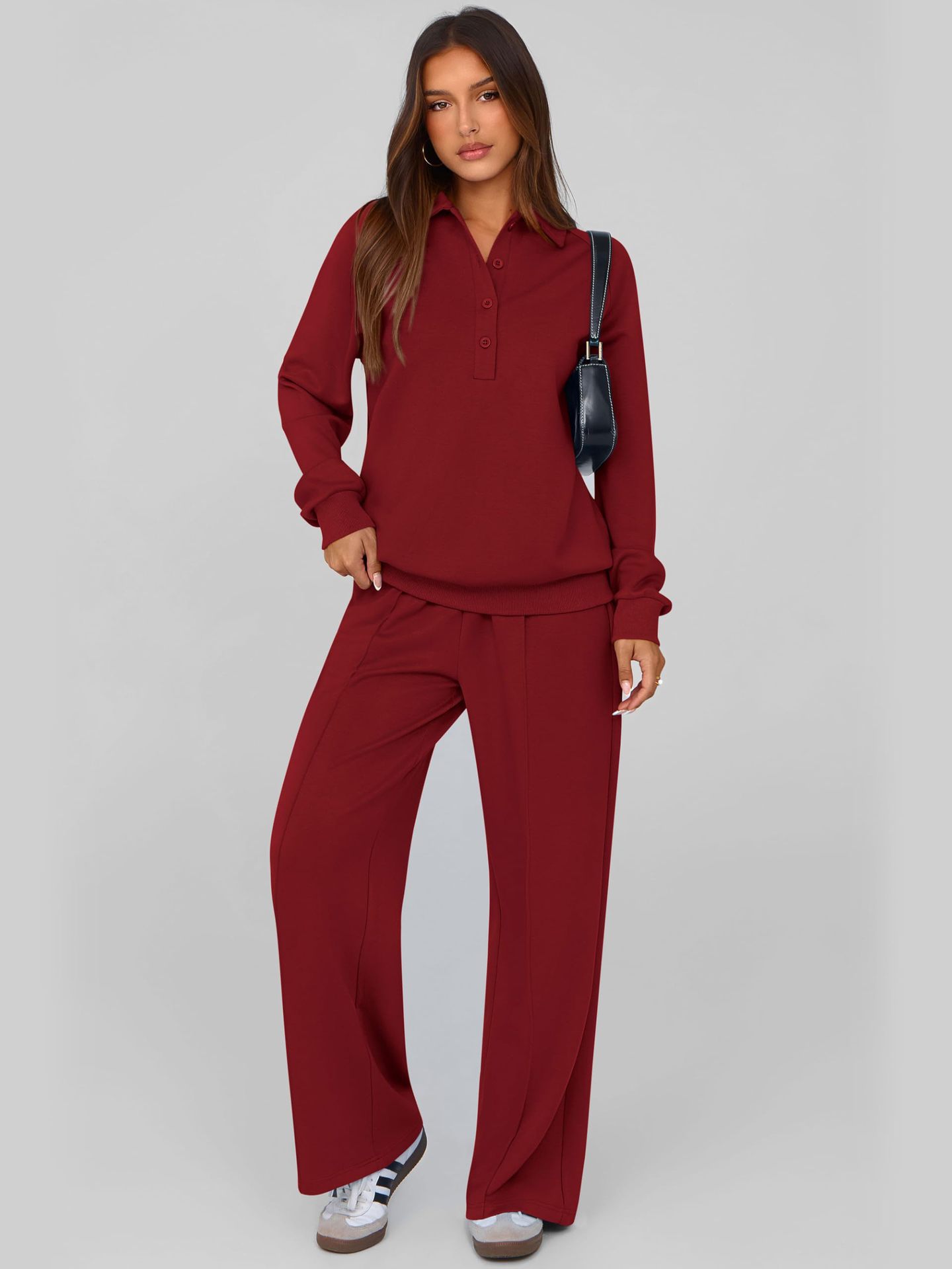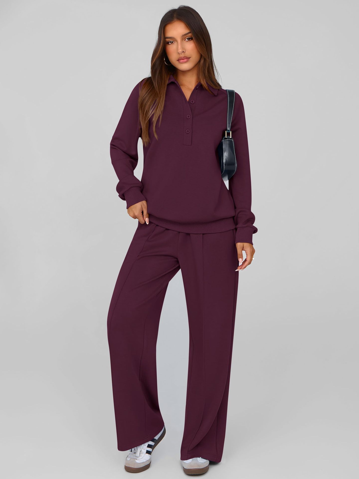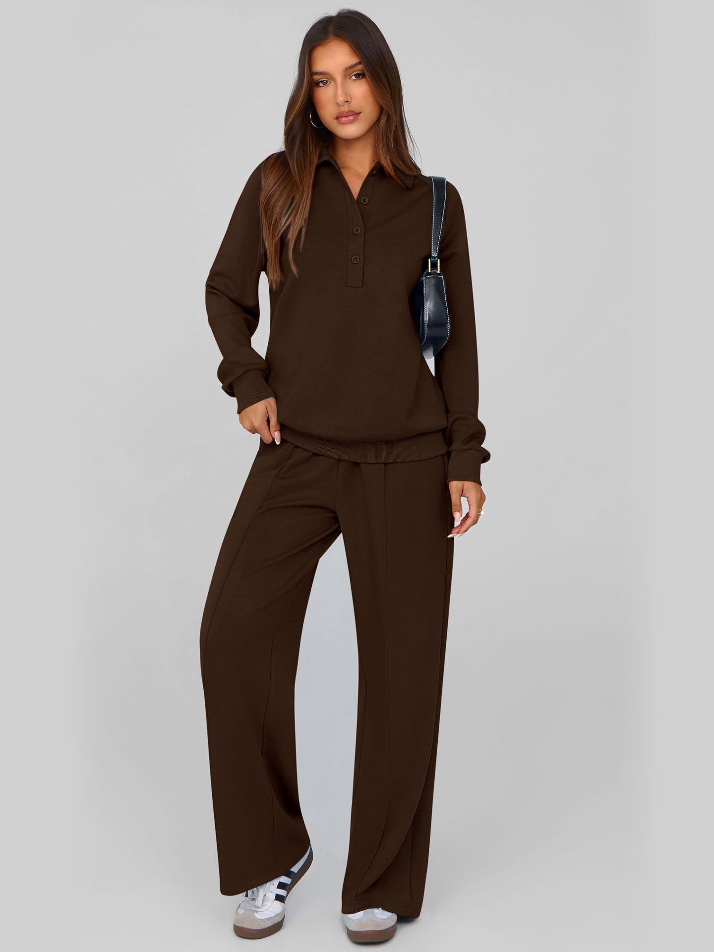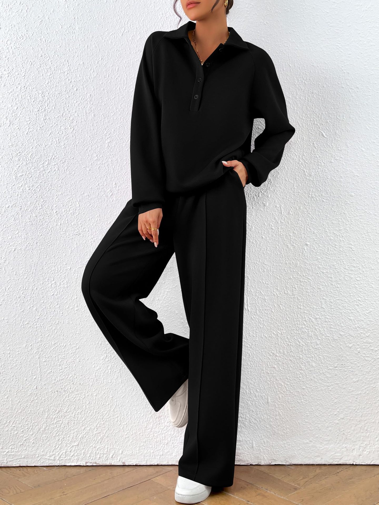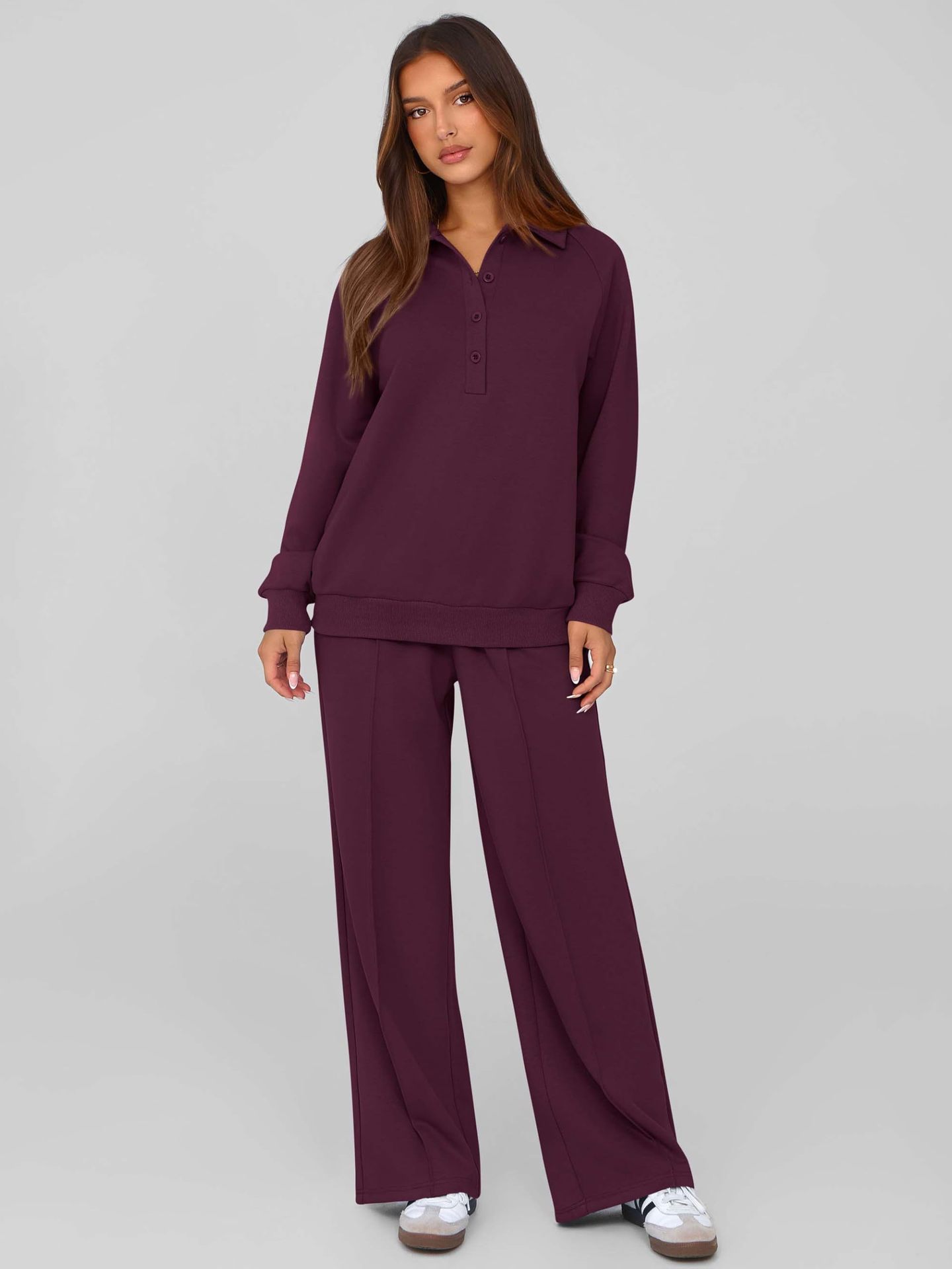 2025 Amazon 봄, 가을 새로운 캐주얼 v 넥 긴팔 루즈 탑 와이드 레그 팬츠 여성용 투피스 스포츠 슈트