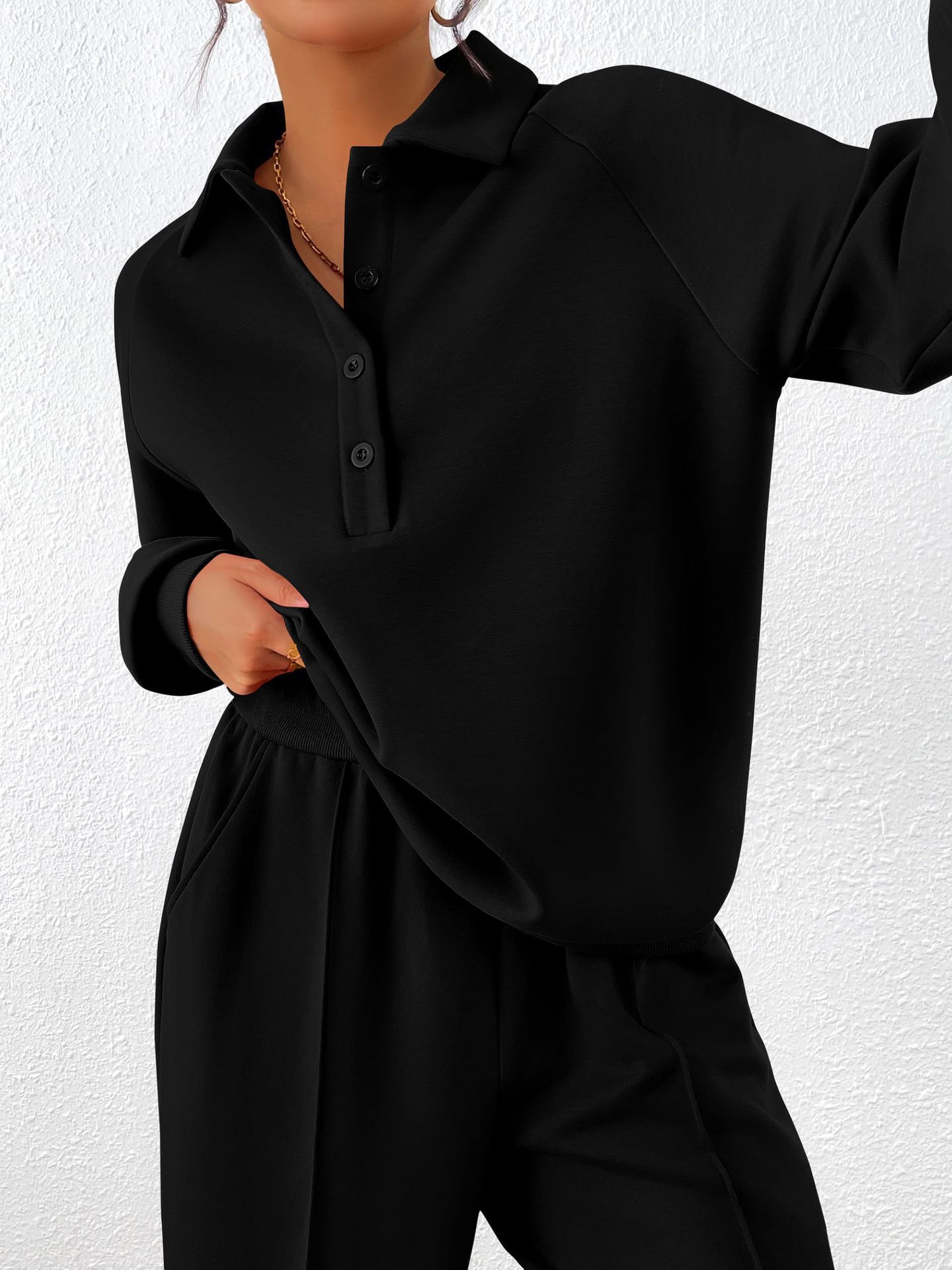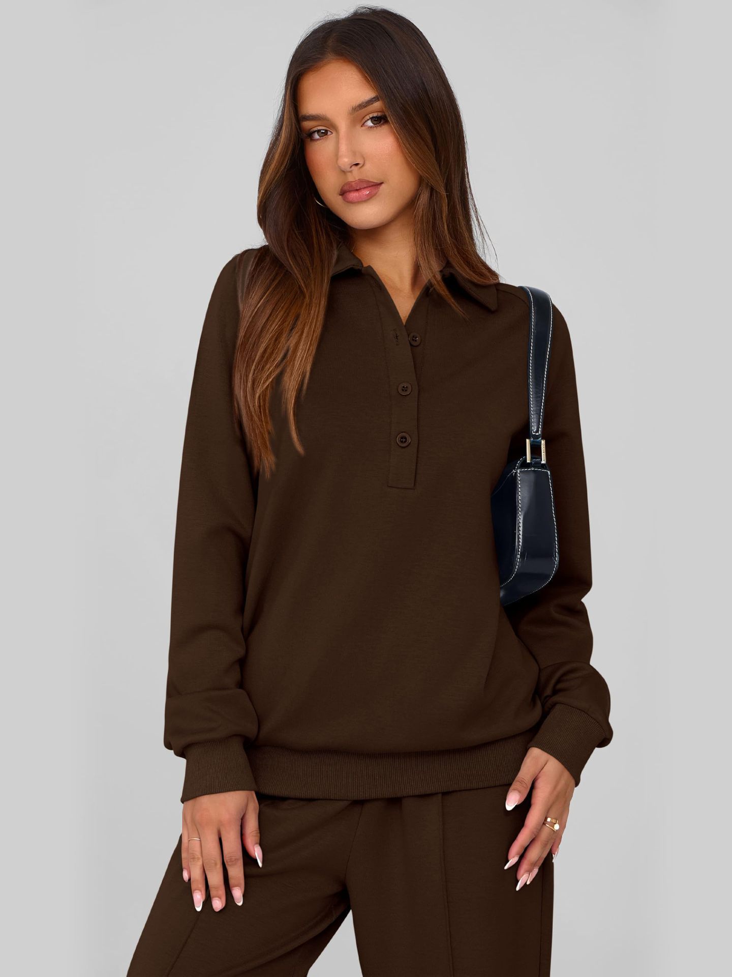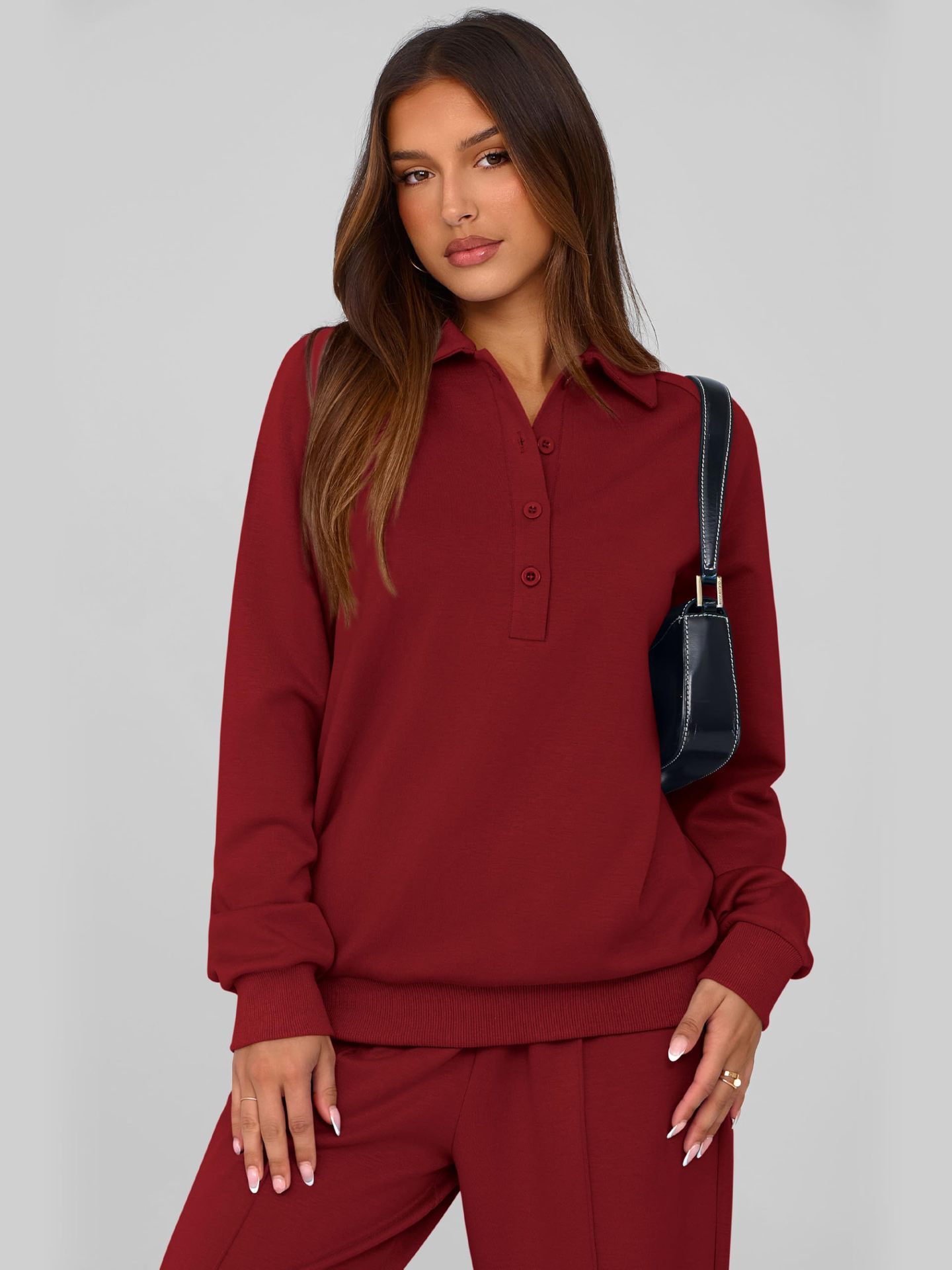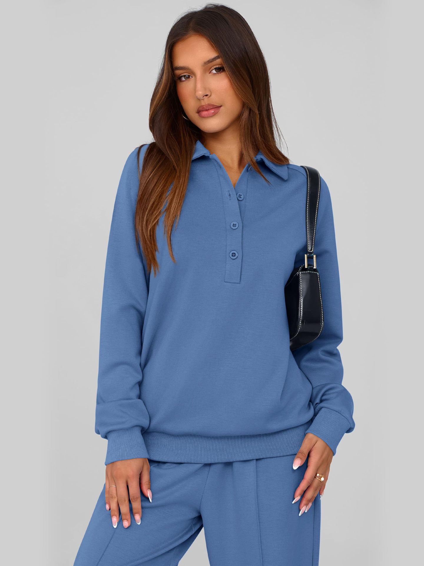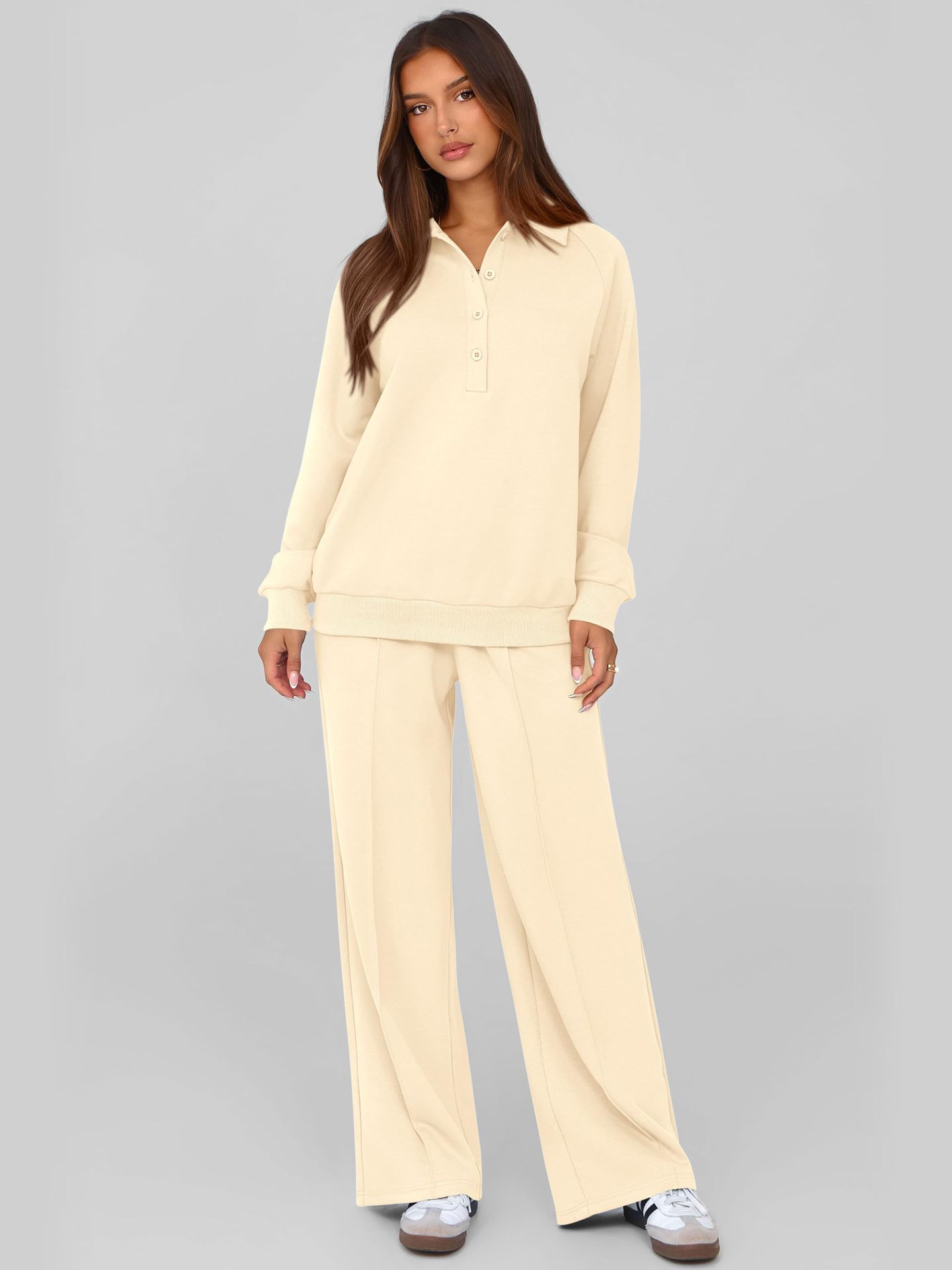 2025 Amazon 봄, 가을 새로운 캐주얼 v 넥 긴팔 루즈 탑 와이드 레그 팬츠 여성용 투피스 스포츠 슈트