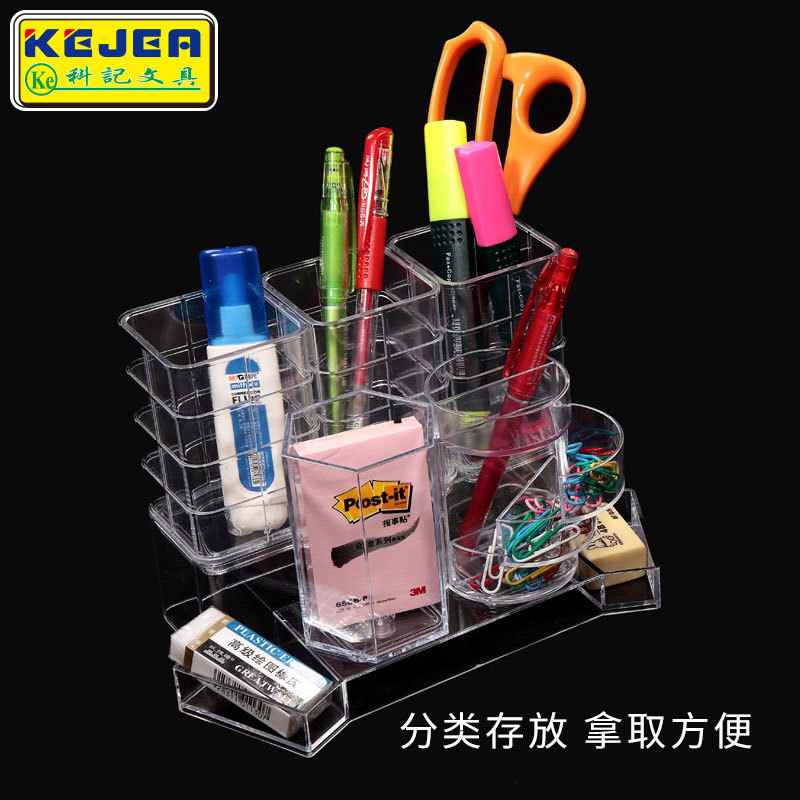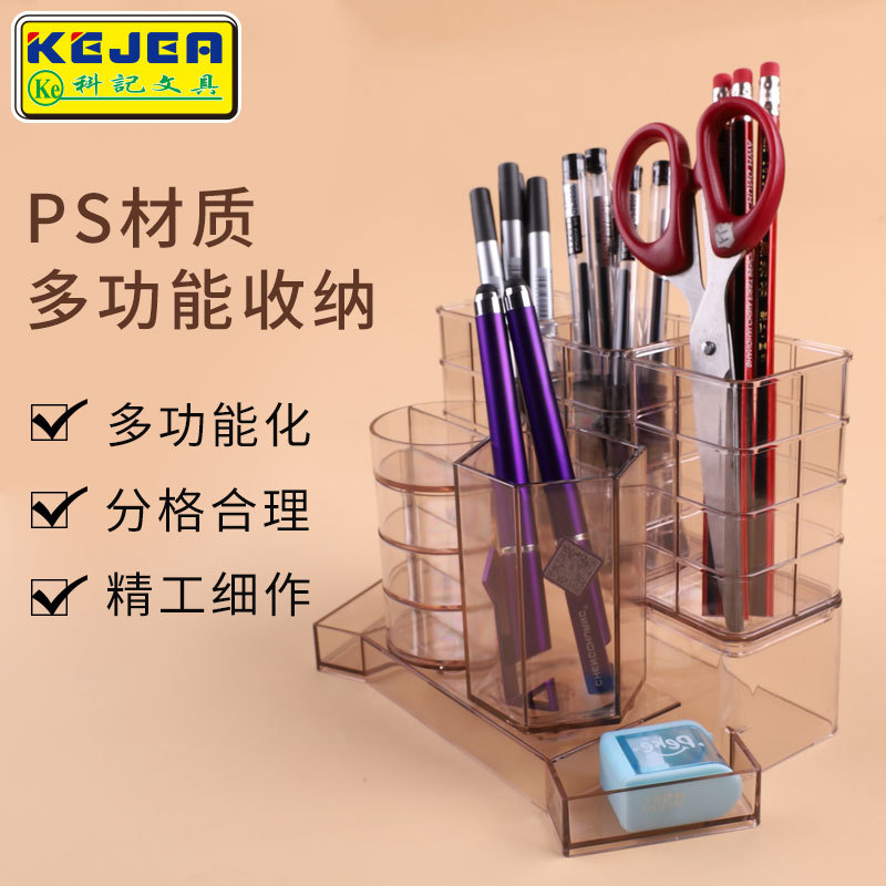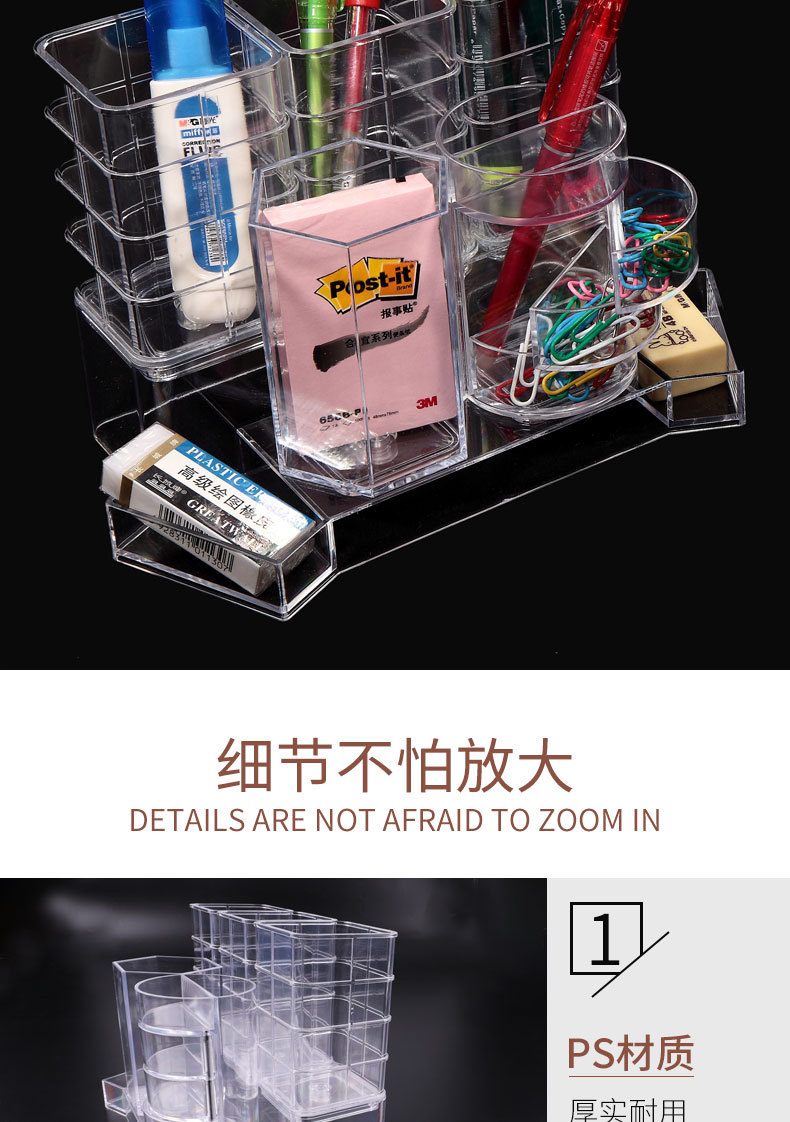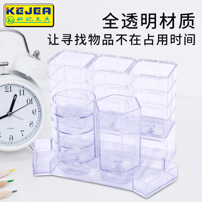 대용량 펜 홀더 다기능 펜 홀더 사무실 데스크탑 플라스틱 펜 배럴 학생 문구 투명 스토리지 펜 홀더