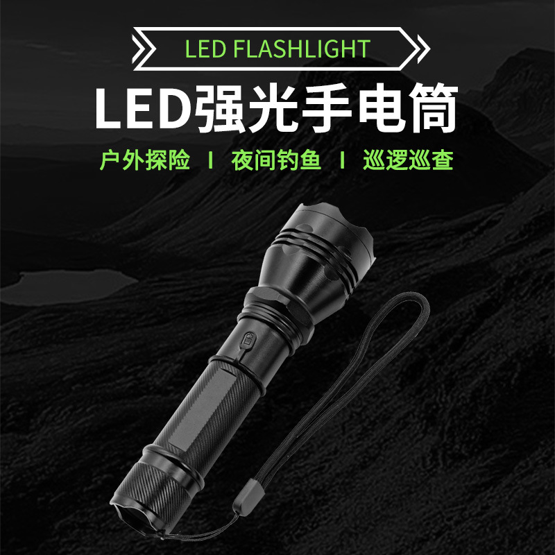 강한 빛 충전식 홈 야외 사이클링 자기 방어 방폭 손전등 야간 순찰 하이라이트 LED 알루미늄 합금 손전등 c6