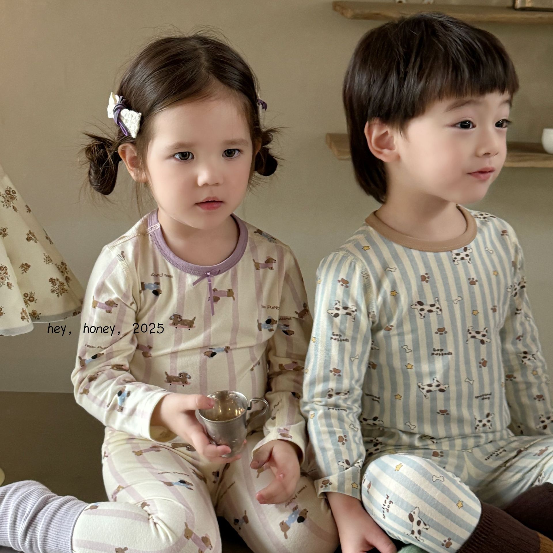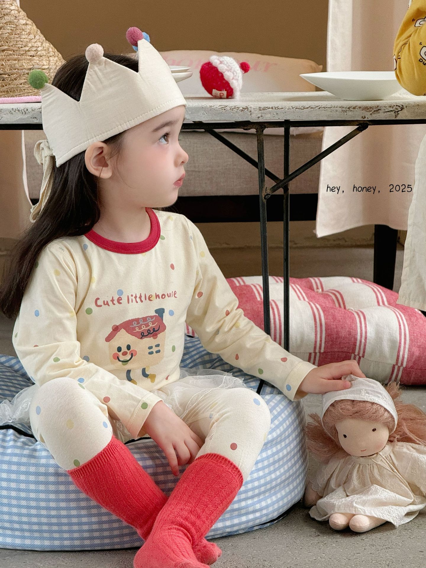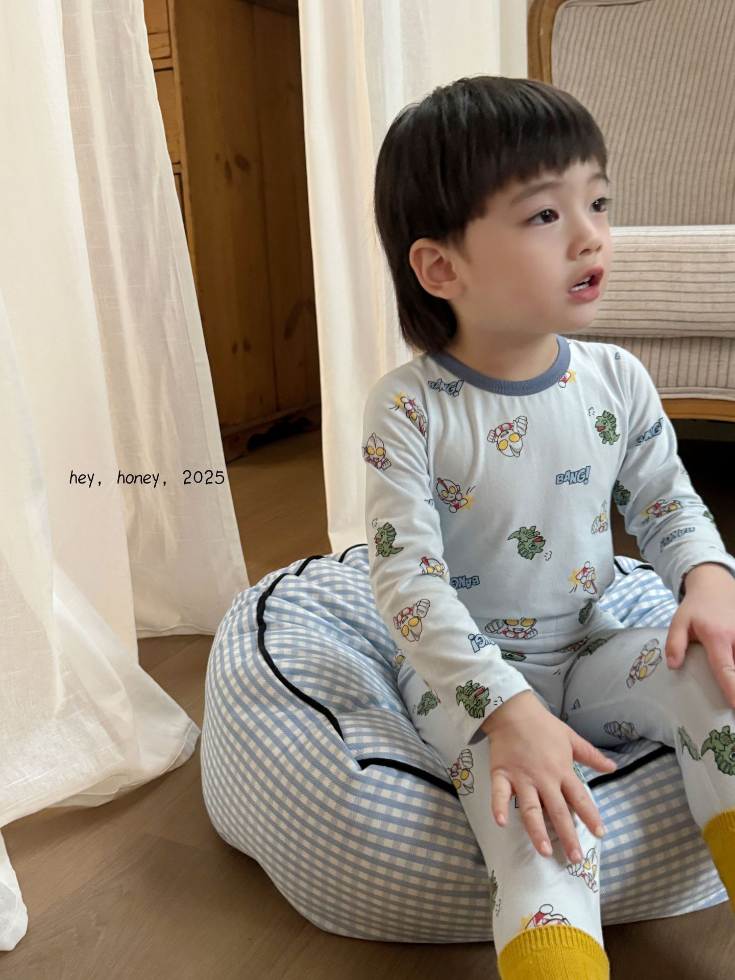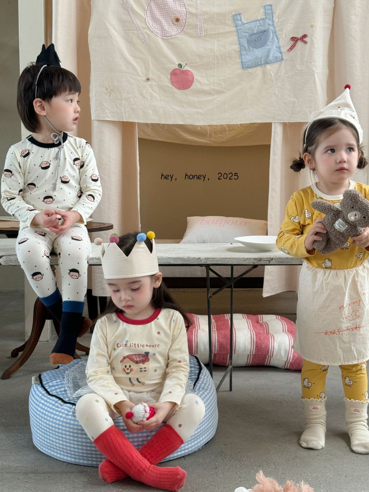 큰 롤과 작은 롤 Heyhoney25 라이크라 코튼 소년 소녀 가을 속옷 프린트 홈웨어 잠옷 투피스 세트