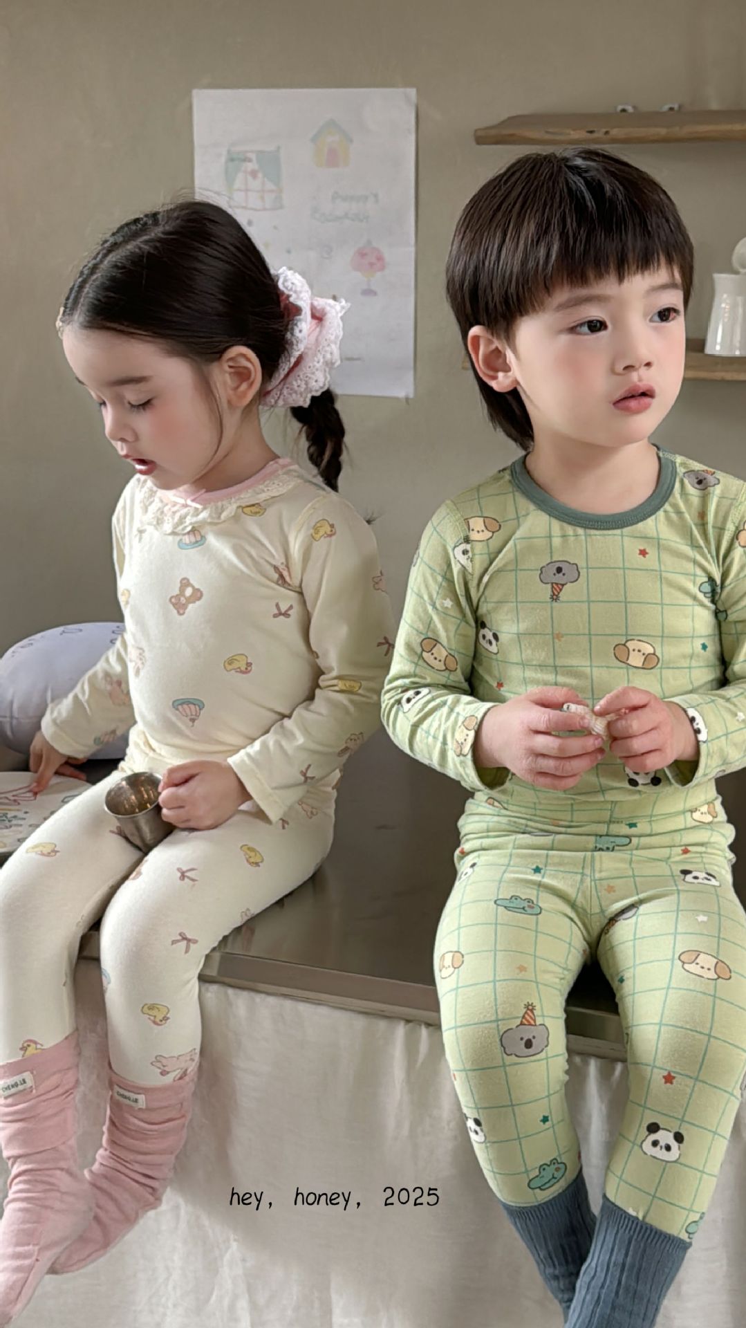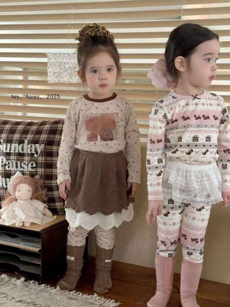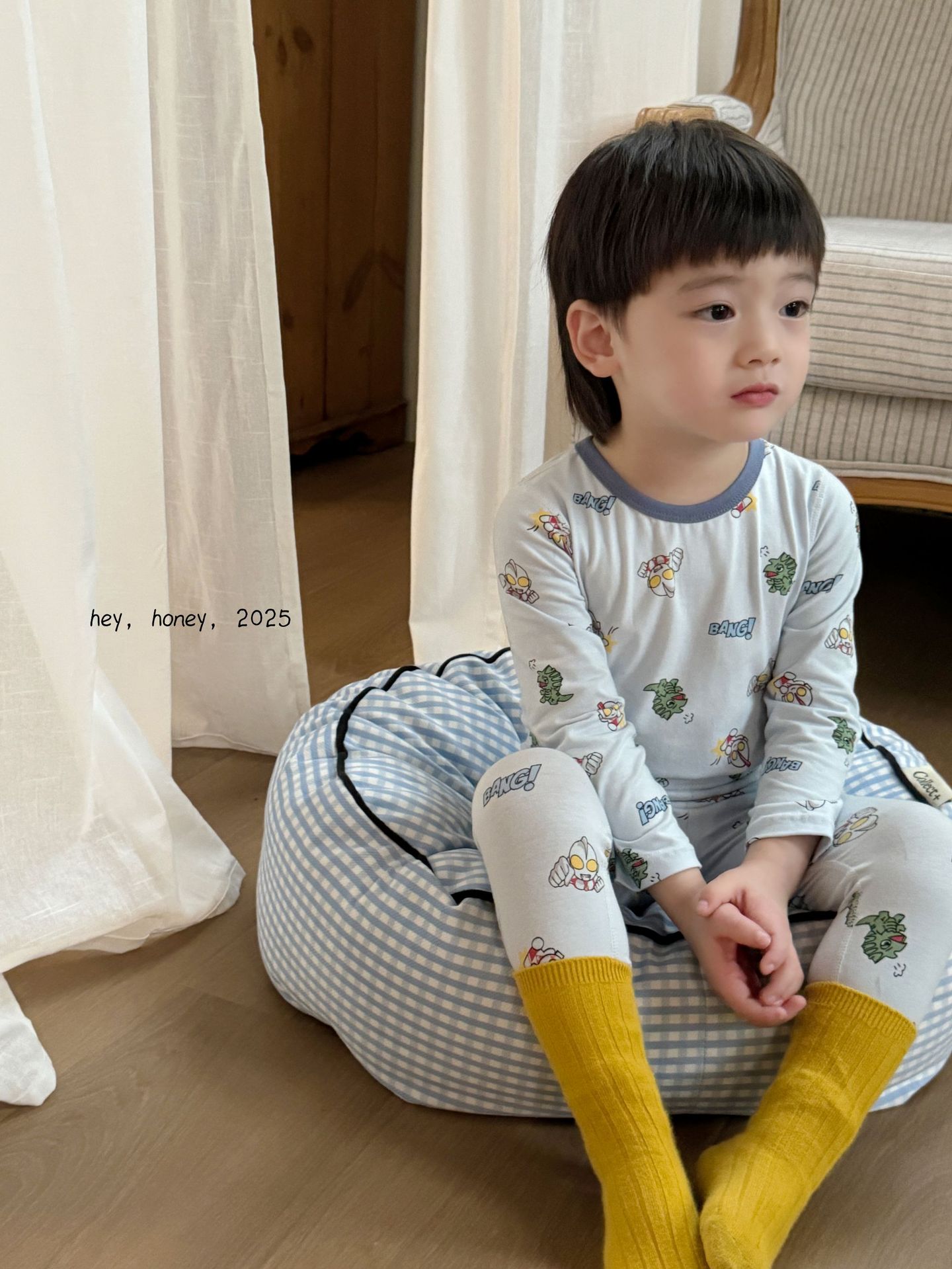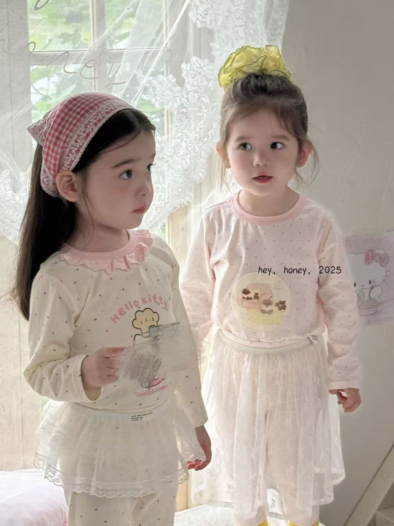 큰 롤과 작은 롤 Heyhoney25 라이크라 코튼 소년 소녀 가을 속옷 프린트 홈웨어 잠옷 투피스 세트