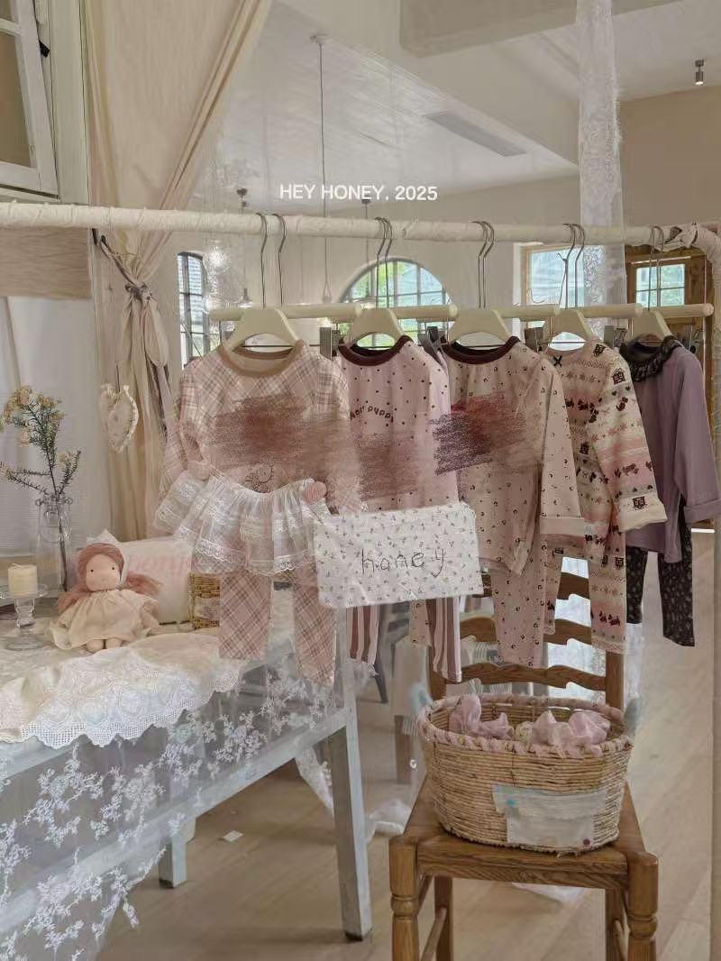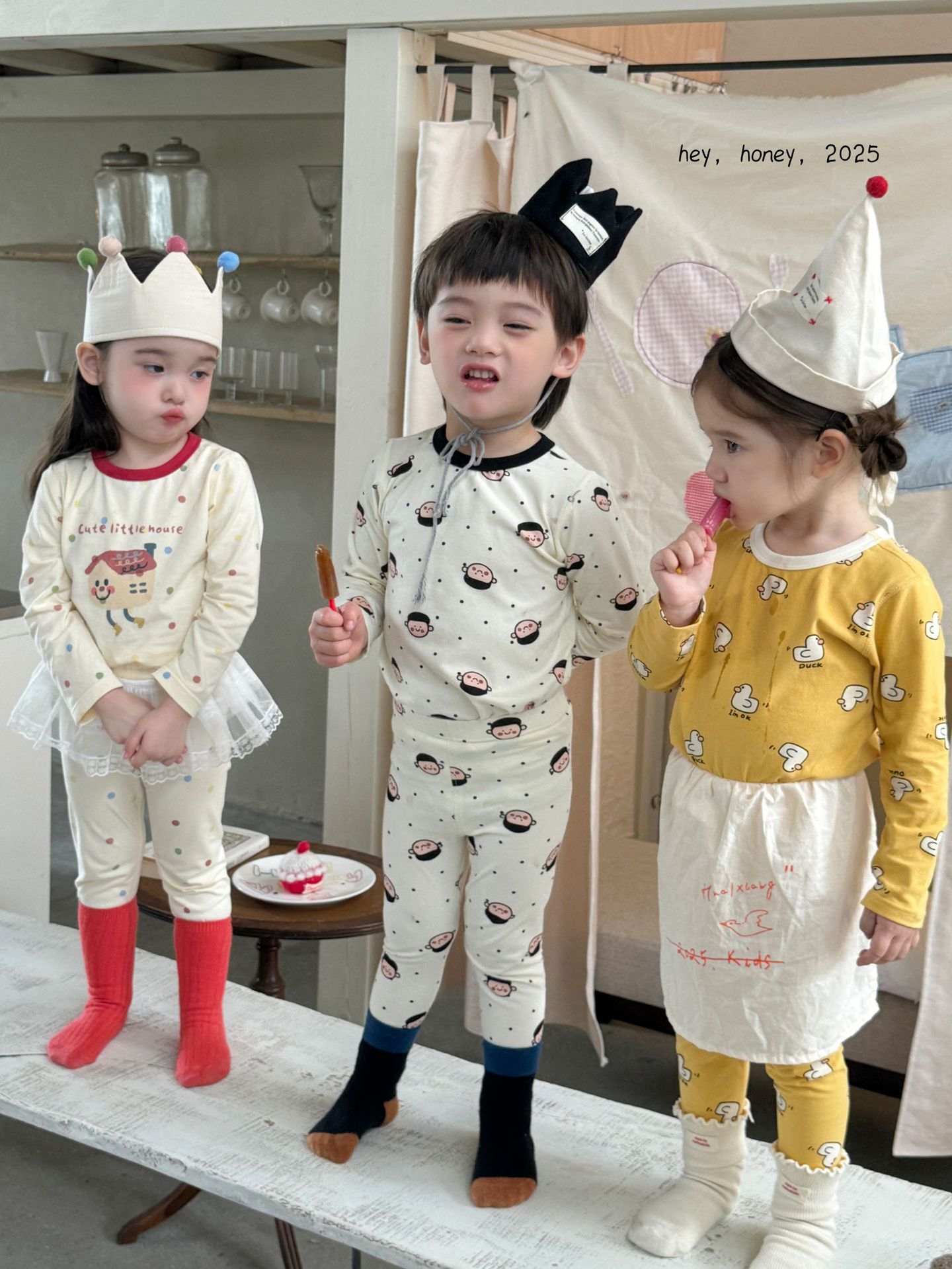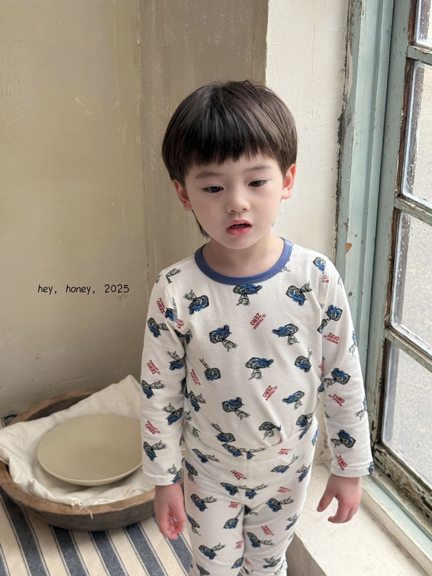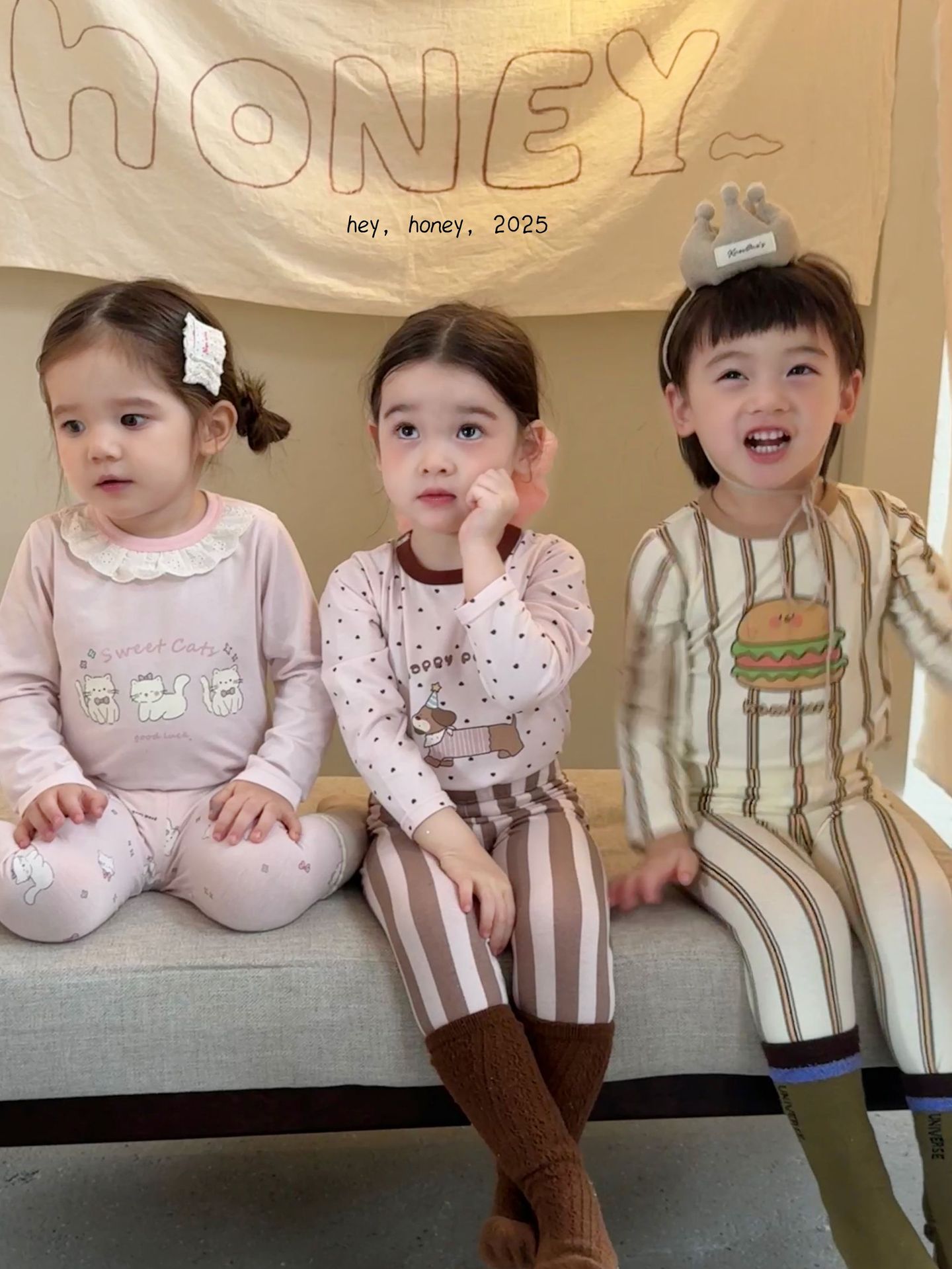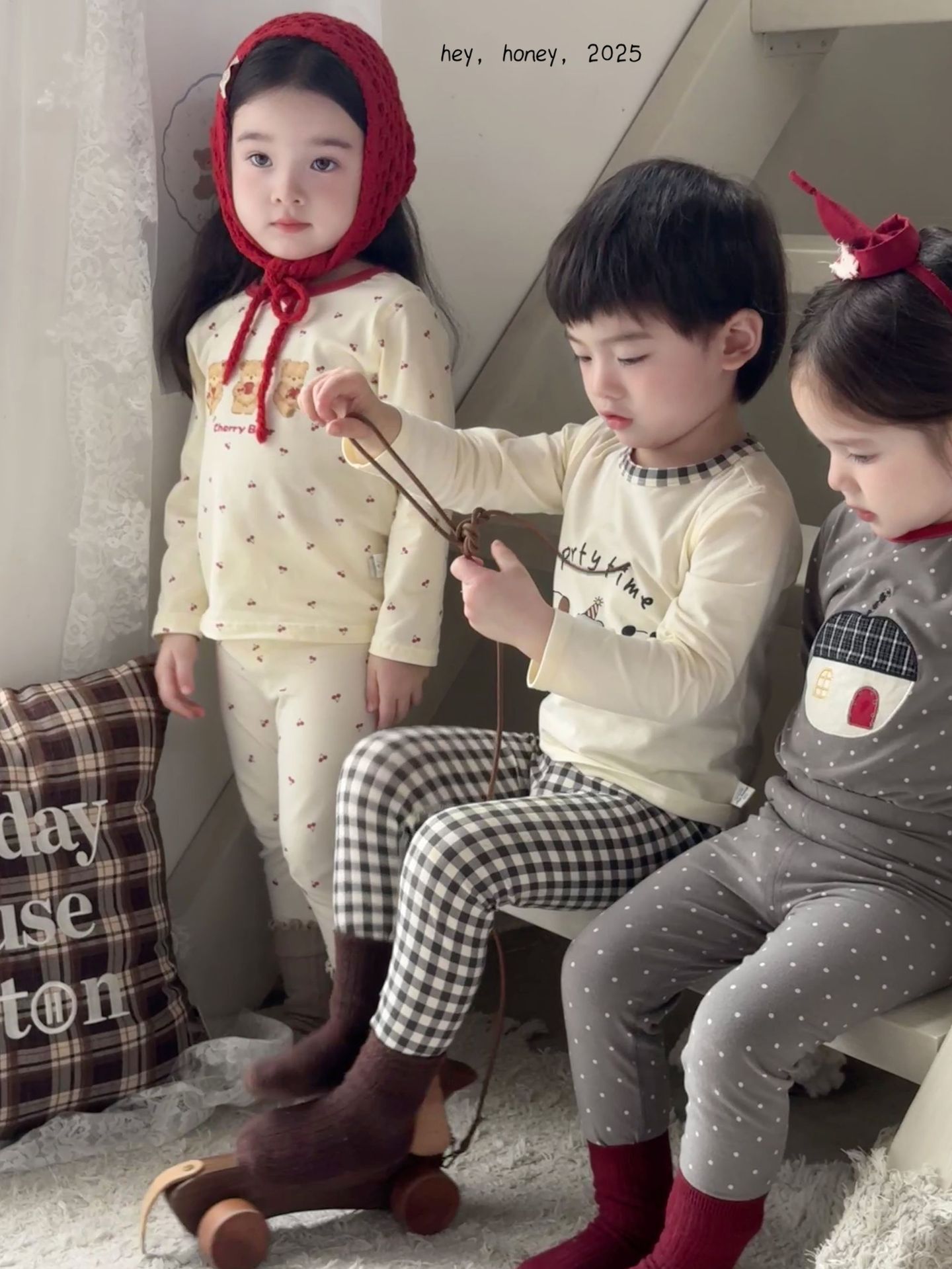 큰 롤과 작은 롤 Heyhoney25 라이크라 코튼 소년 소녀 가을 속옷 프린트 홈웨어 잠옷 투피스 세트