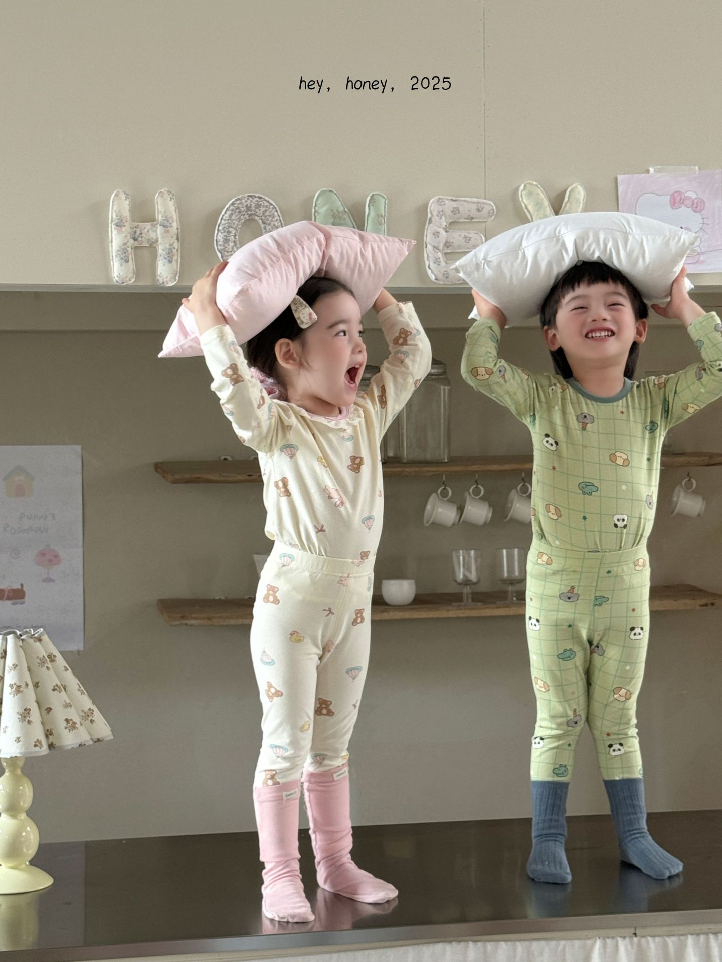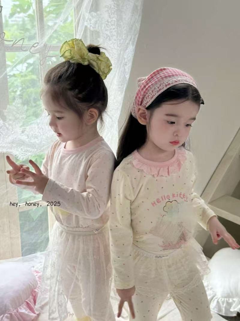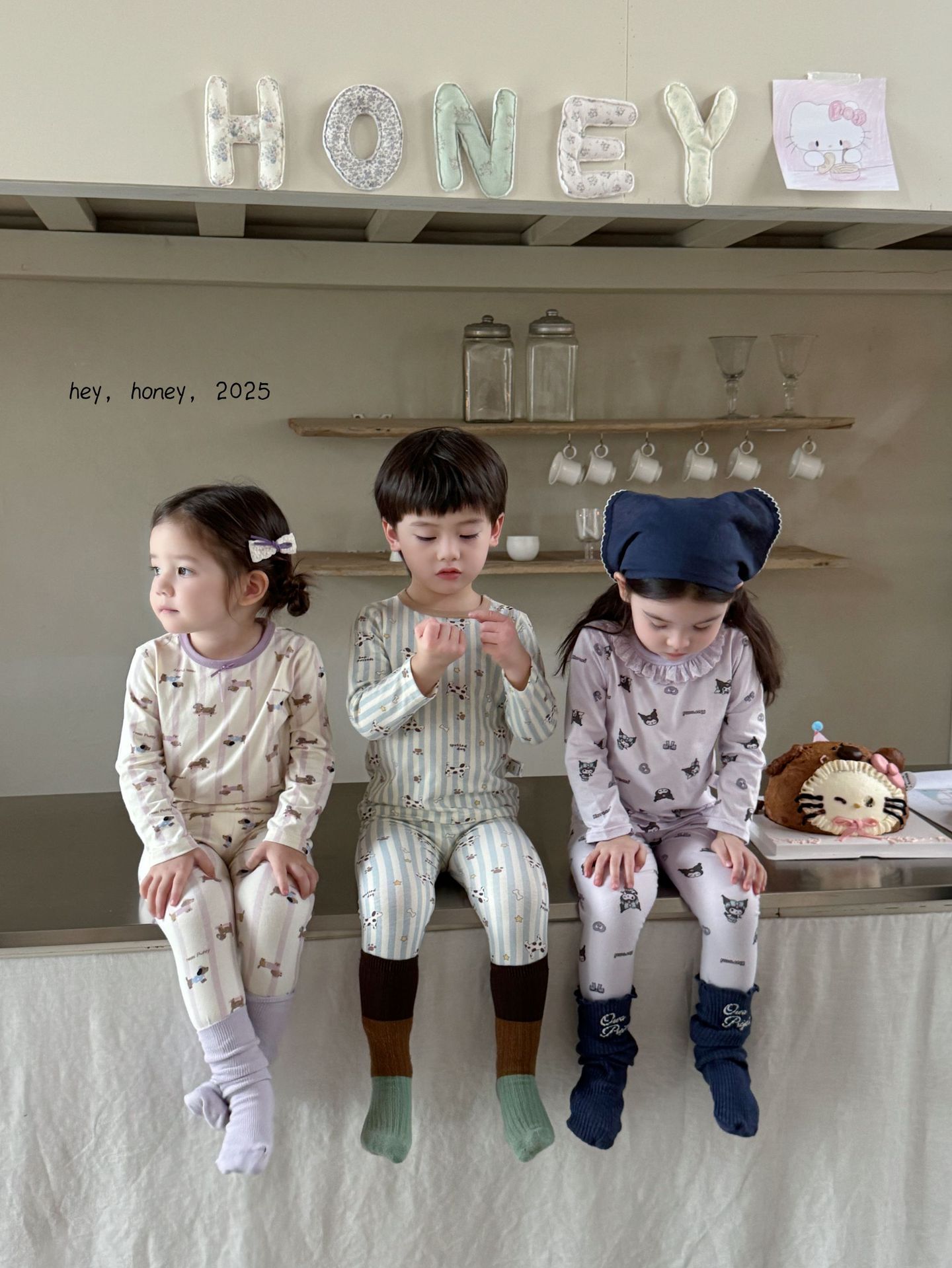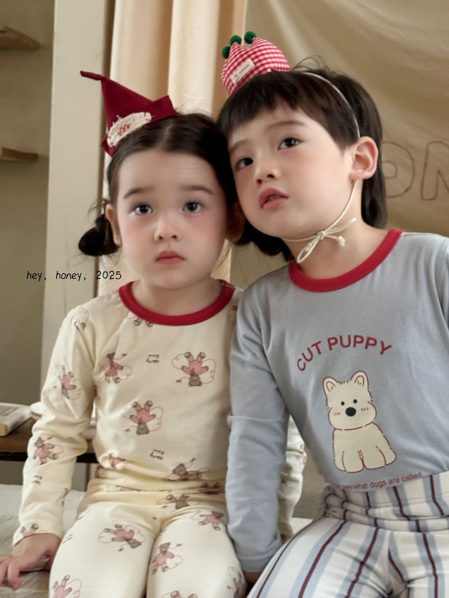 큰 롤과 작은 롤 Heyhoney25 라이크라 코튼 소년 소녀 가을 속옷 프린트 홈웨어 잠옷 투피스 세트