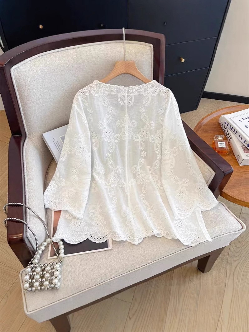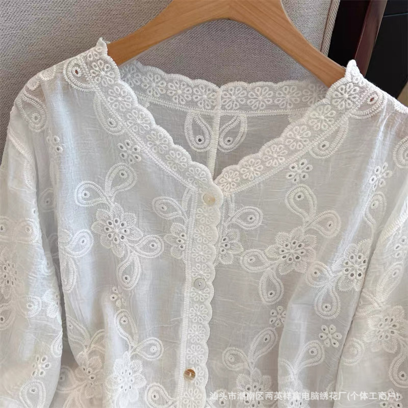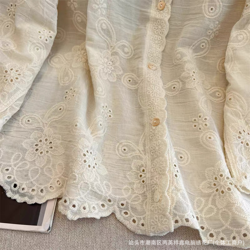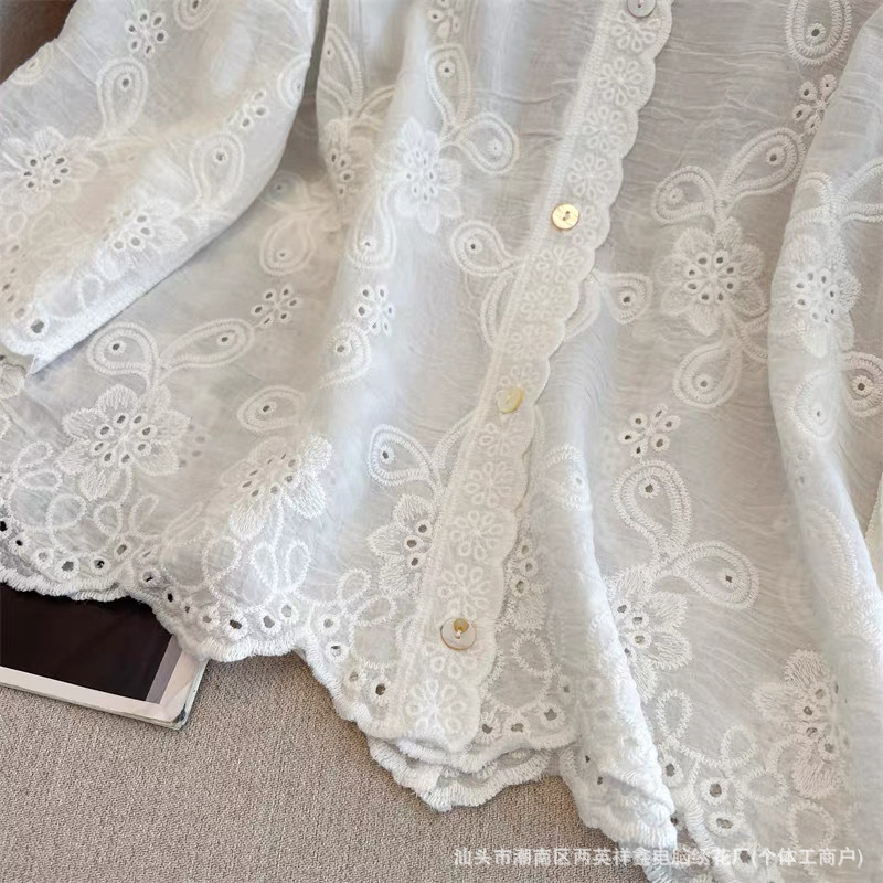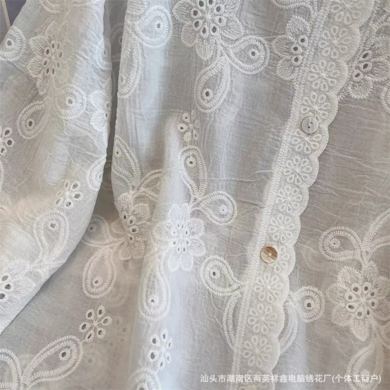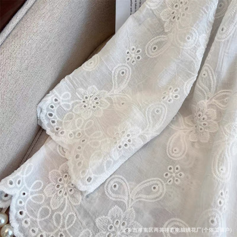 厂家生产直销,衣服因为是刺绣钩花成衣会有少许线头毛边,剪掉就好了,正所谓无线不成衣,介意者慎拍。面料100%棉 衣服尺码手工测量会有1-3CM误差,属于正常情况。 衣服衣长:58cm 袖长:38cm 胸围:54cm