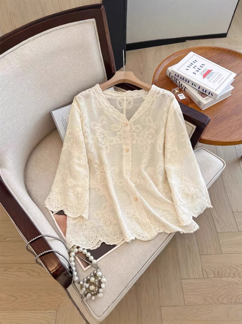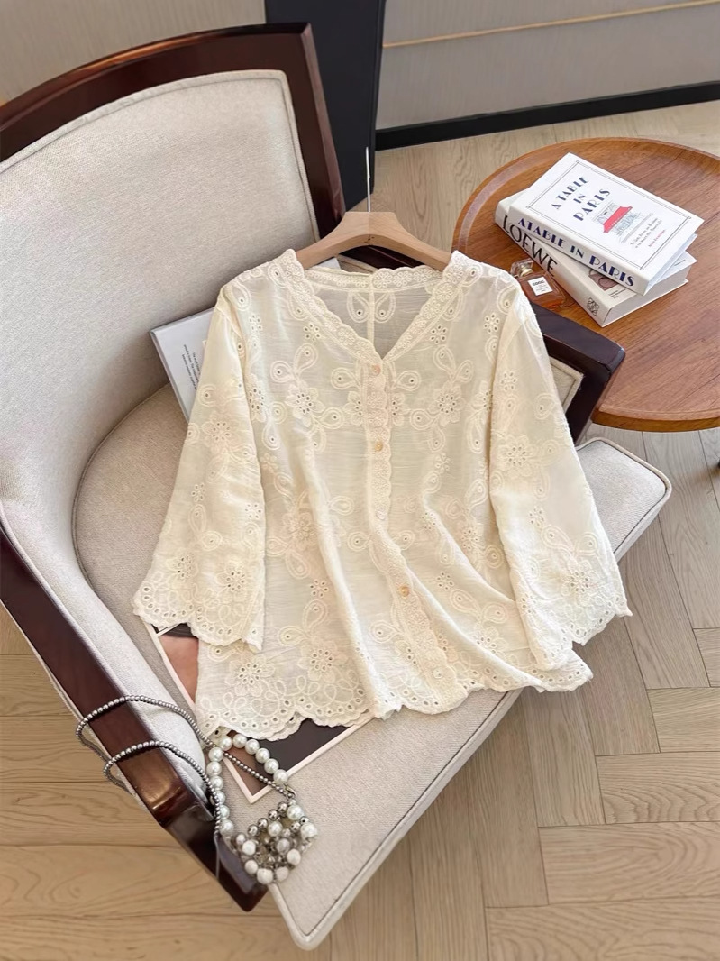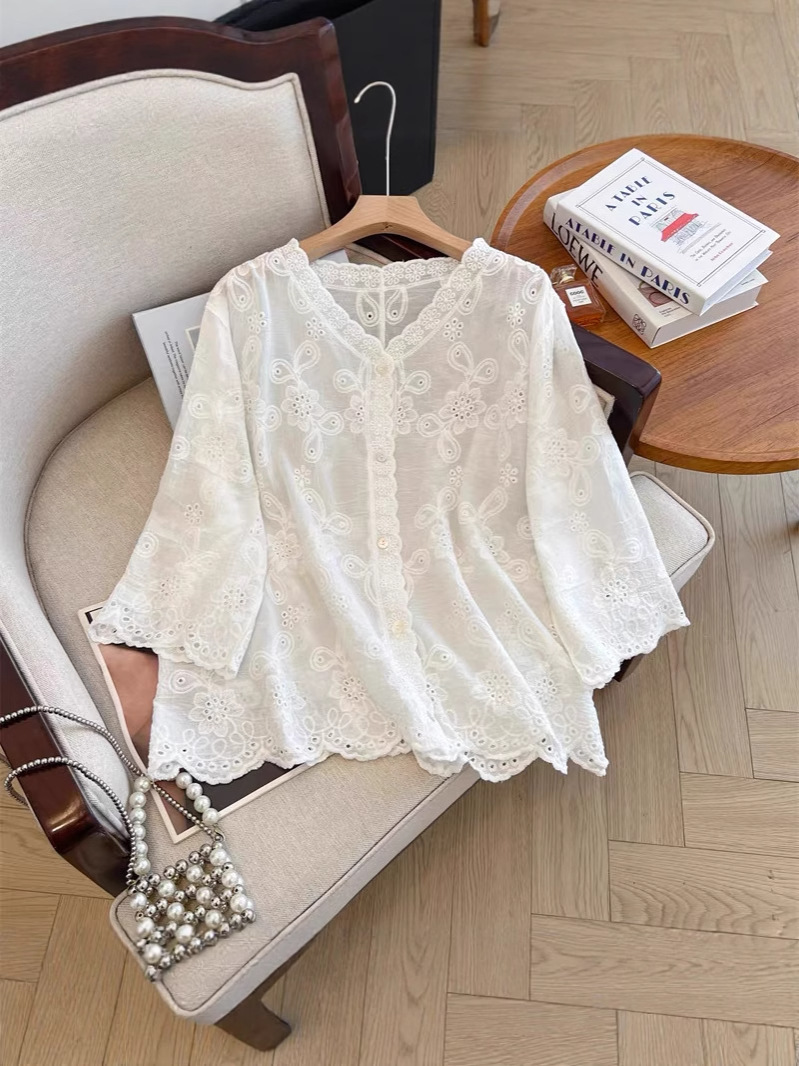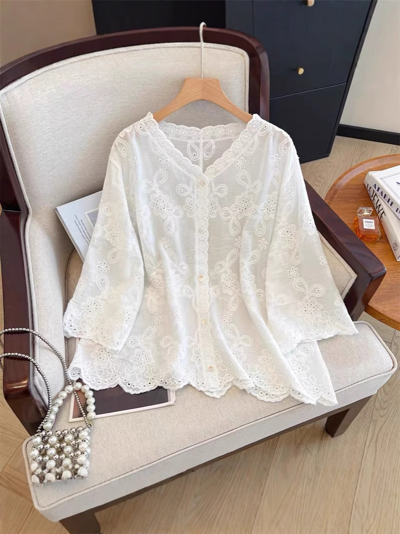 厂家生产直销,衣服因为是刺绣钩花成衣会有少许线头毛边,剪掉就好了,正所谓无线不成衣,介意者慎拍。面料100%棉 衣服尺码手工测量会有1-3CM误差,属于正常情况。 衣服衣长:58cm 袖长:38cm 胸围:54cm