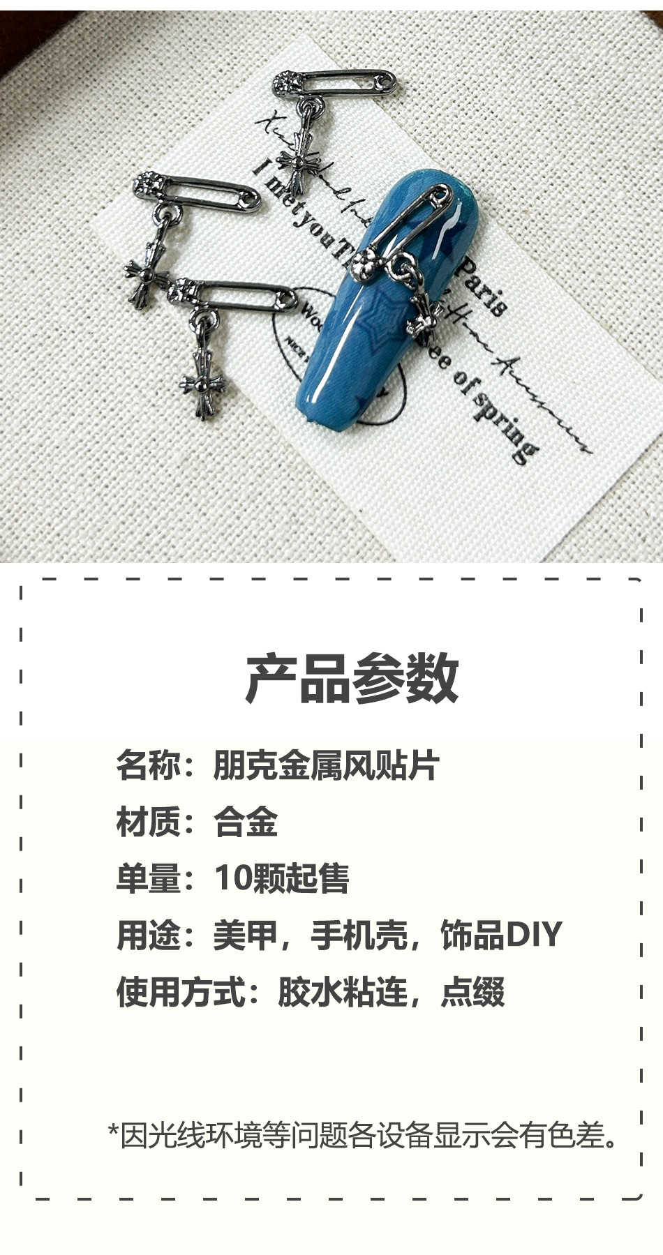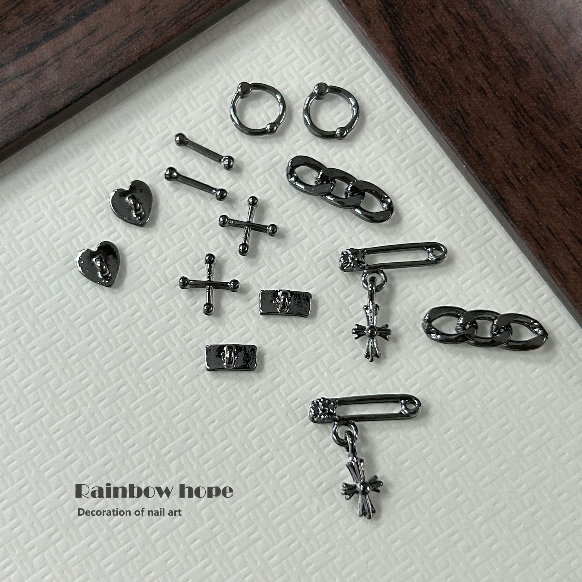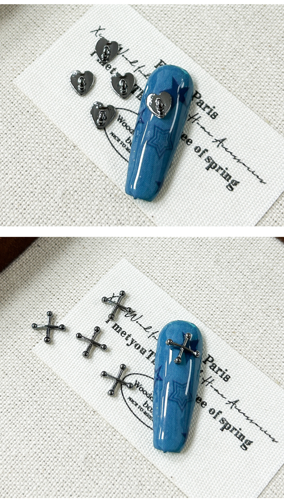 펑크 메탈 f 스타일 리벳 크로스 네일 아트 쥬얼리 총 블랙 합금 패치 입체 수제 웨어러블 네일