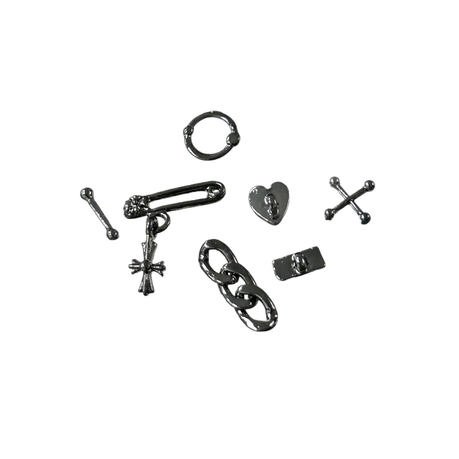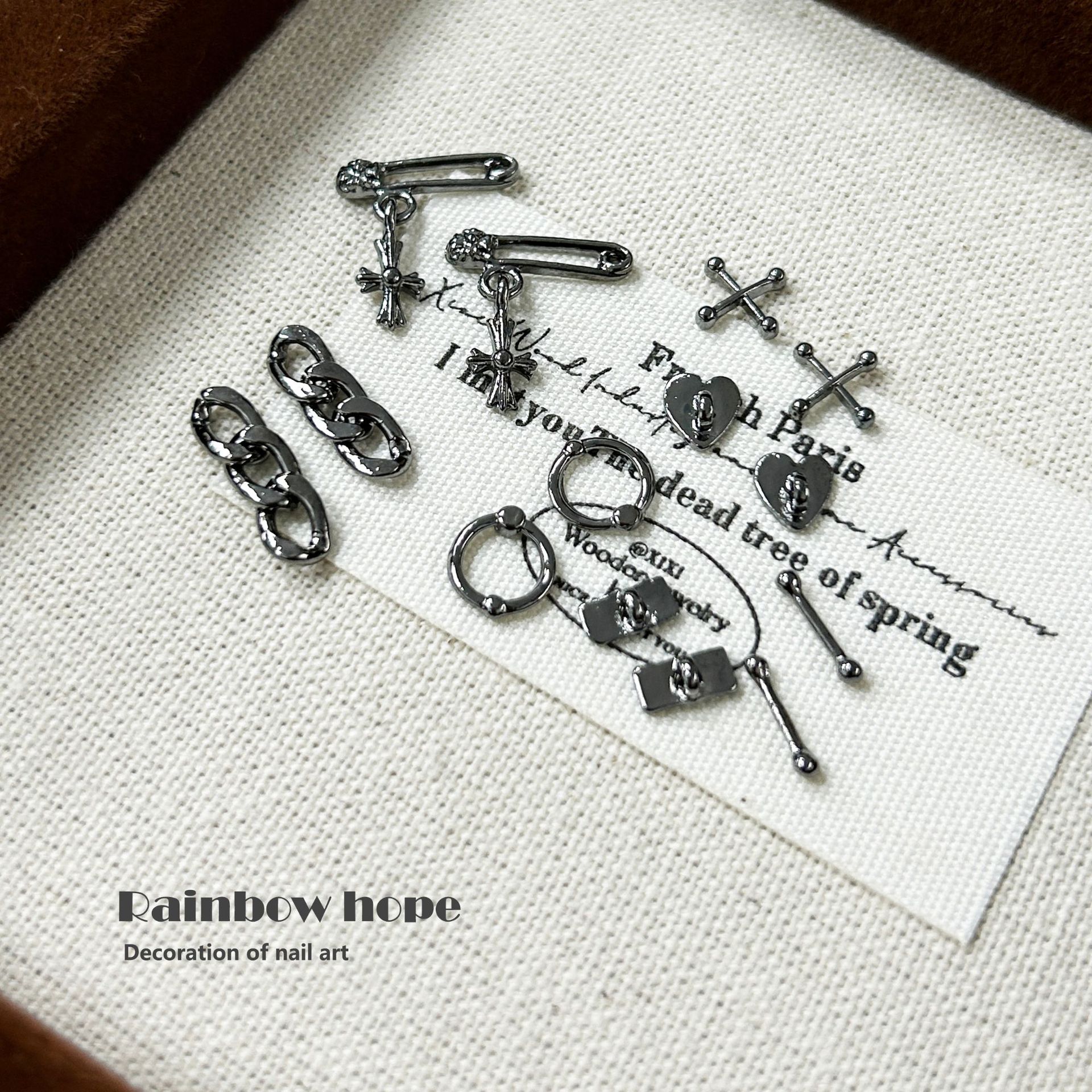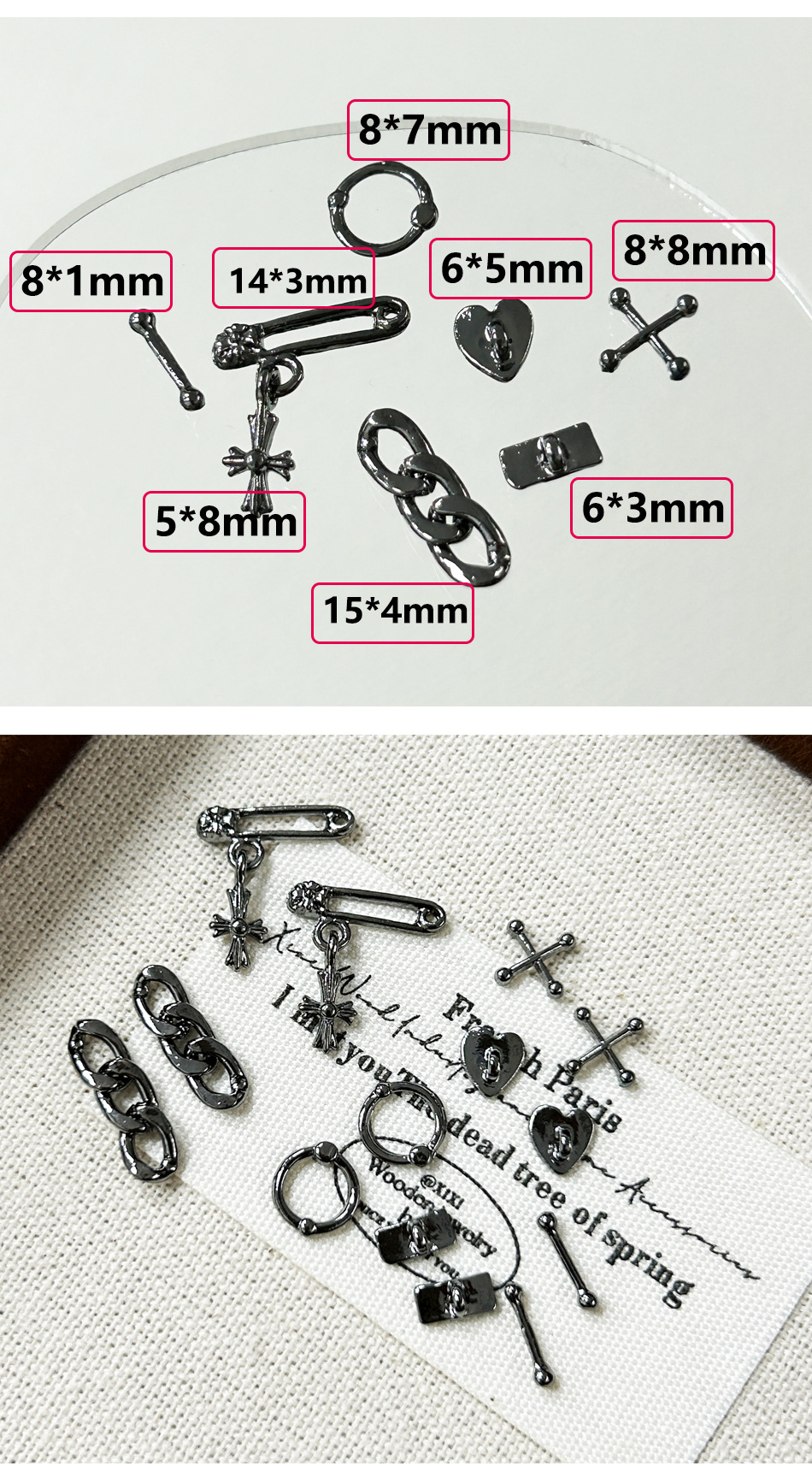 펑크 메탈 f 스타일 리벳 크로스 네일 아트 쥬얼리 총 블랙 합금 패치 입체 수제 웨어러블 네일