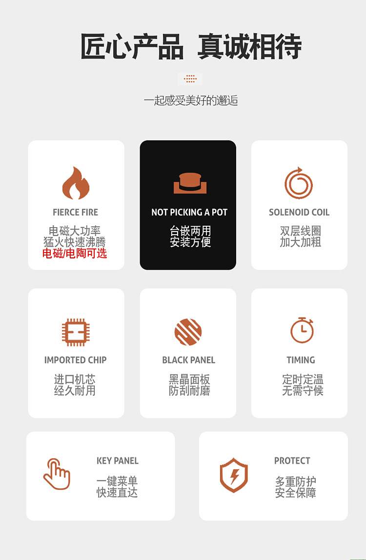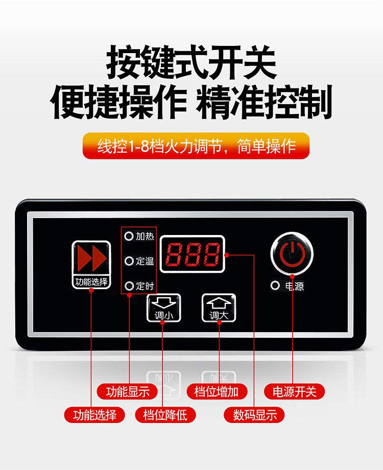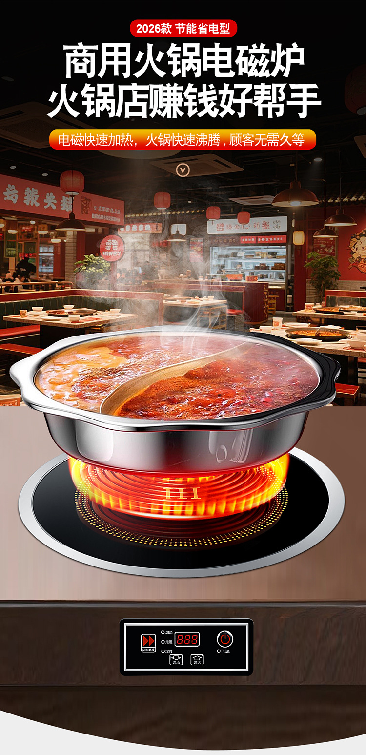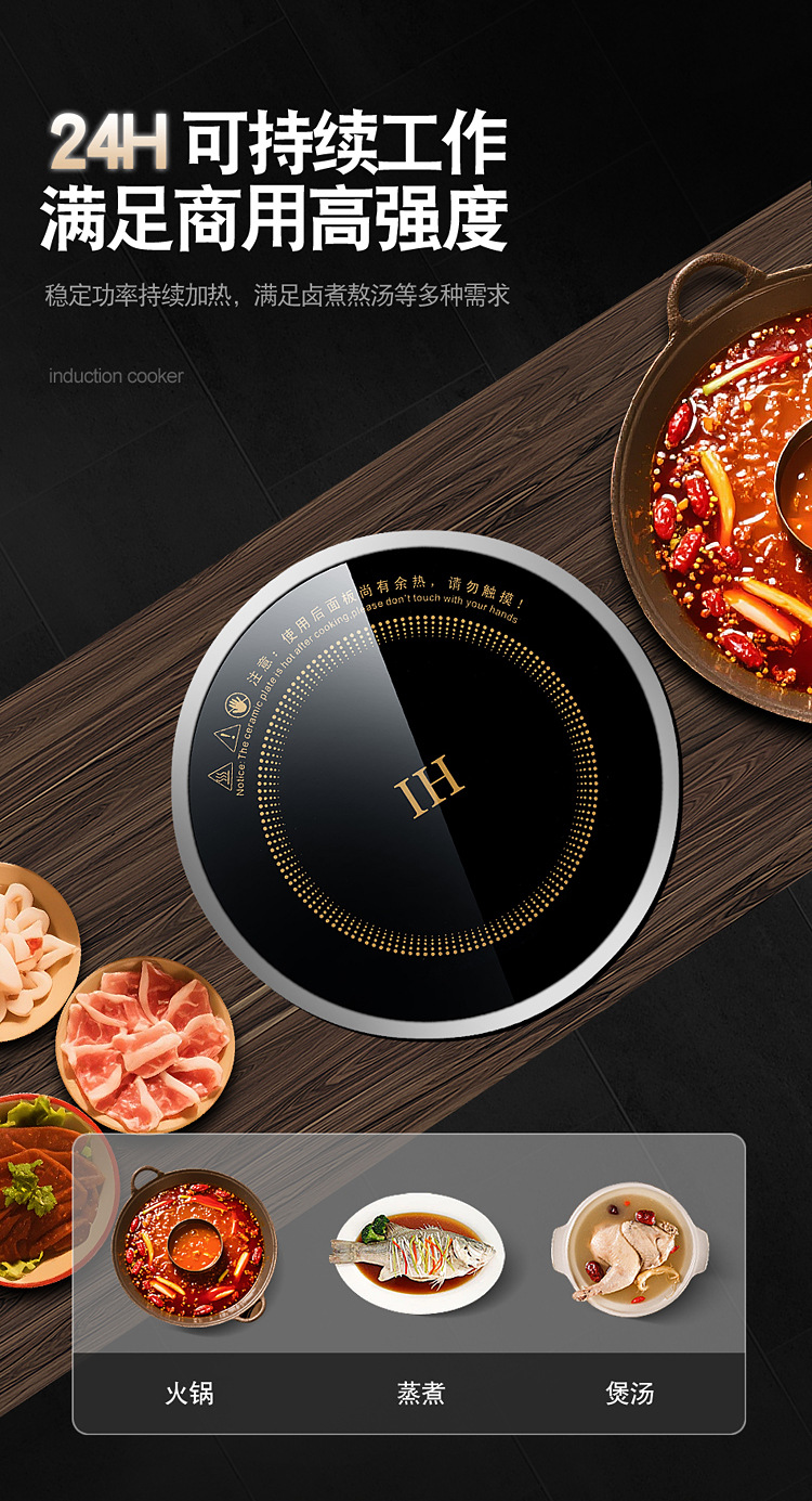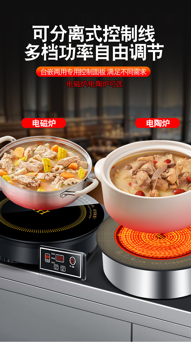 호텔 및 전골 레스토랑용 특수 내장형 와이어 제어 8단 개방형 인덕션 쿠커 상업용 3500W 고출력 타이밍 및 고온