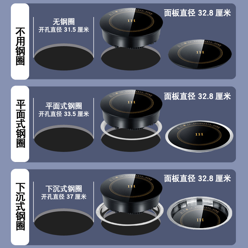 원형 288MM 인덕션 쿠커 + 유선 분할 키 스위치) + 가라앉은 강철 링 + 뚜껑