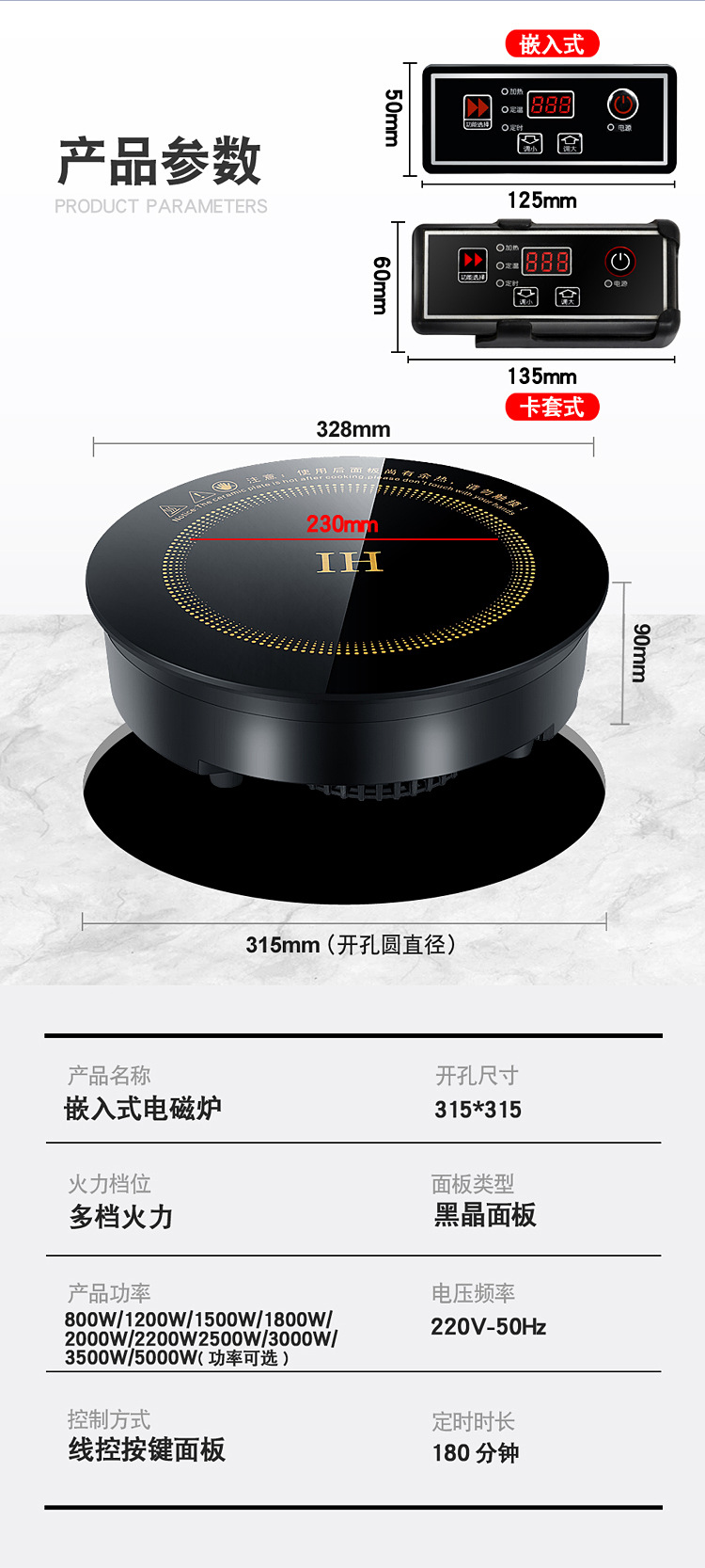 원형 195MM 인덕션 쿠커 + 표면 터치 스위치) 단일 오븐