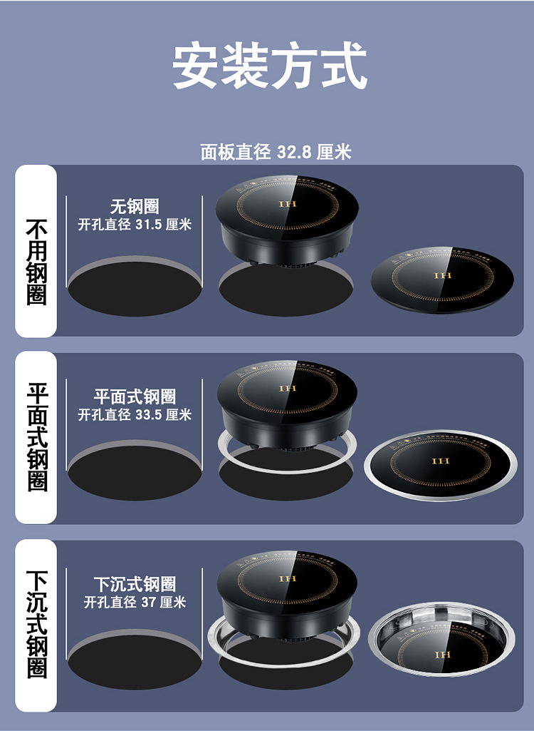 원형 328MM 인덕션 쿠커 + 유선 분할 버튼 스위치) + 가라앉은 강철 링 + 뚜껑