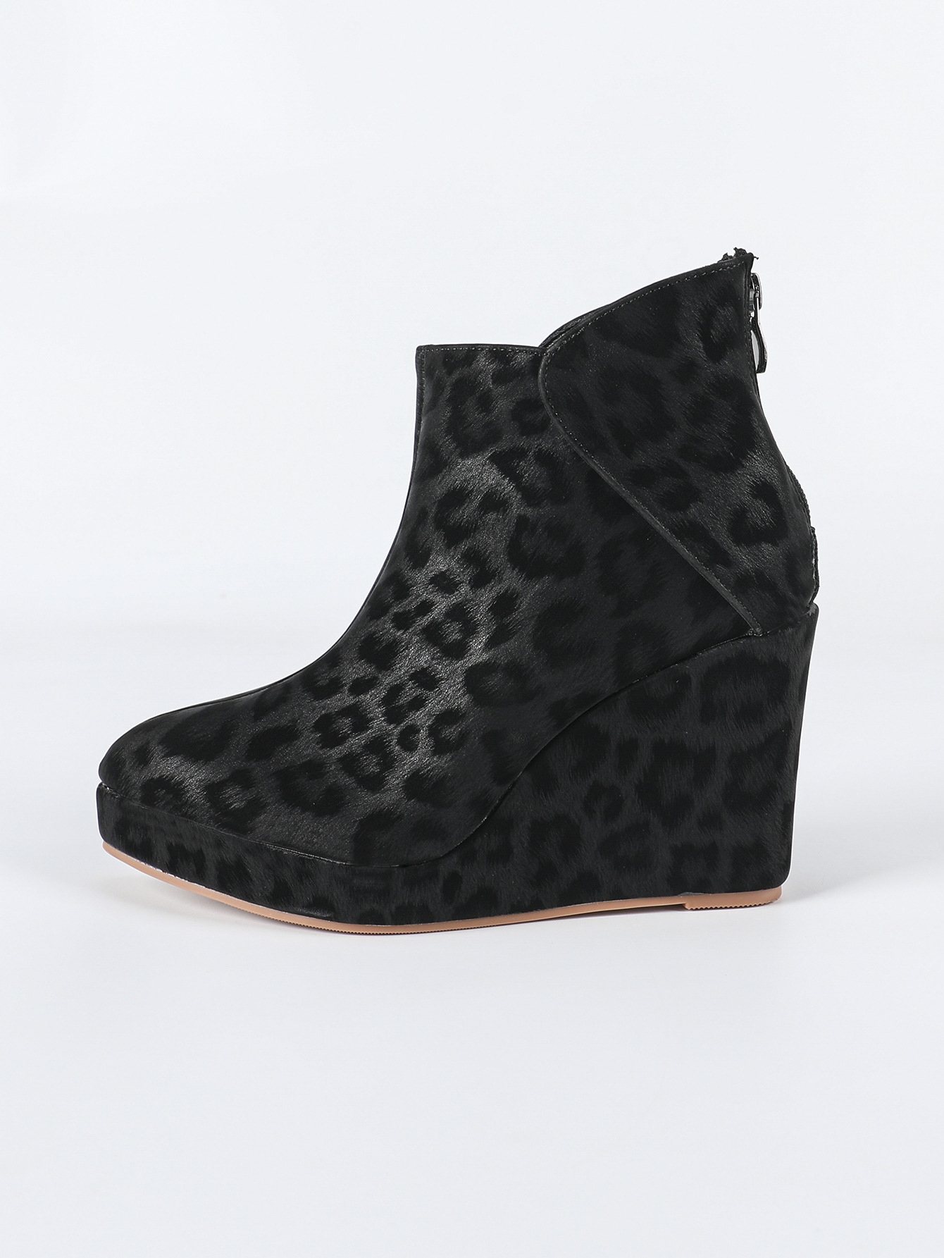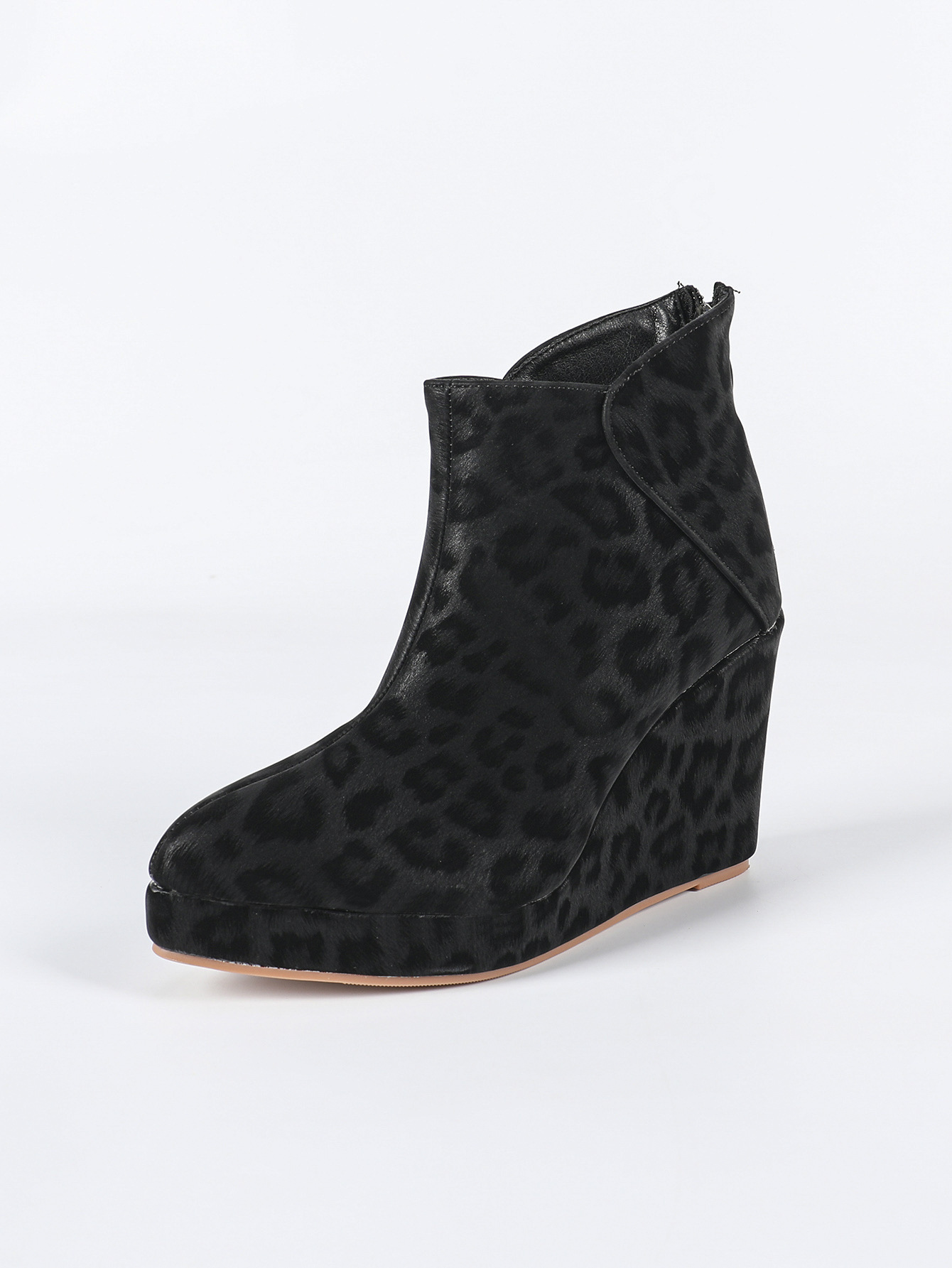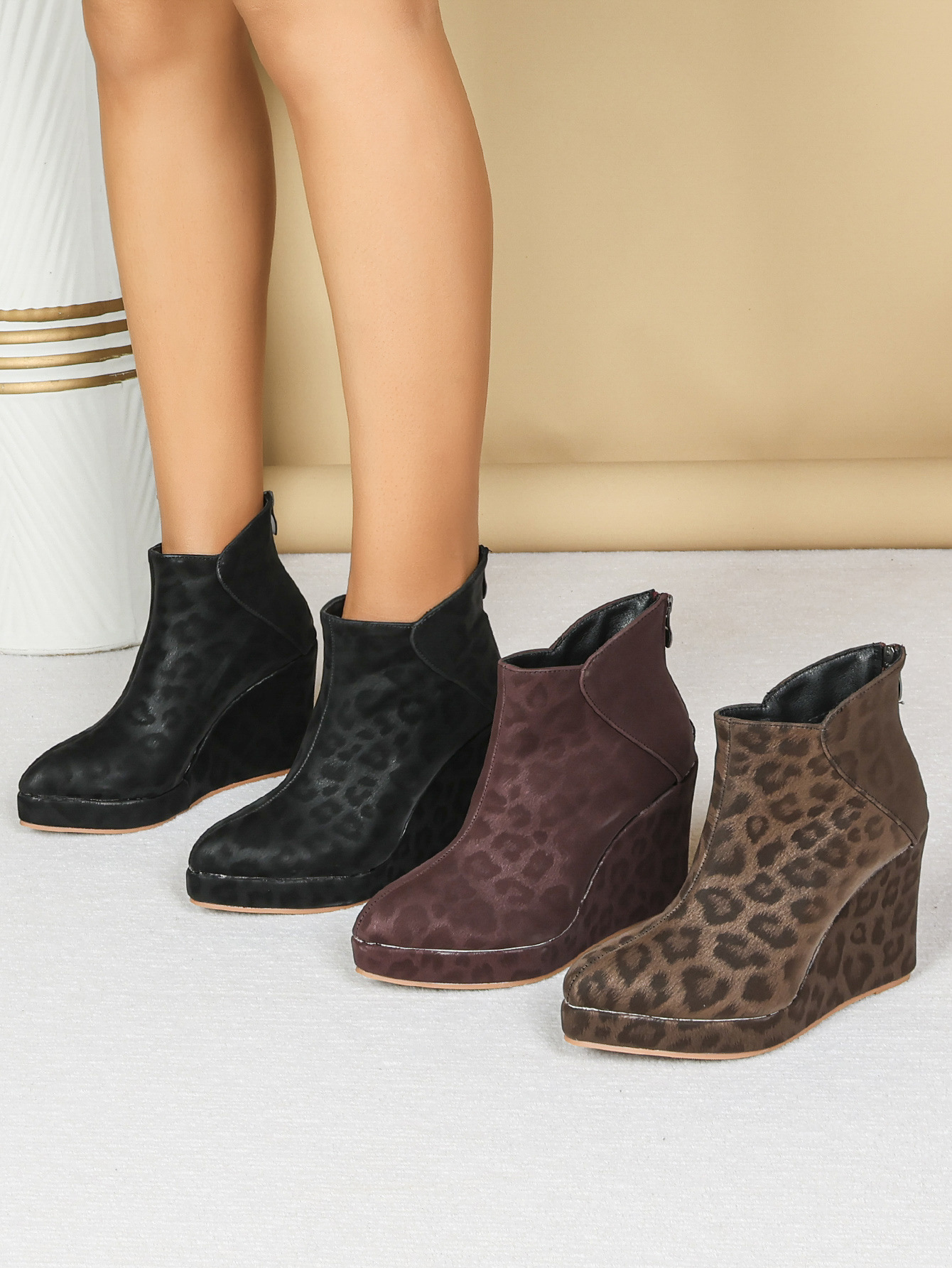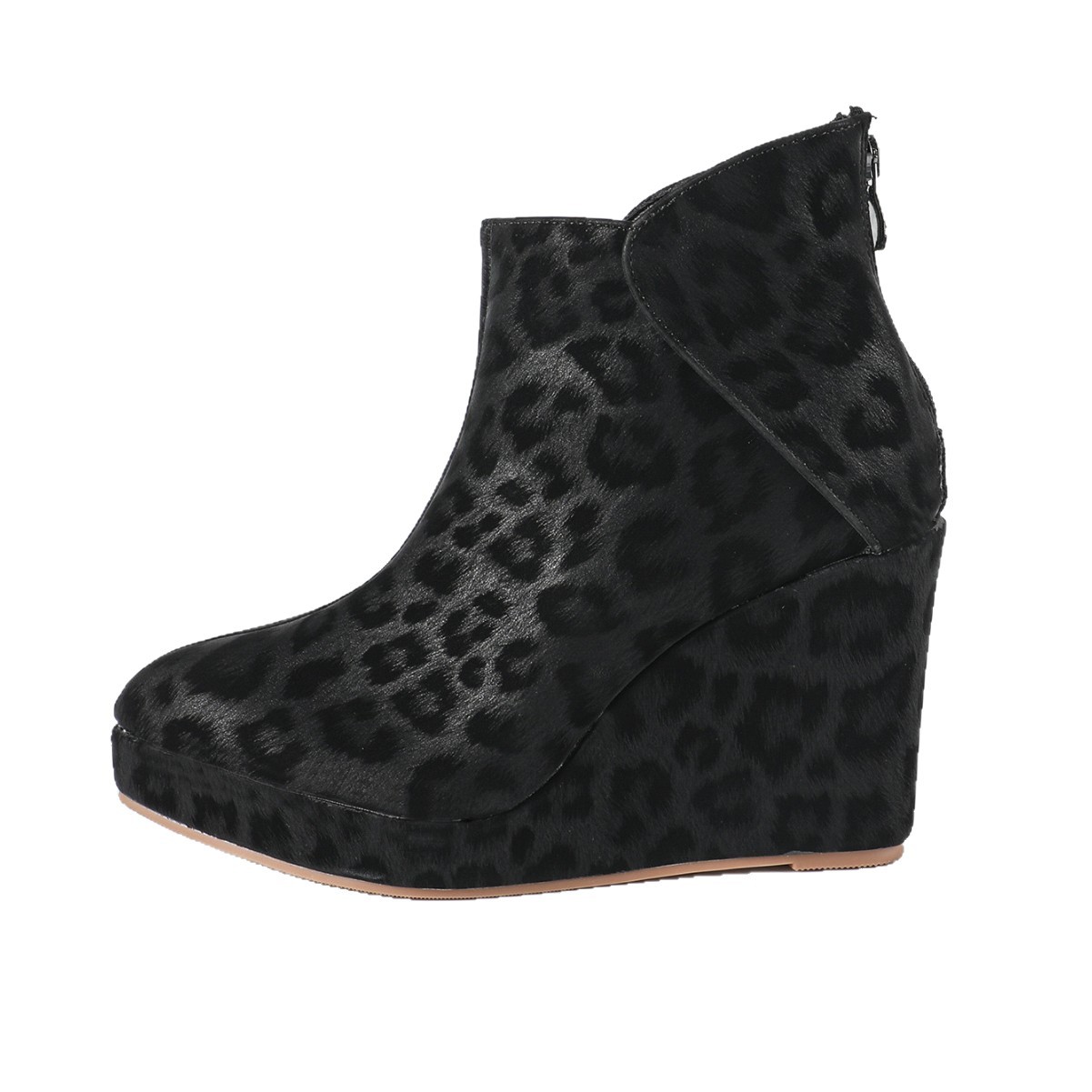 국경 간 유럽과 미국의 웨지 힐 두꺼운 밑창 대형 서양 패션 겨울 새로운 스타일 중간 굽 뒷 지퍼 여성 짧은 부츠 도매
