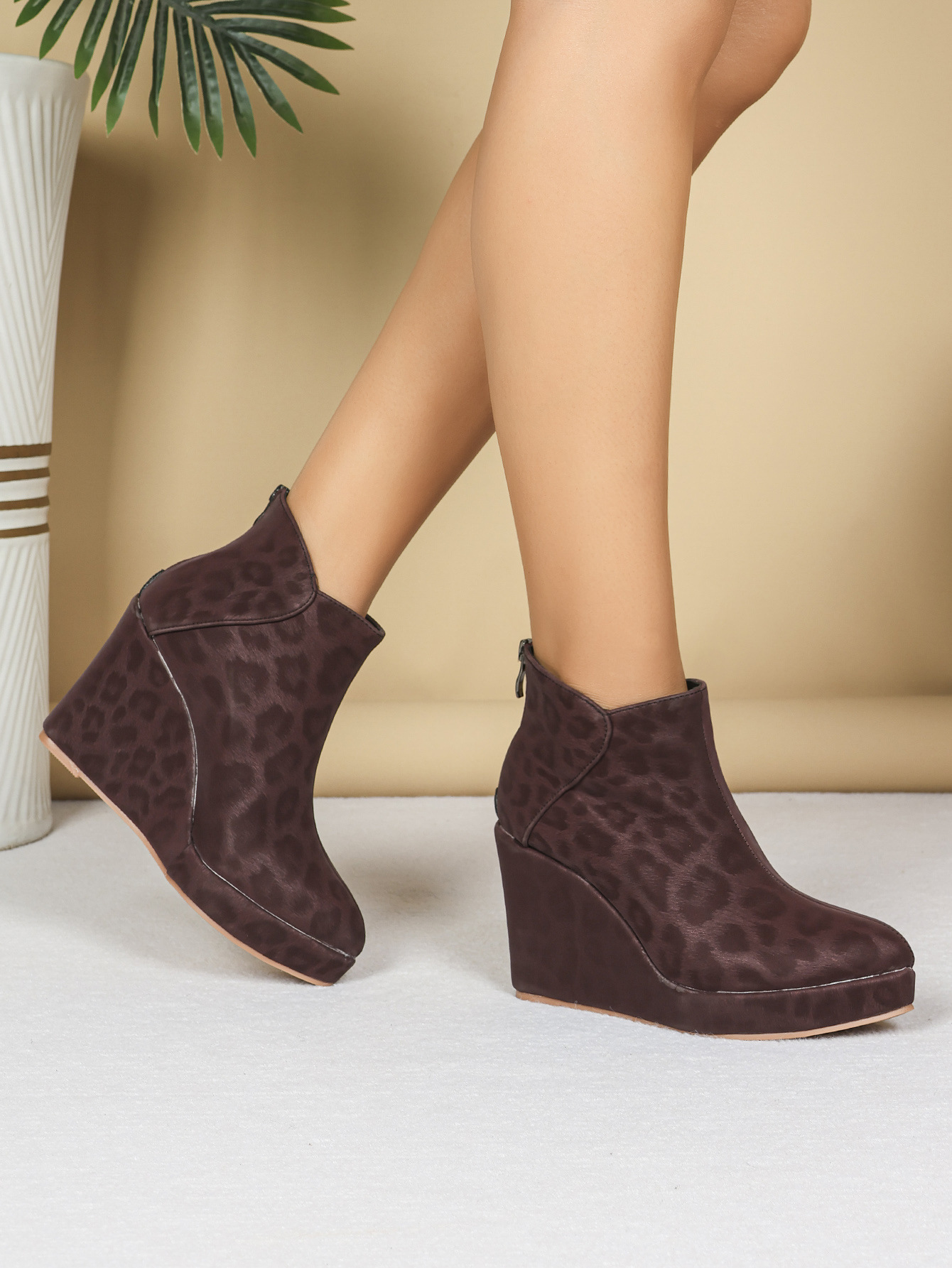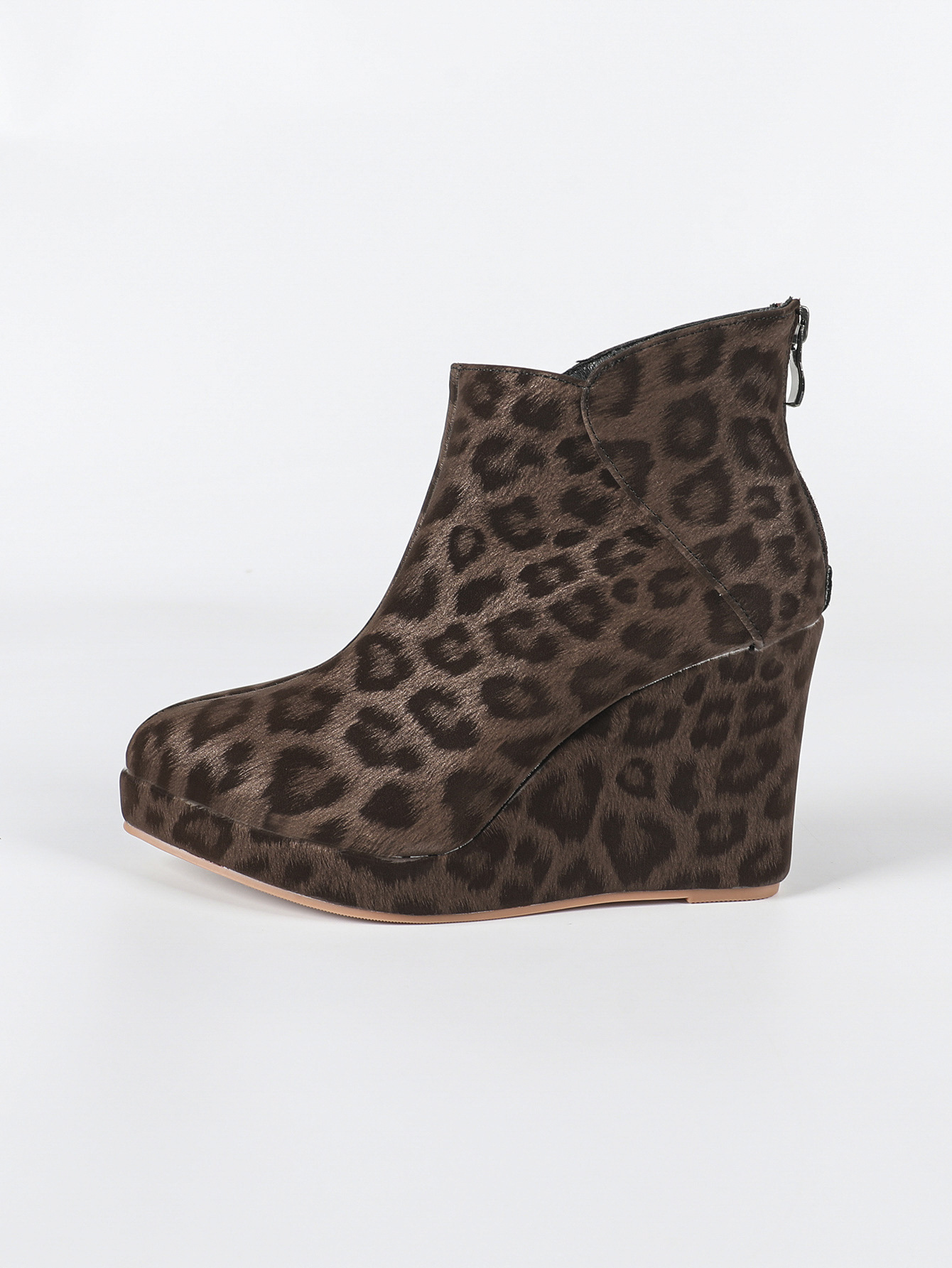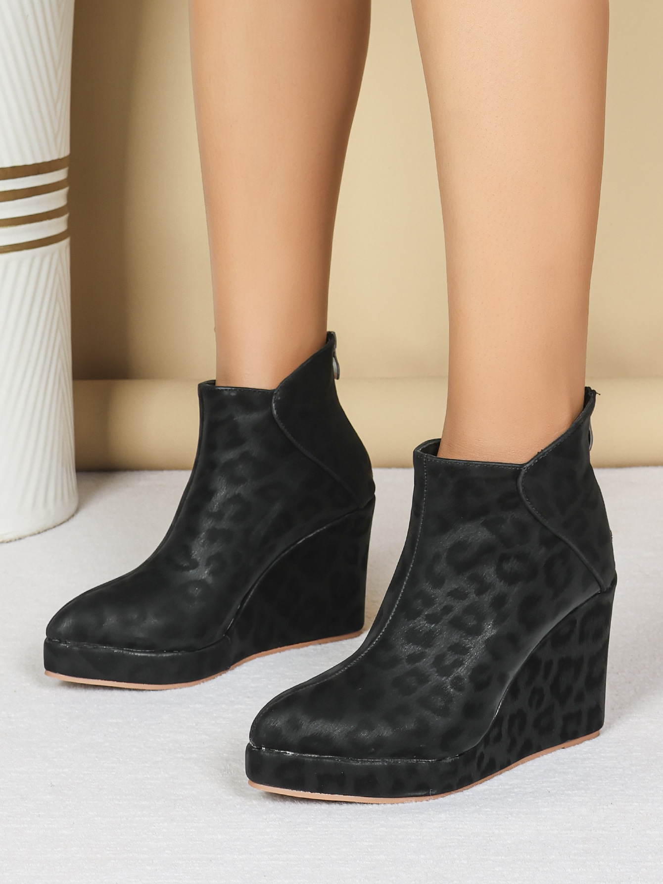 국경 간 유럽과 미국의 웨지 힐 두꺼운 밑창 대형 서양 패션 겨울 새로운 스타일 중간 굽 뒷 지퍼 여성 짧은 부츠 도매