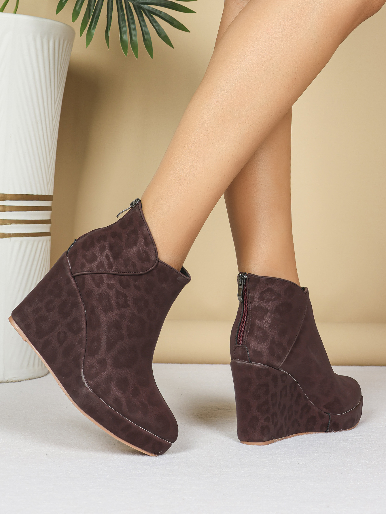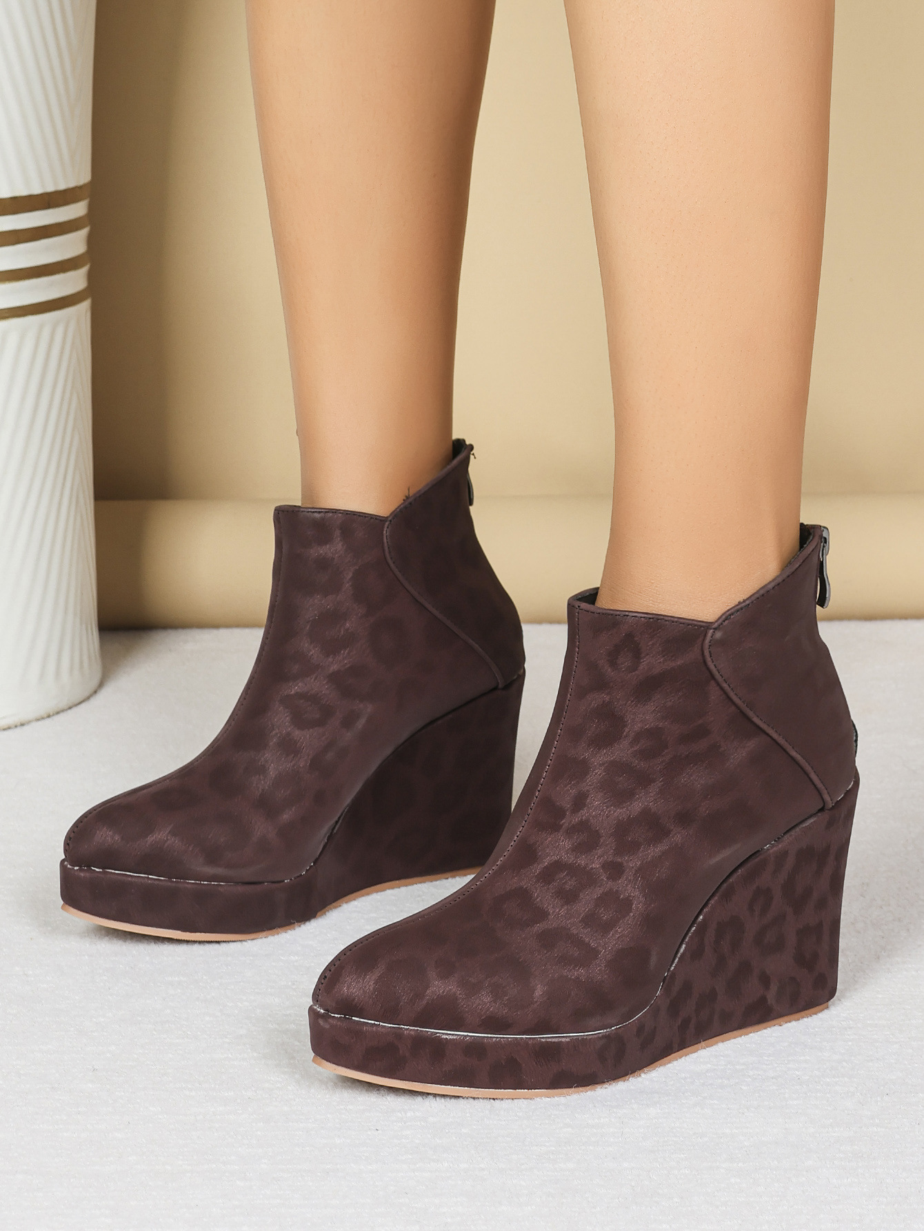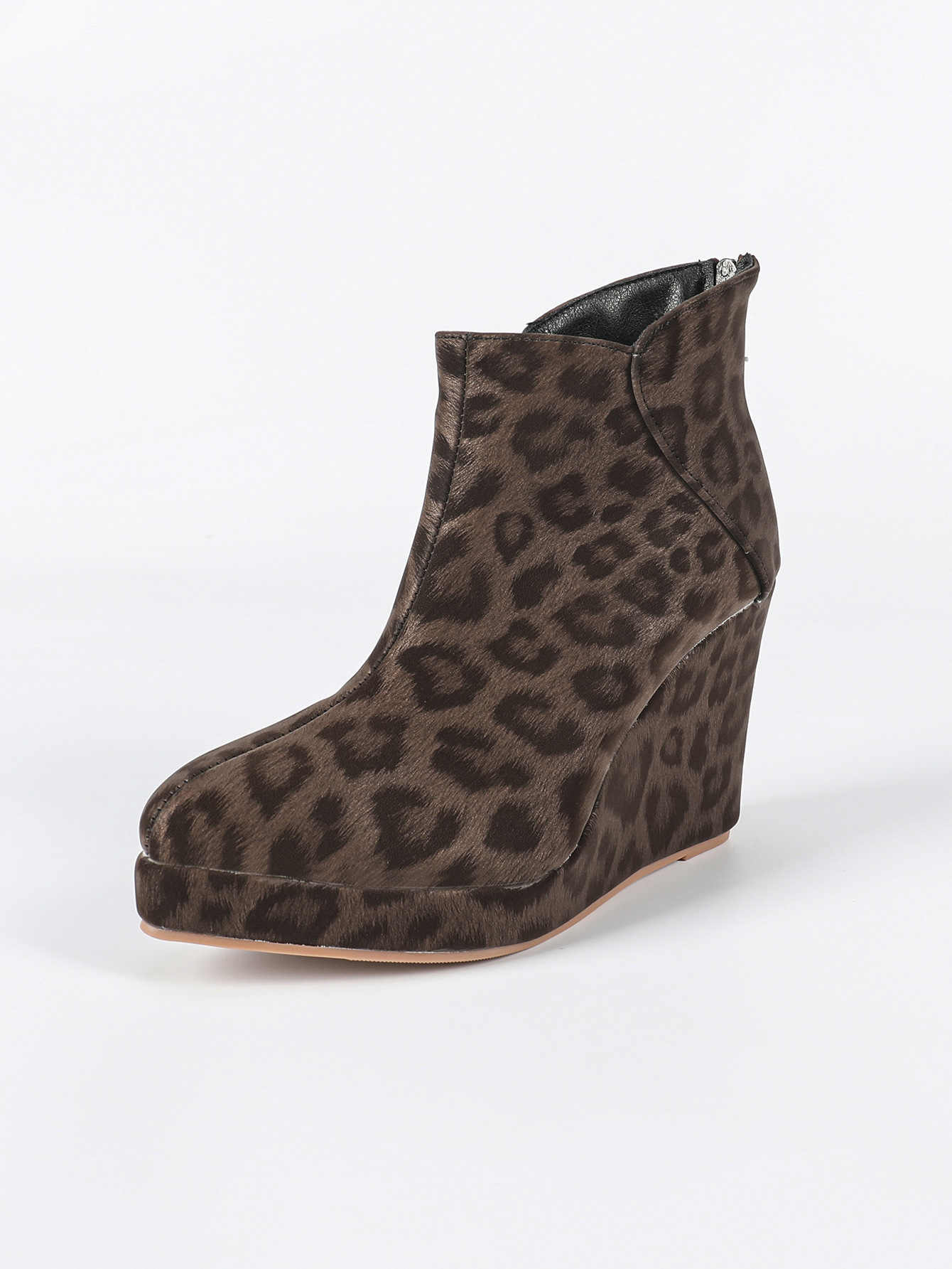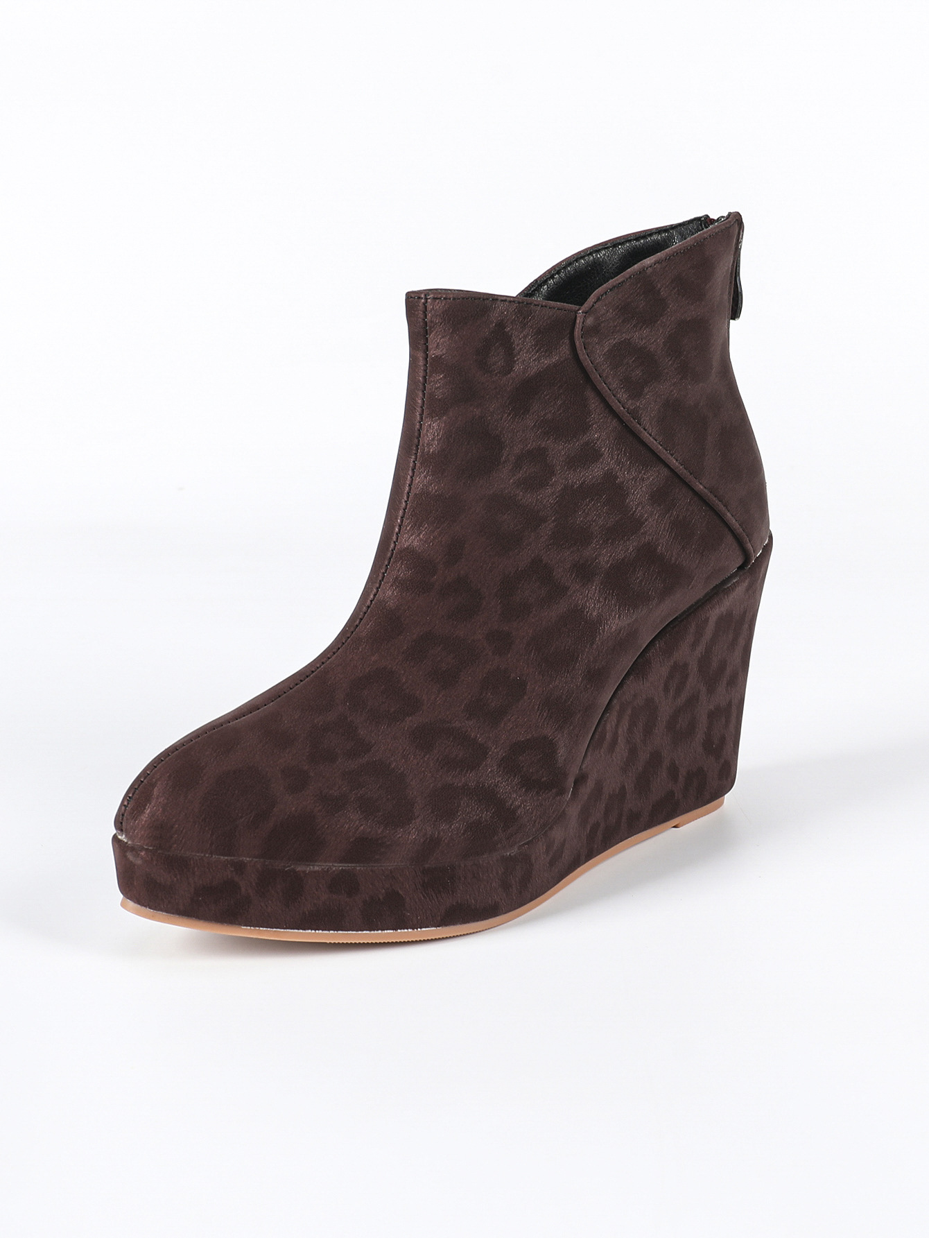 국경 간 유럽과 미국의 웨지 힐 두꺼운 밑창 대형 서양 패션 겨울 새로운 스타일 중간 굽 뒷 지퍼 여성 짧은 부츠 도매
