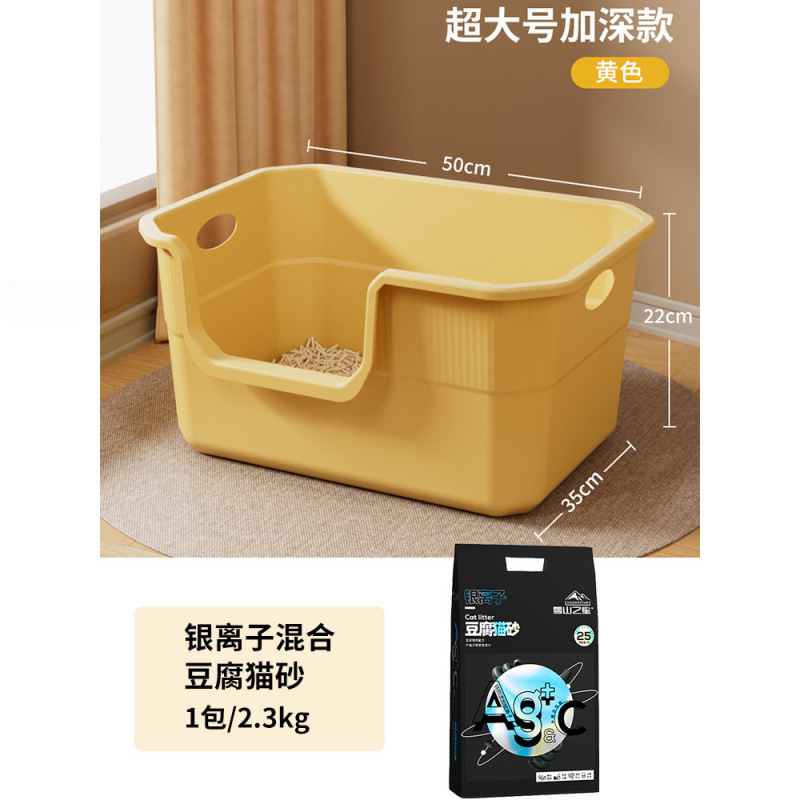[고양이 모래 세트] 노란색 대형 욕조 고양이 화장실 50CM + 혼합 두부 고양이 모래 1 봉지☆⚑