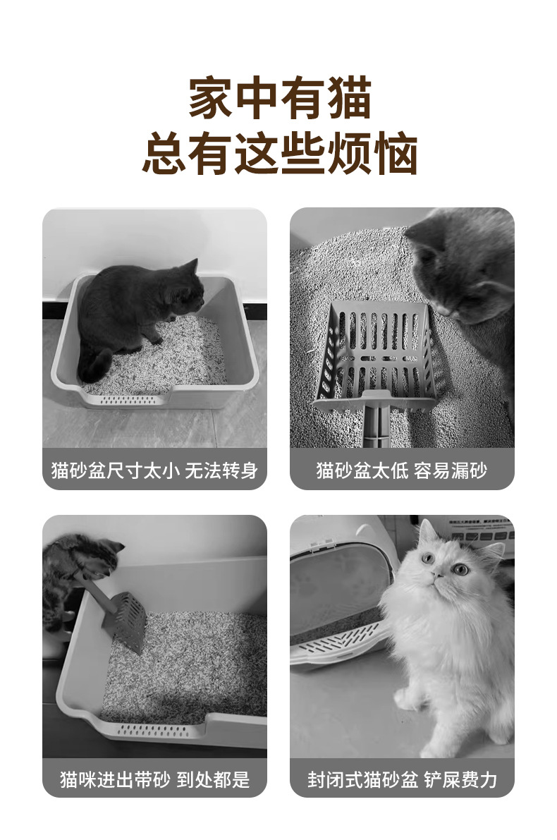 50CM 회색 대형 고양이 배변 상자 + 고양이 배변 매트(고양이 배변 삽 포함)☆⚑
