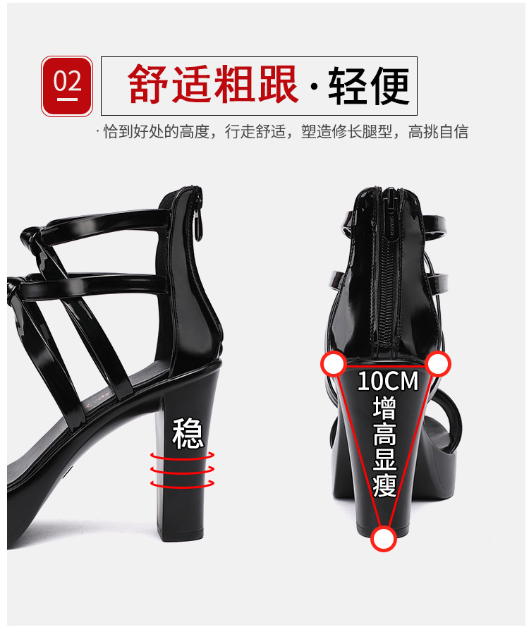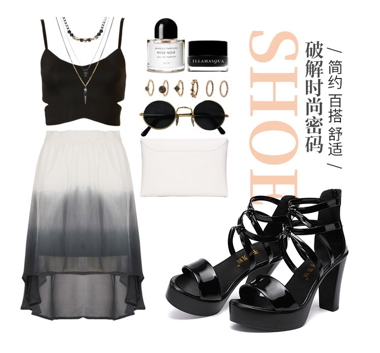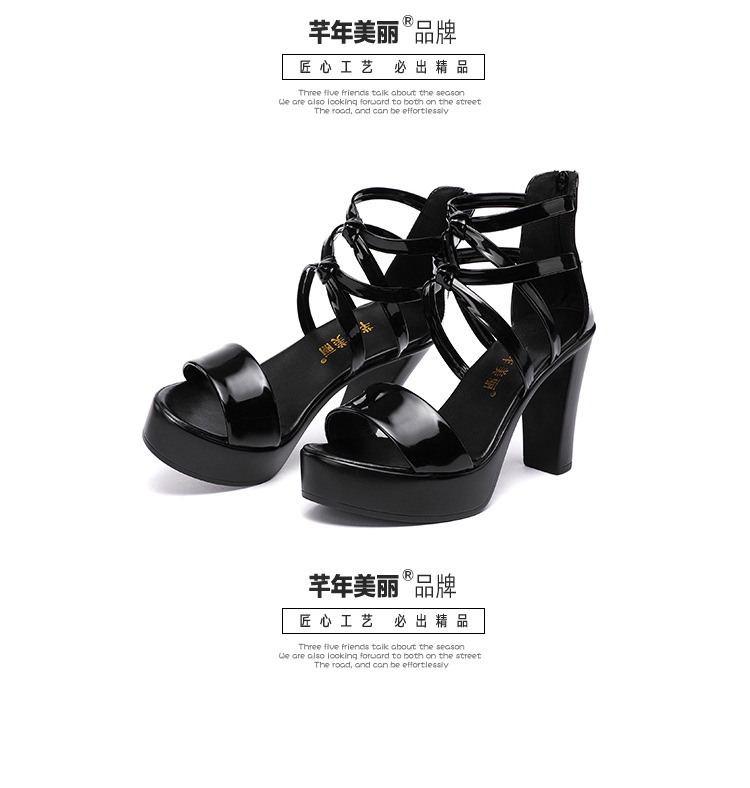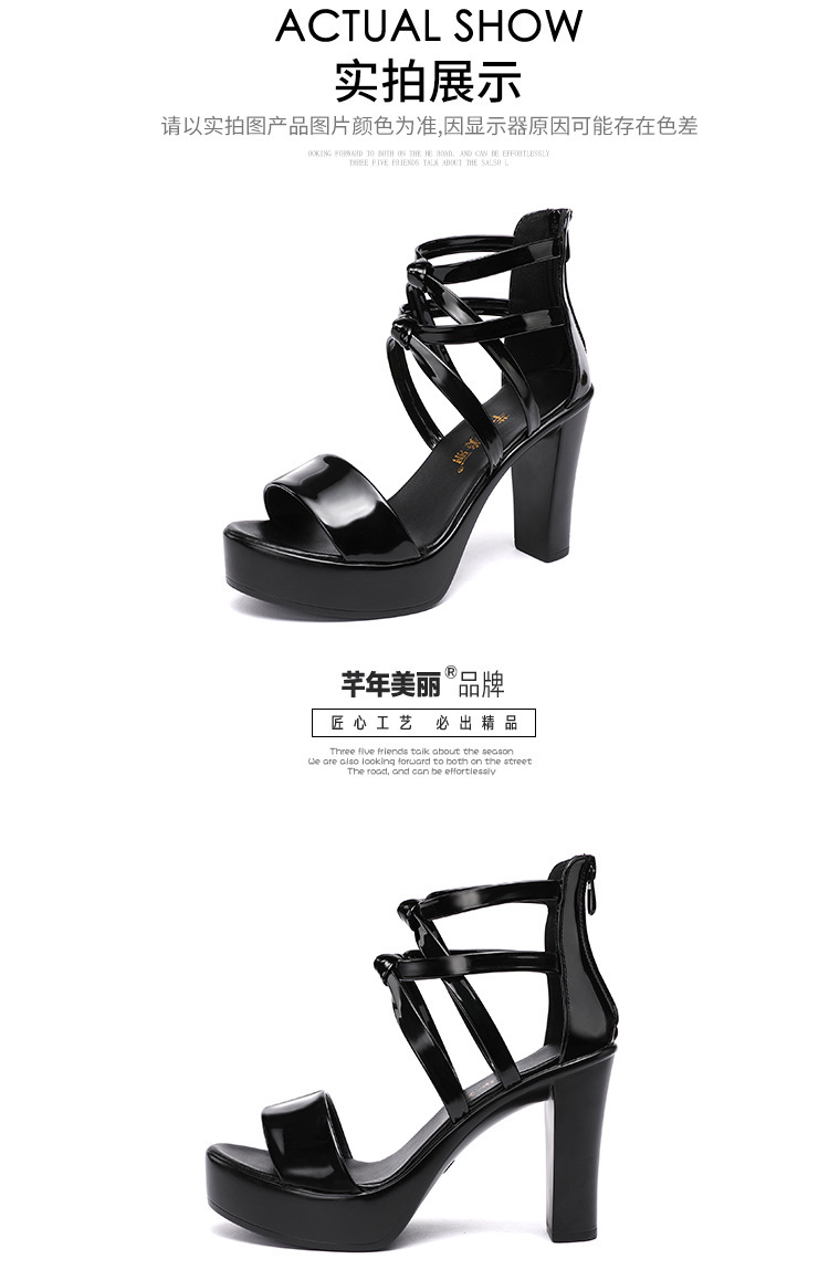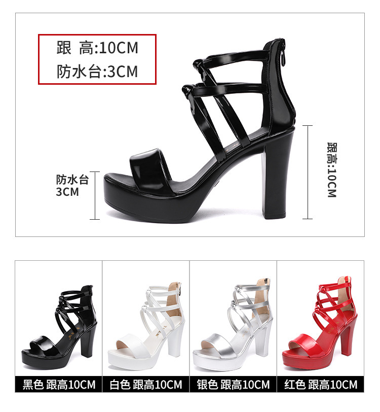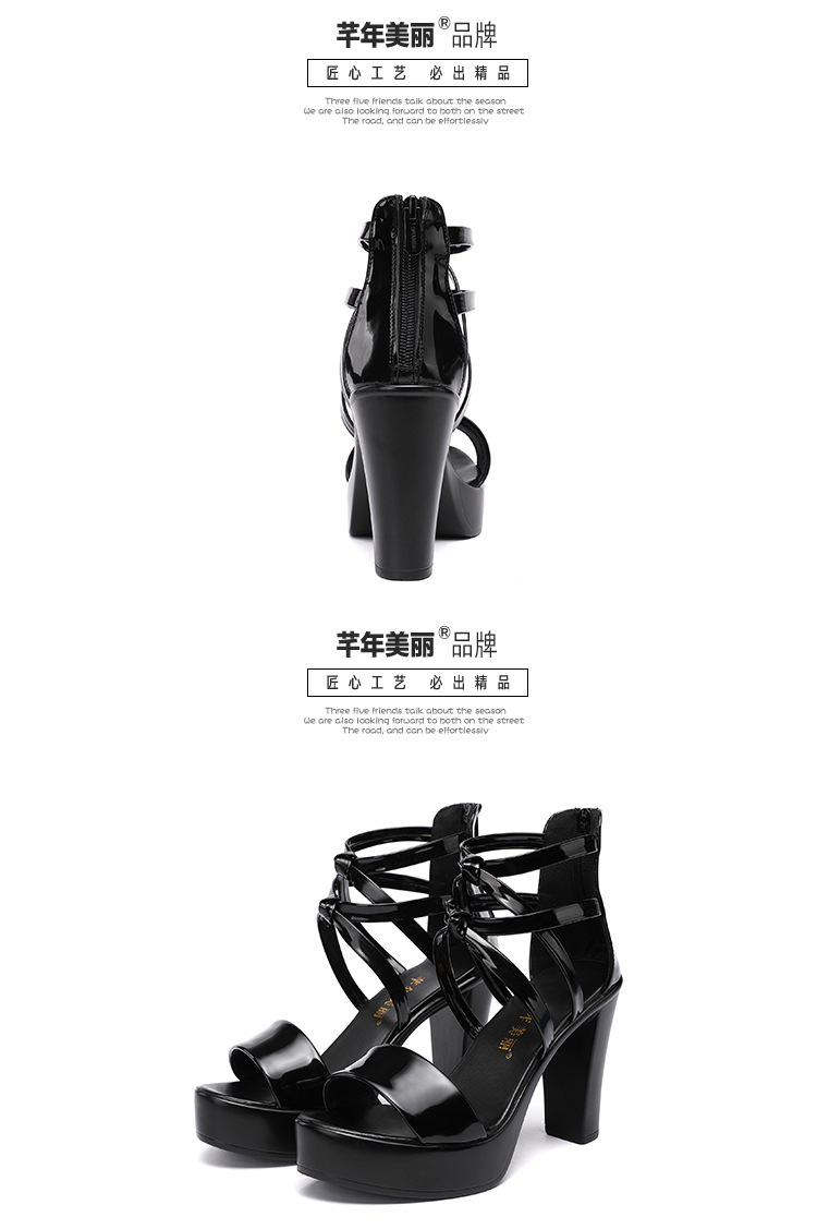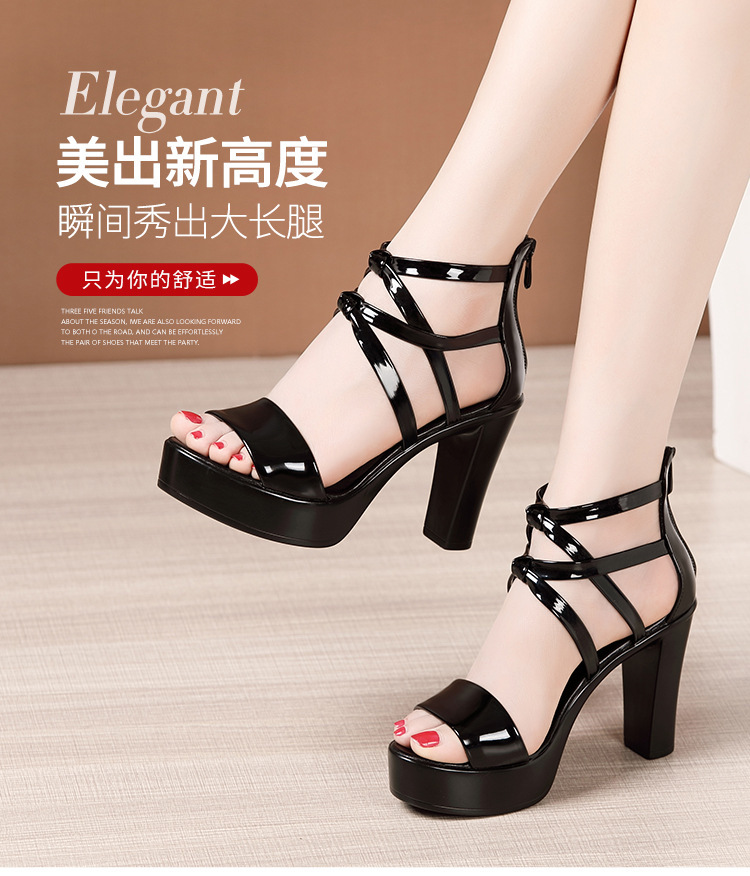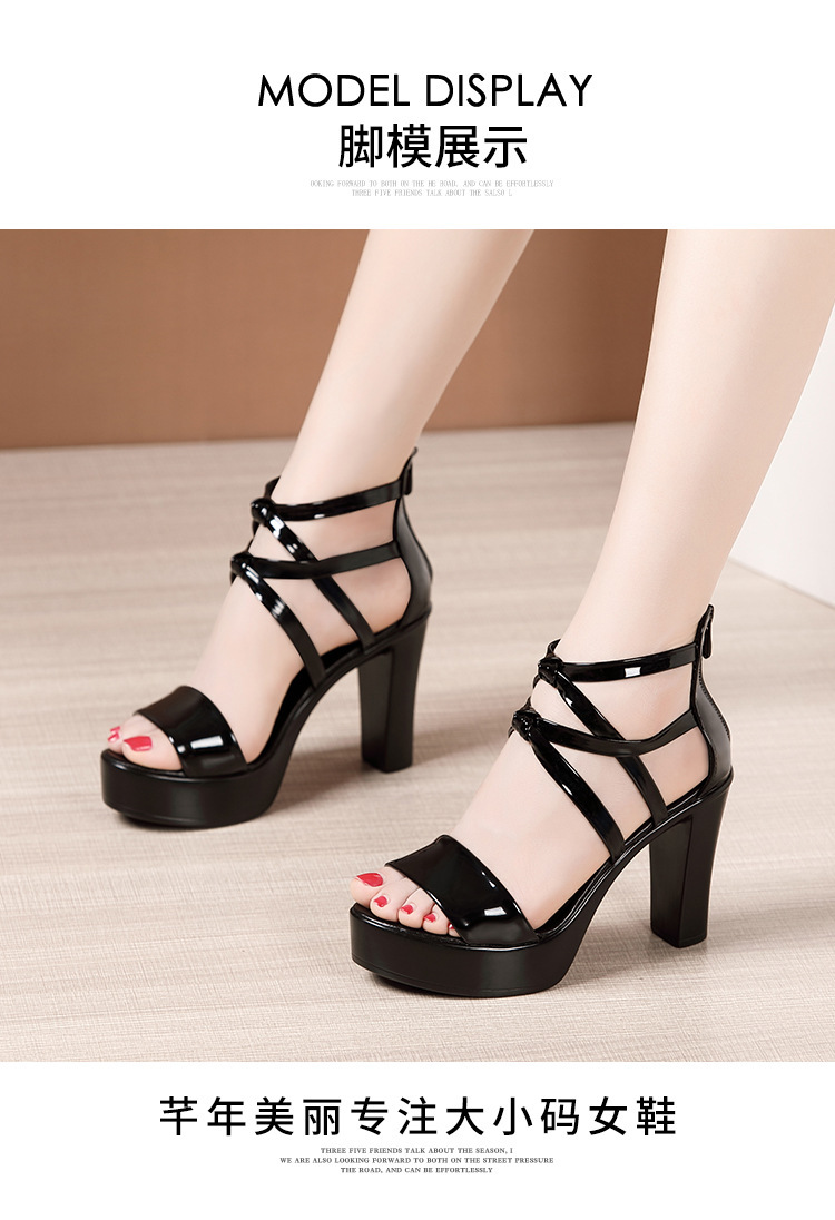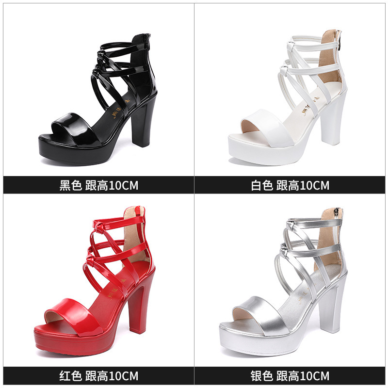 여성을위한 특허 가죽 로마 샌들 여름 두꺼운 밑창 방수 플랫폼 오픈 발가락 섹시한 크로스 스트랩 나이트 클럽 10CM 슈퍼 하이힐
