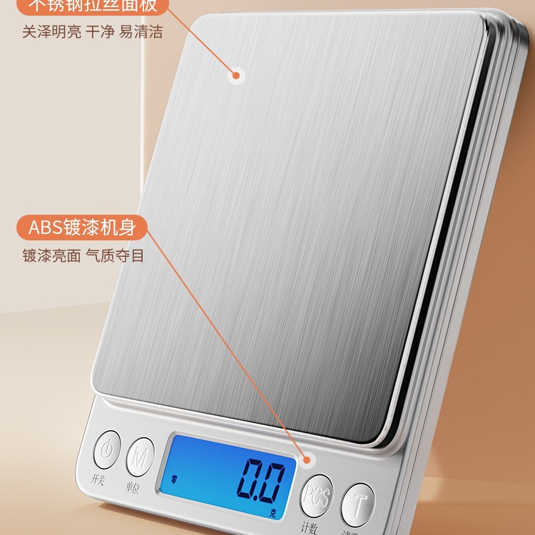 고급 배터리 모델 500g/0.01g 스케일 볼 + 더블 트레이 + 방수 스티커 8가지 고급 선물 ⚑