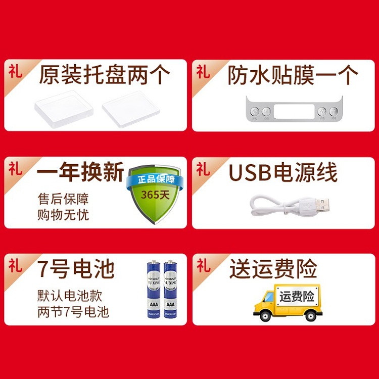 배터리 모델 2kg/0.1g에는 듀얼 트레이 + 배터리 + 방수 스티커 등 7가지 선물이 함께 제공됩니다.⚑