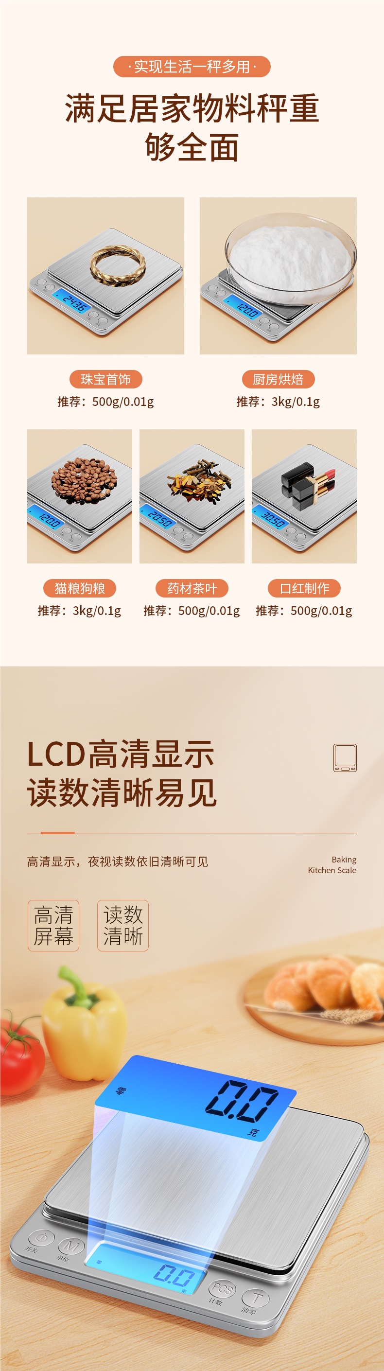 **인기 추천! 충전식 3kg/0.1g, 더블 트레이 + 충전 케이블 + 방수 스티커 등 7가지 특별 선물 증정! ⚑**