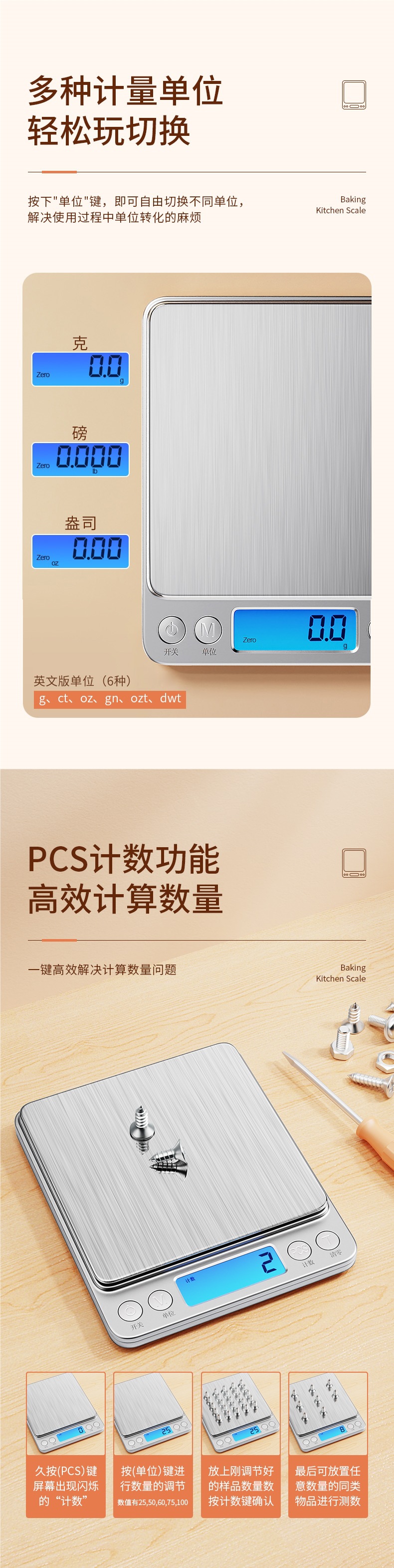 충전식 모델 500g/0.01g에는 듀얼 트레이 + 충전 케이블 + 방수 스티커 등 7가지 선물이 함께 제공됩니다..⚑