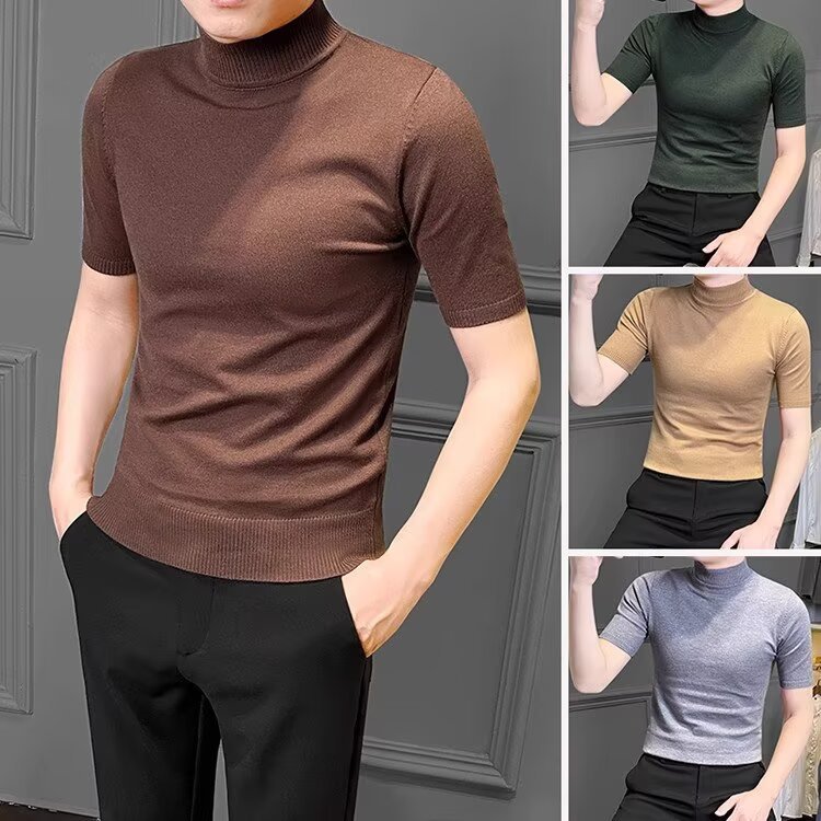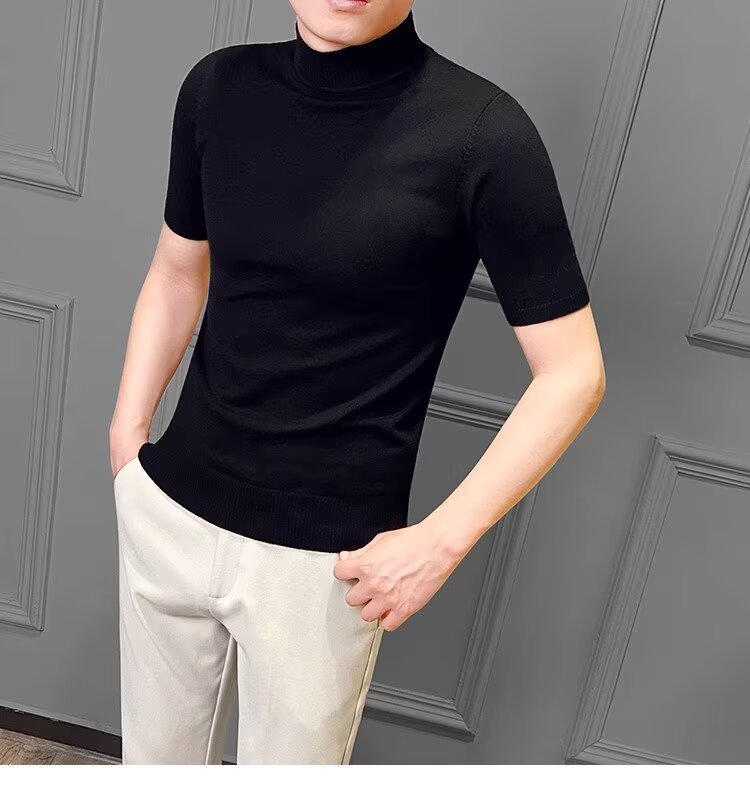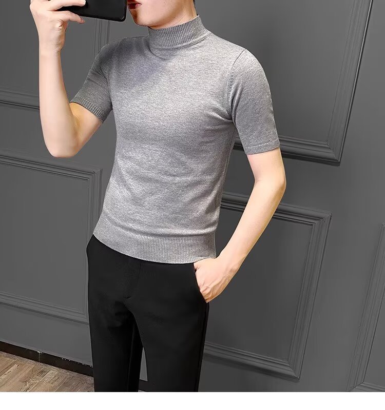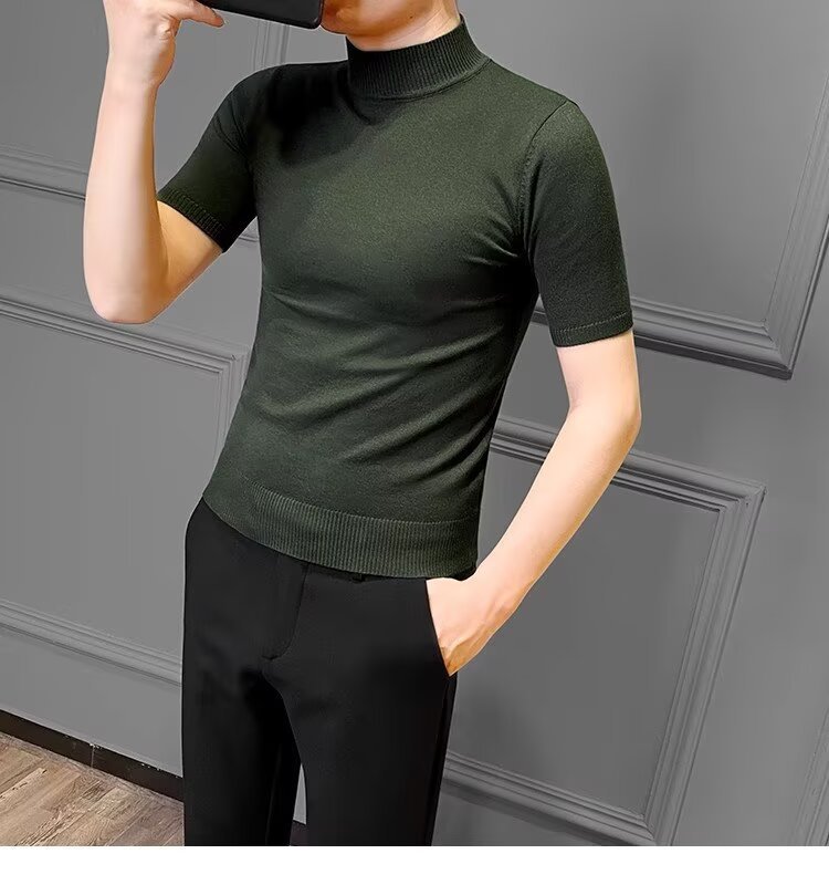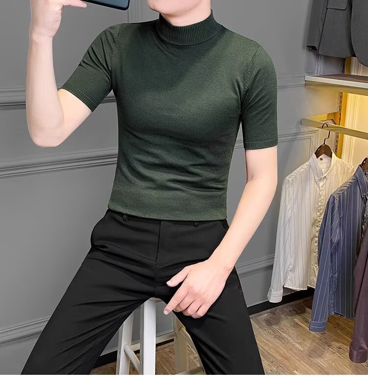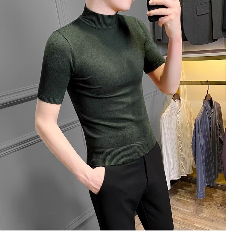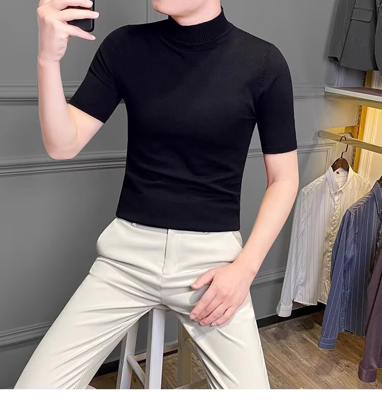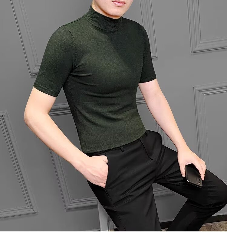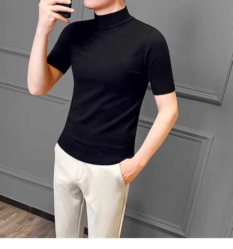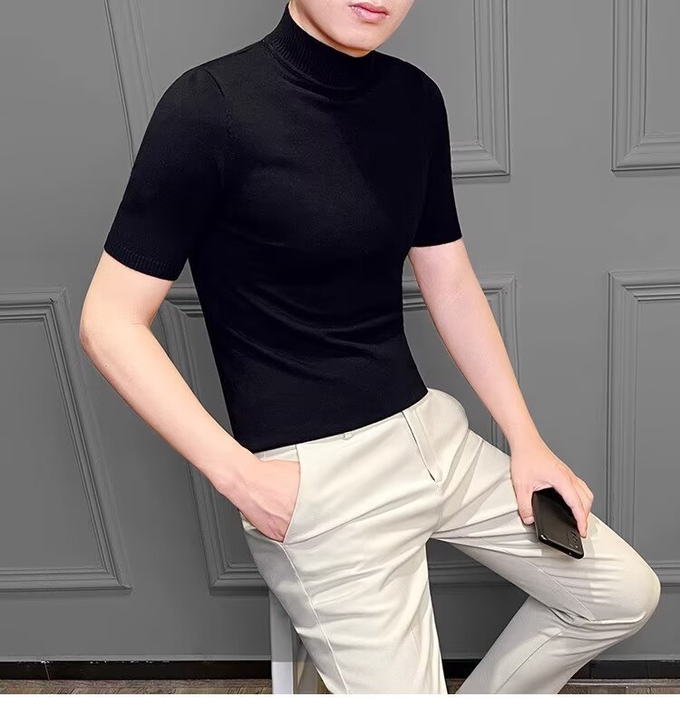 남성용 니트 슬림 반팔 티셔츠 신상 하프 터틀넥 이너 봄 여름 타이트 스트레치 캐주얼 탑 베이스 레이어