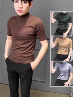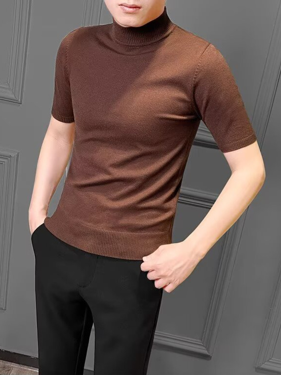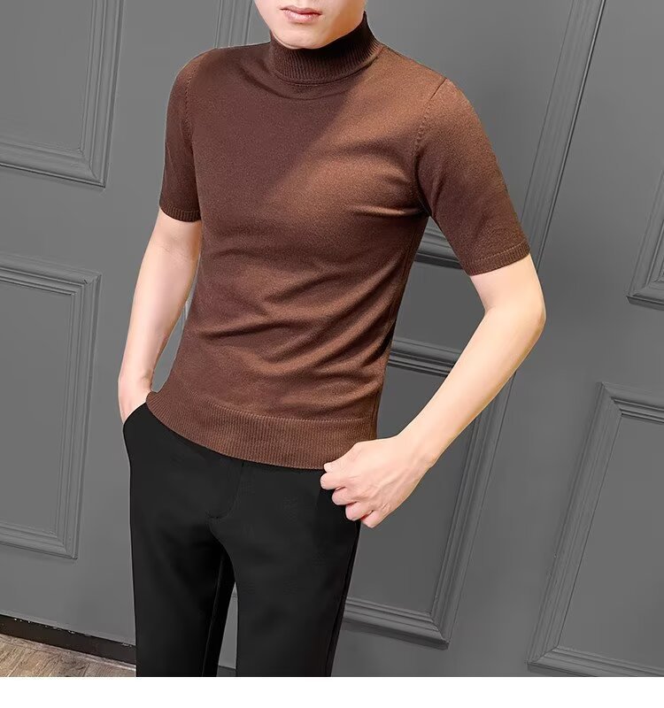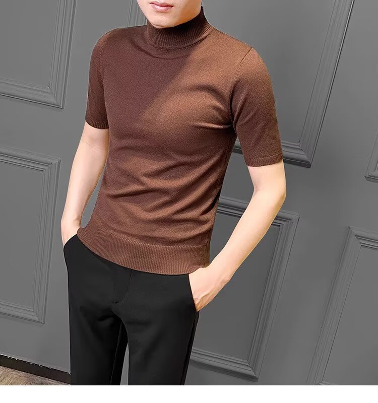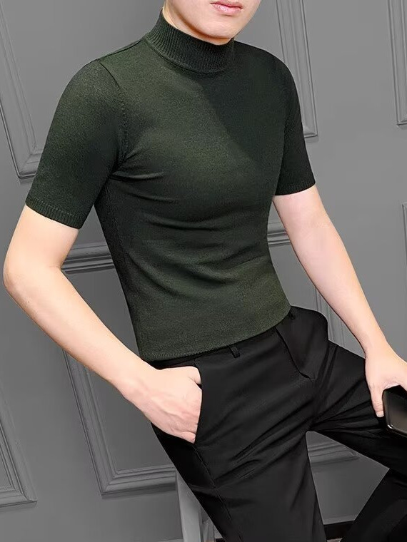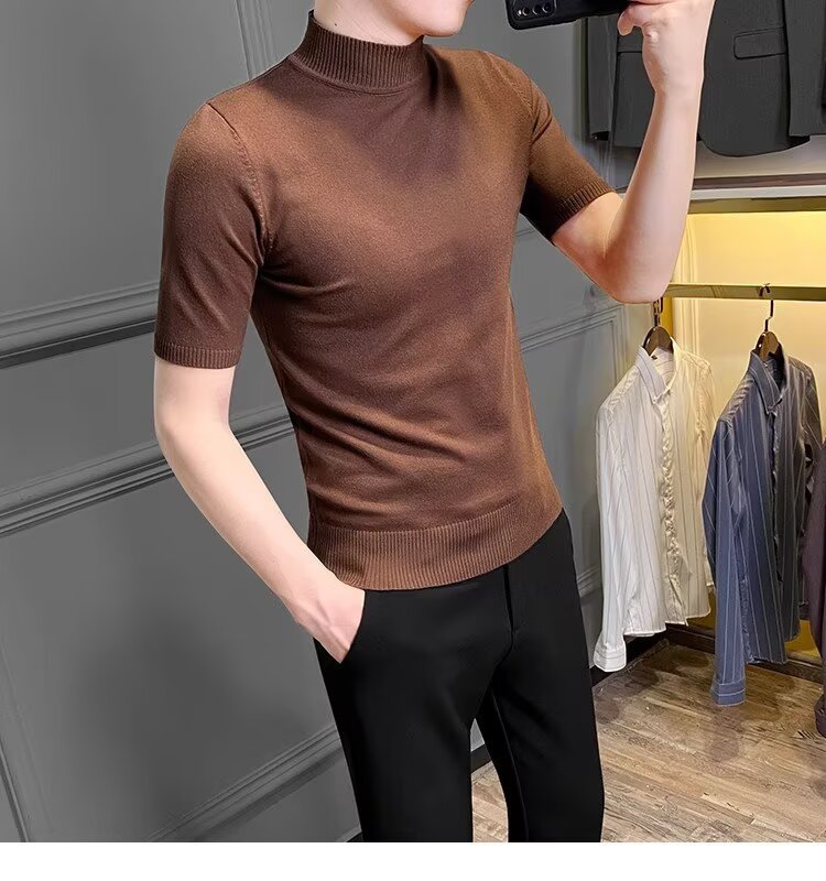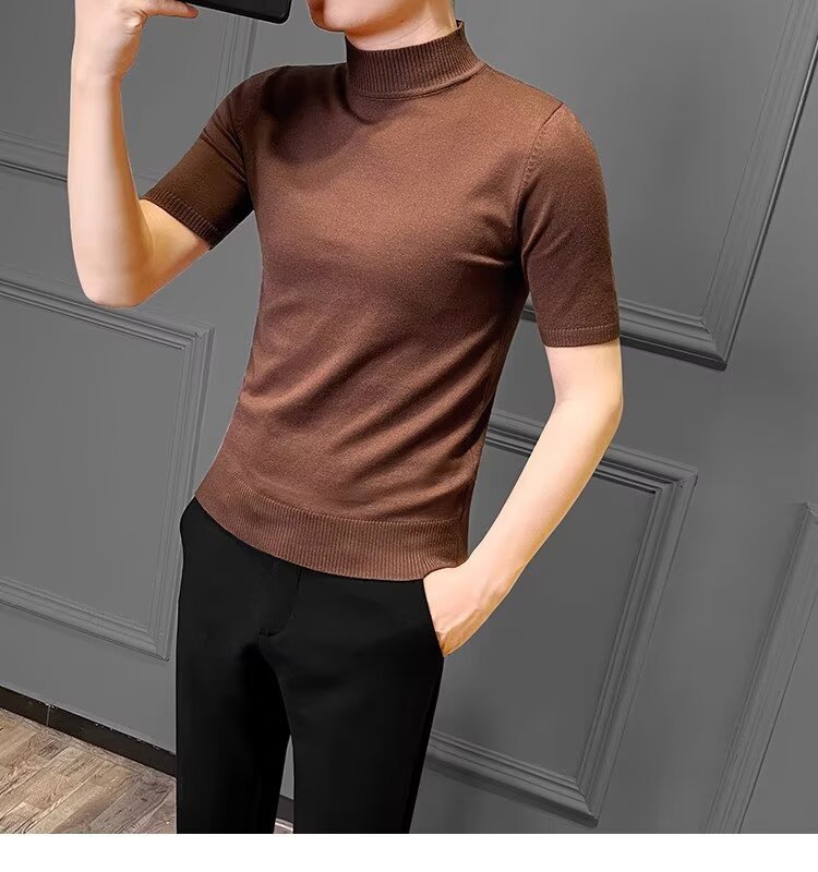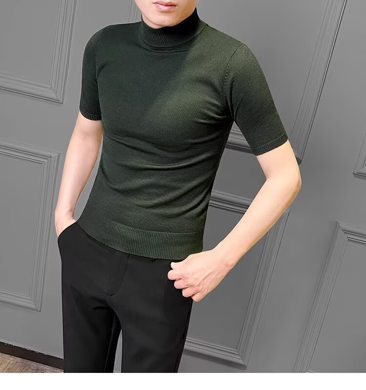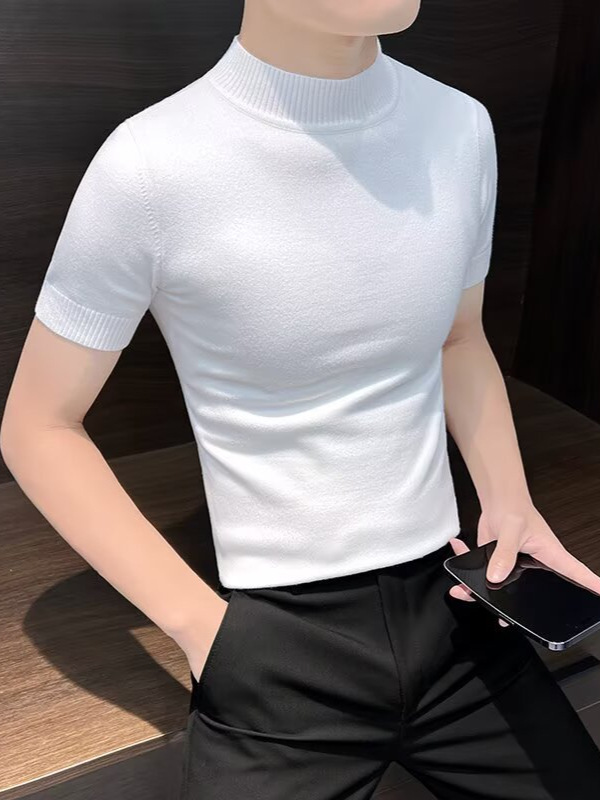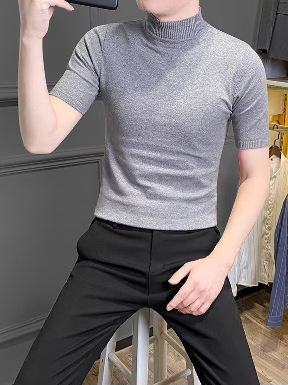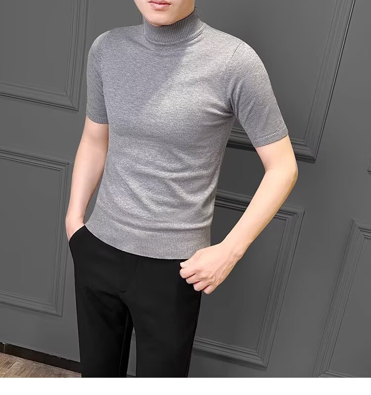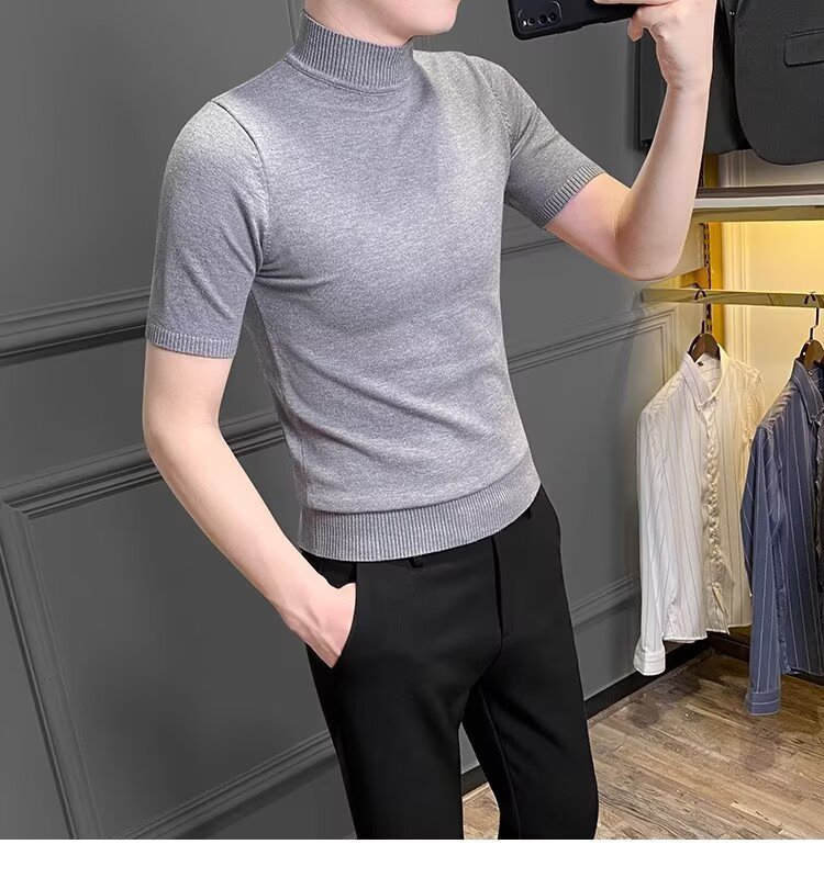 남성용 니트 슬림 반팔 티셔츠 신상 하프 터틀넥 이너 봄 여름 타이트 스트레치 캐주얼 탑 베이스 레이어