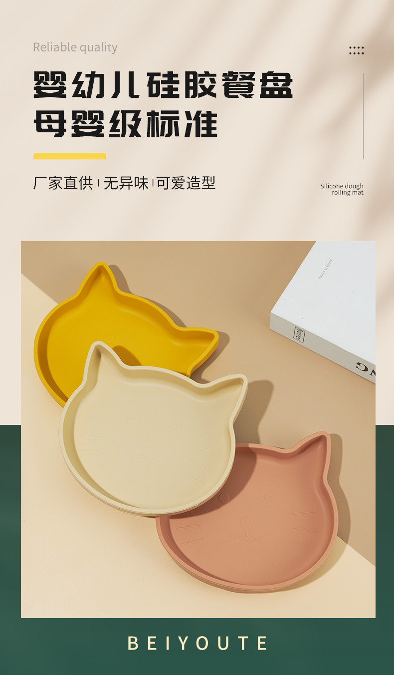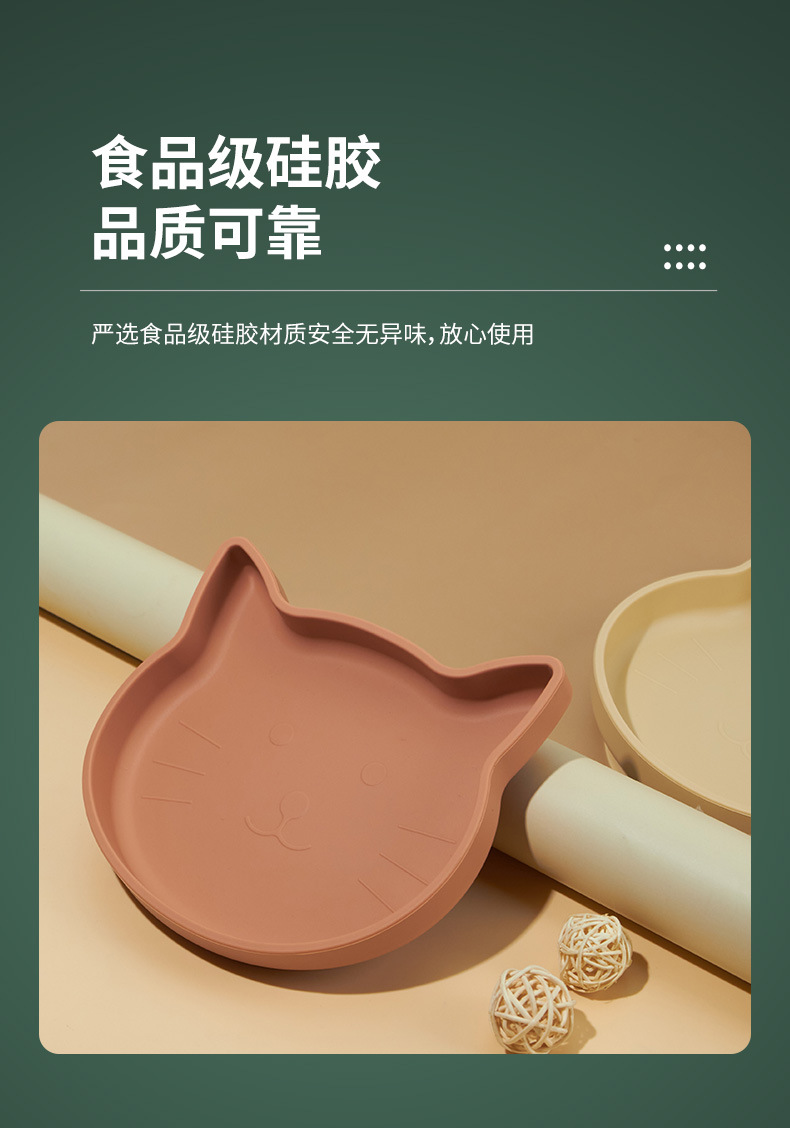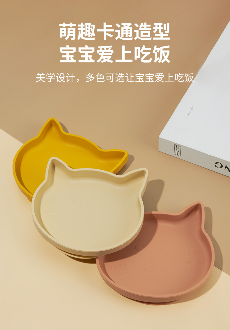 Ins 아기 식사 접시 어린이 실리콘 음식 그릇 만화 새끼 고양이 식사 접시 낙하 방지 흡입 컵 식기 강한 흡입