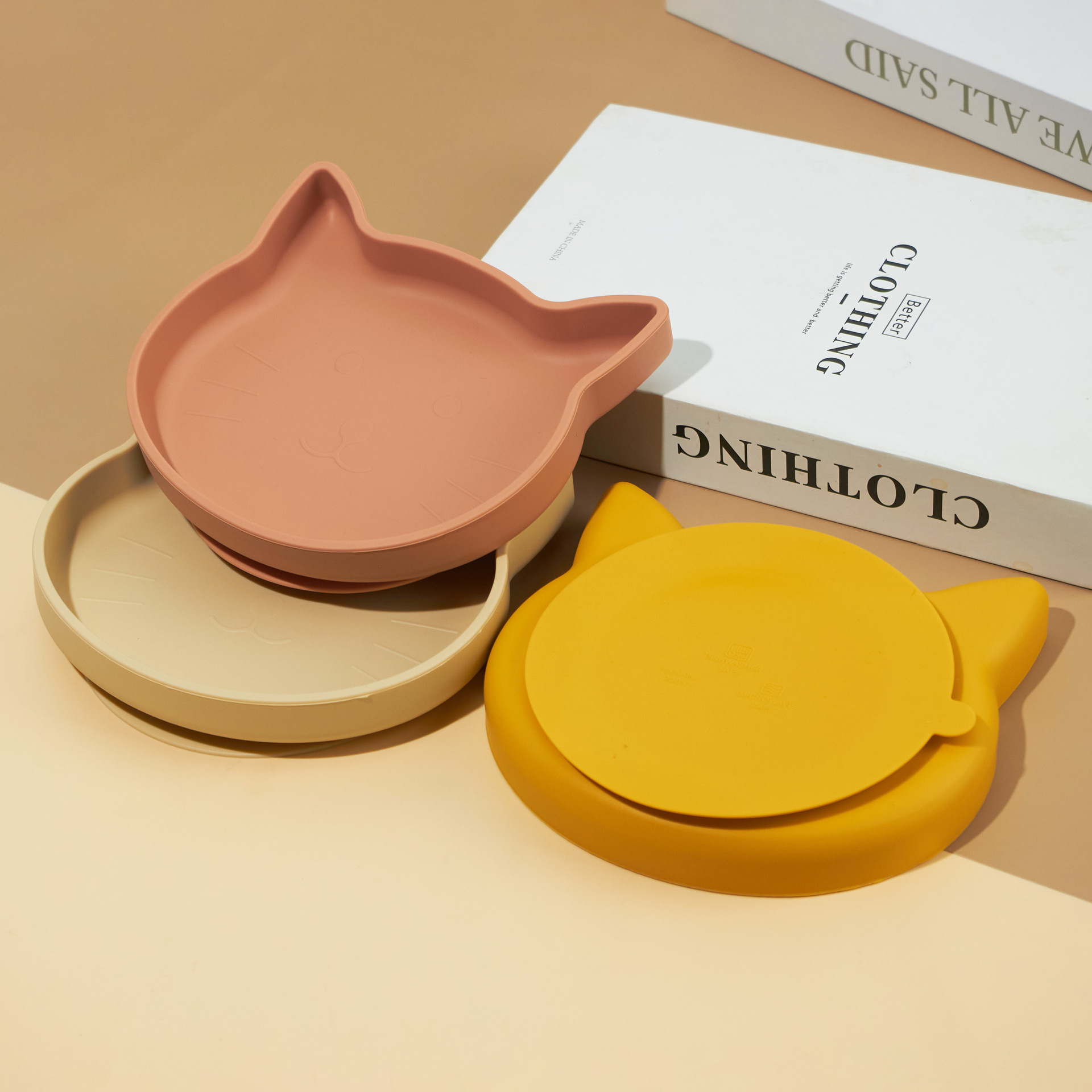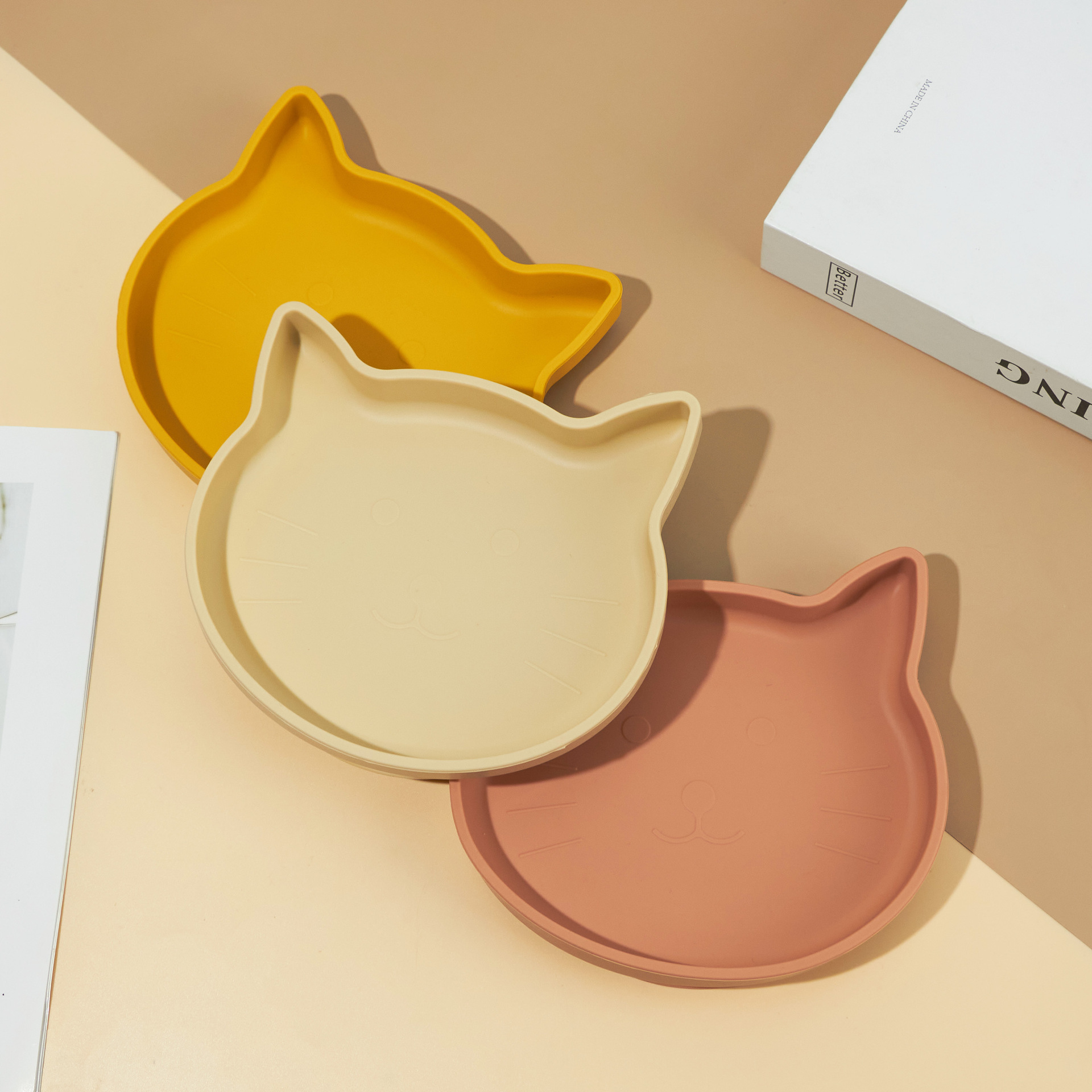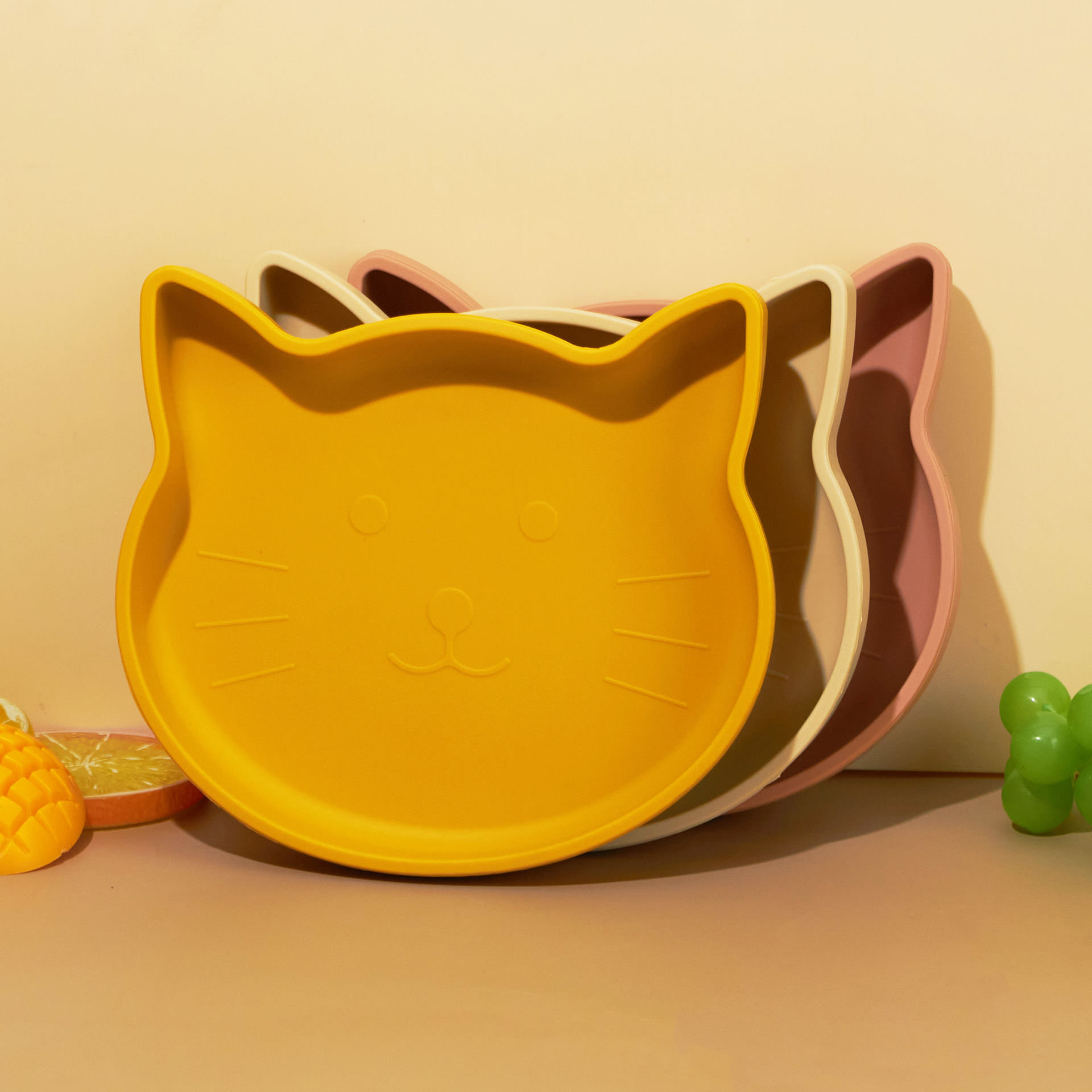 Ins 아기 식사 접시 어린이 실리콘 음식 그릇 만화 새끼 고양이 식사 접시 낙하 방지 흡입 컵 식기 강한 흡입