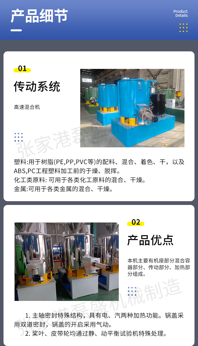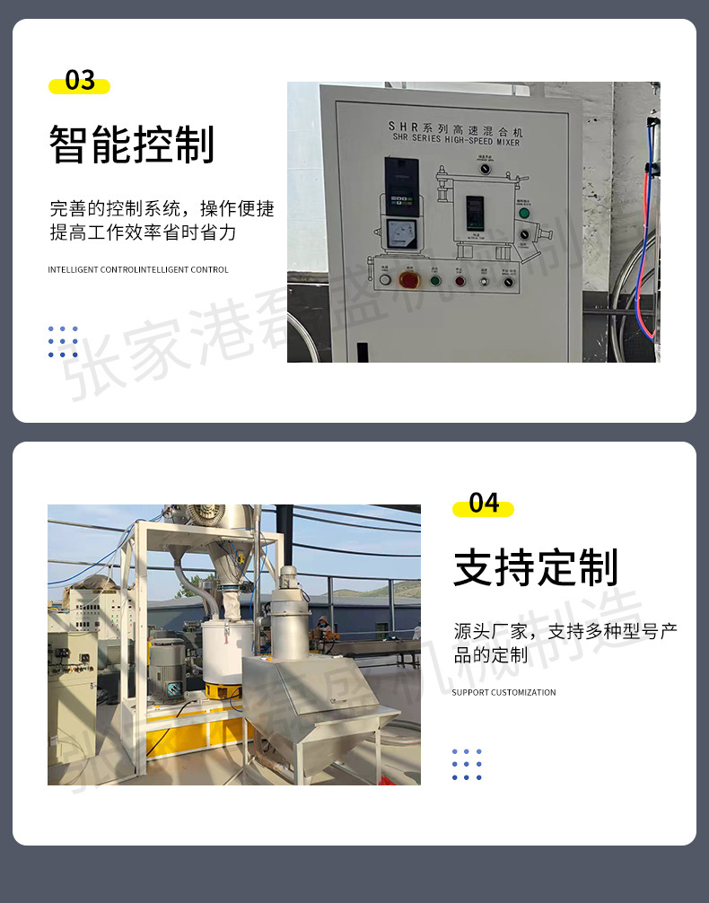 고속 혼합기 300 500 800리터 PVC 분말 탄산칼슘 분해물 컬러 마스터배치 자동 믹서기